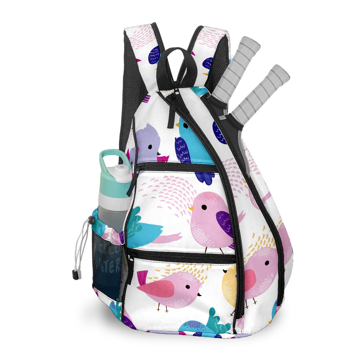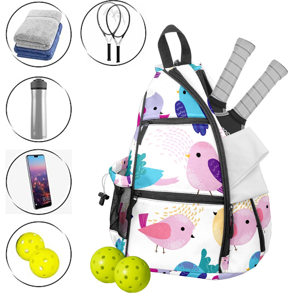 Multifunctional Pickleball Bag,Large Capacity Sports Pickleball Racket Bag, Water Bottle Holder and Fence Hook,Suitable for Both Men Women -Cute Birds