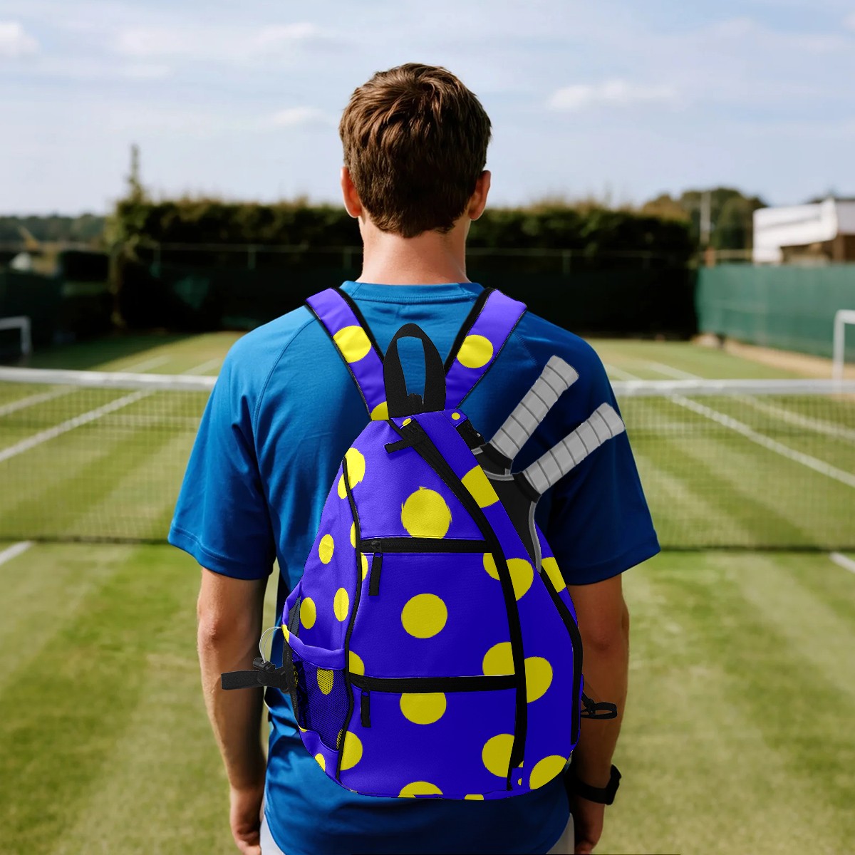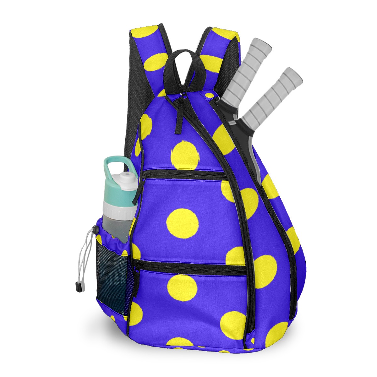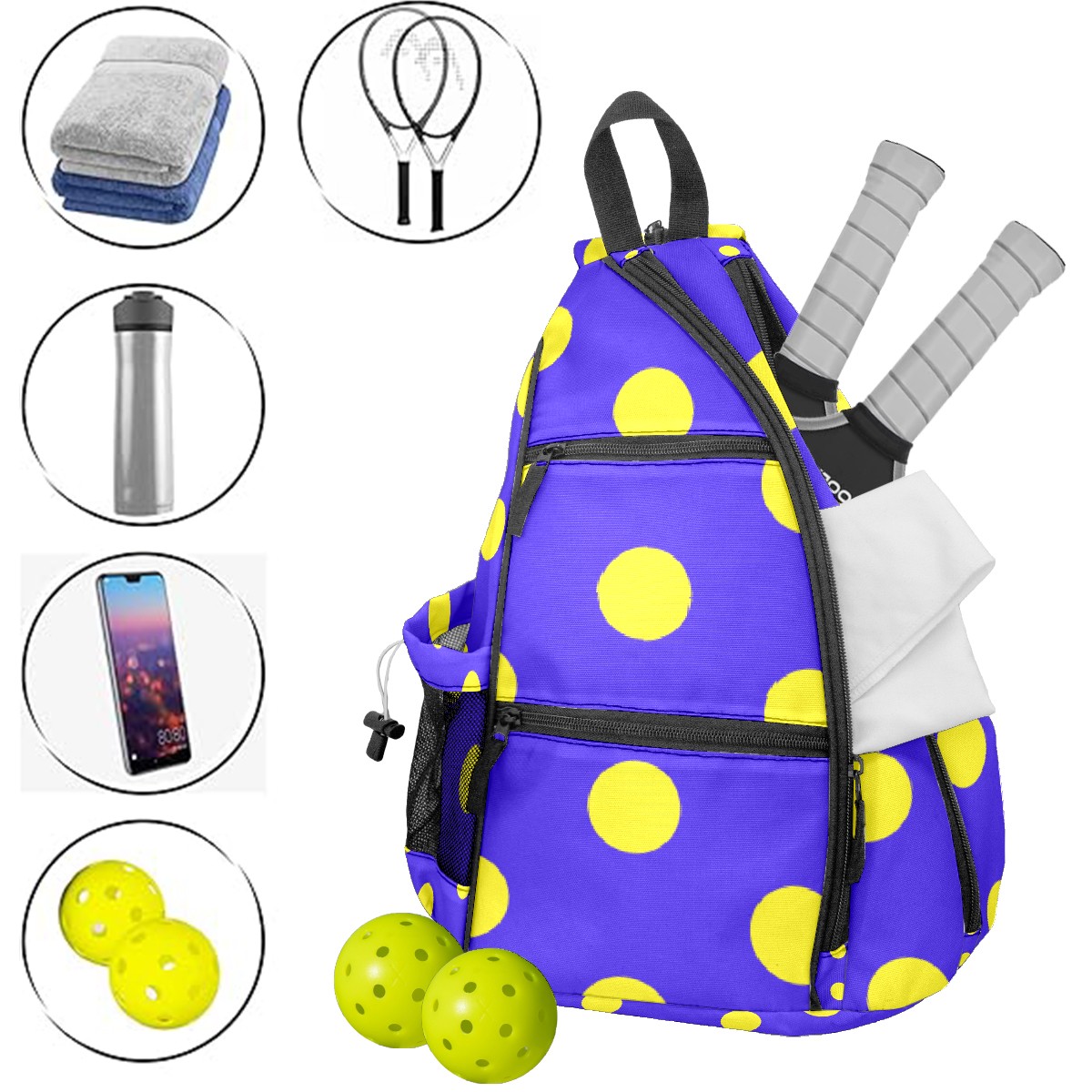 Multifunctional Pickleball Bag,Large Capacity Sports Pickleball Racket Bag, Water Bottle Holder and Fence Hook,Suitable for Both Men Women -Cute Dot Purple Background