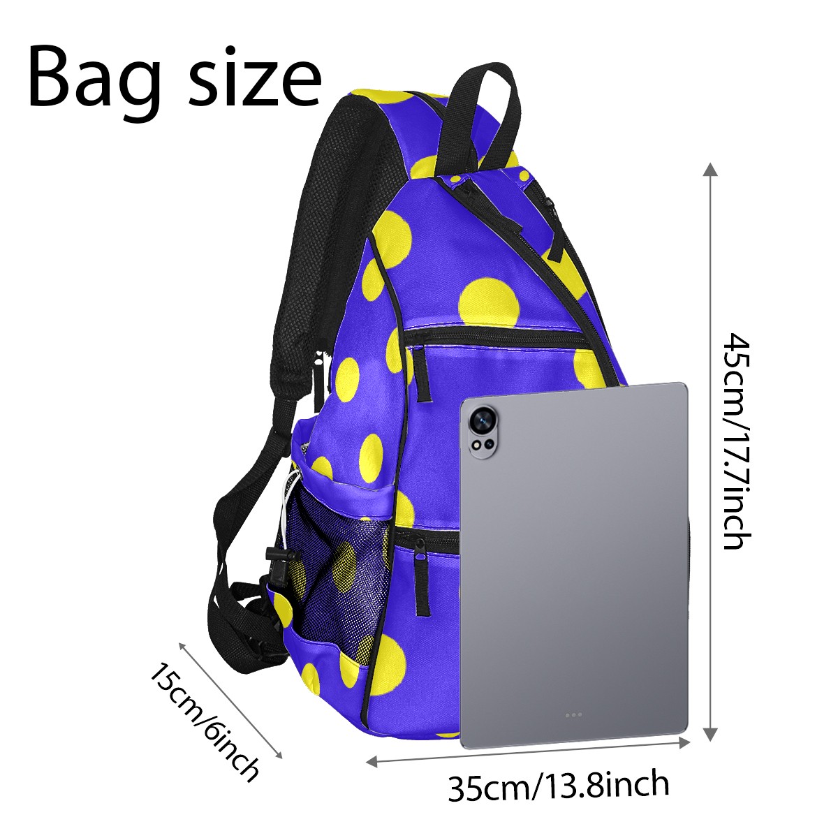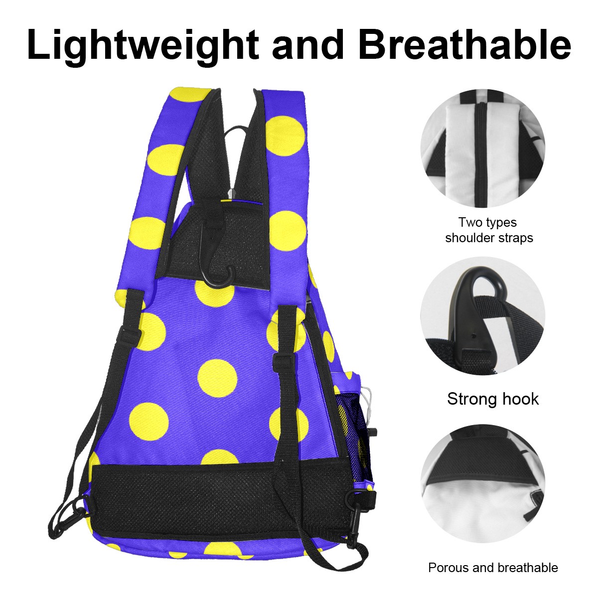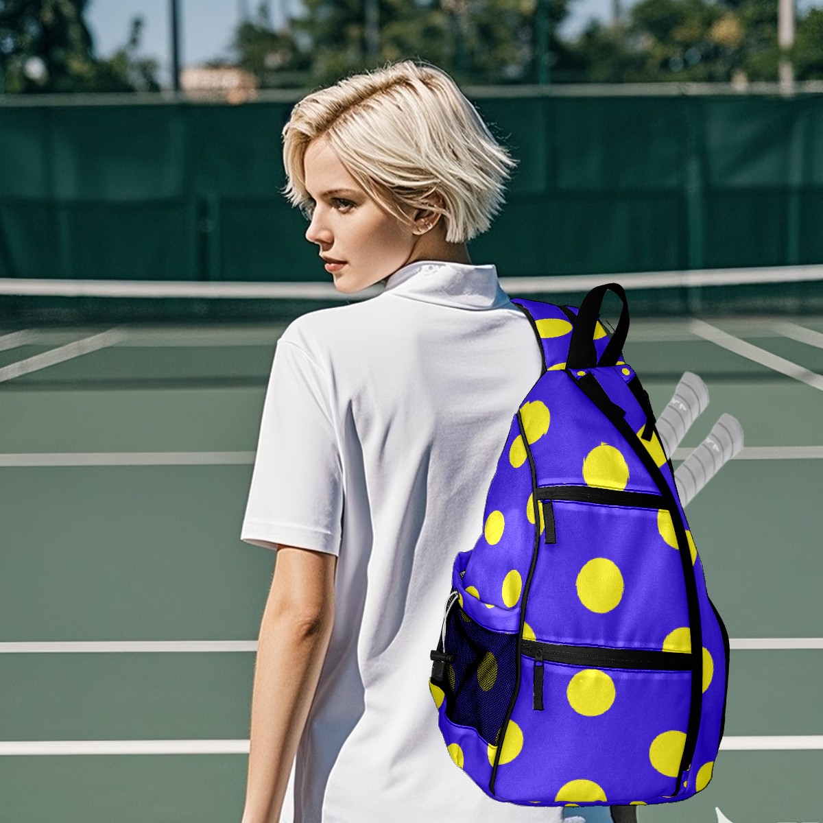 Multifunctional Pickleball Bag,Large Capacity Sports Pickleball Racket Bag, Water Bottle Holder and Fence Hook,Suitable for Both Men Women -Cute Dot Purple Background