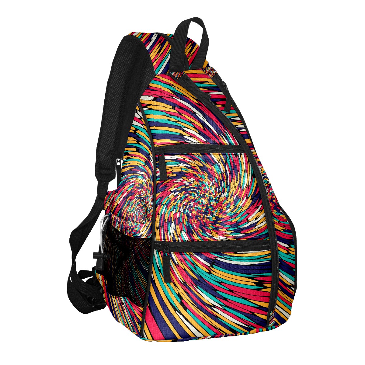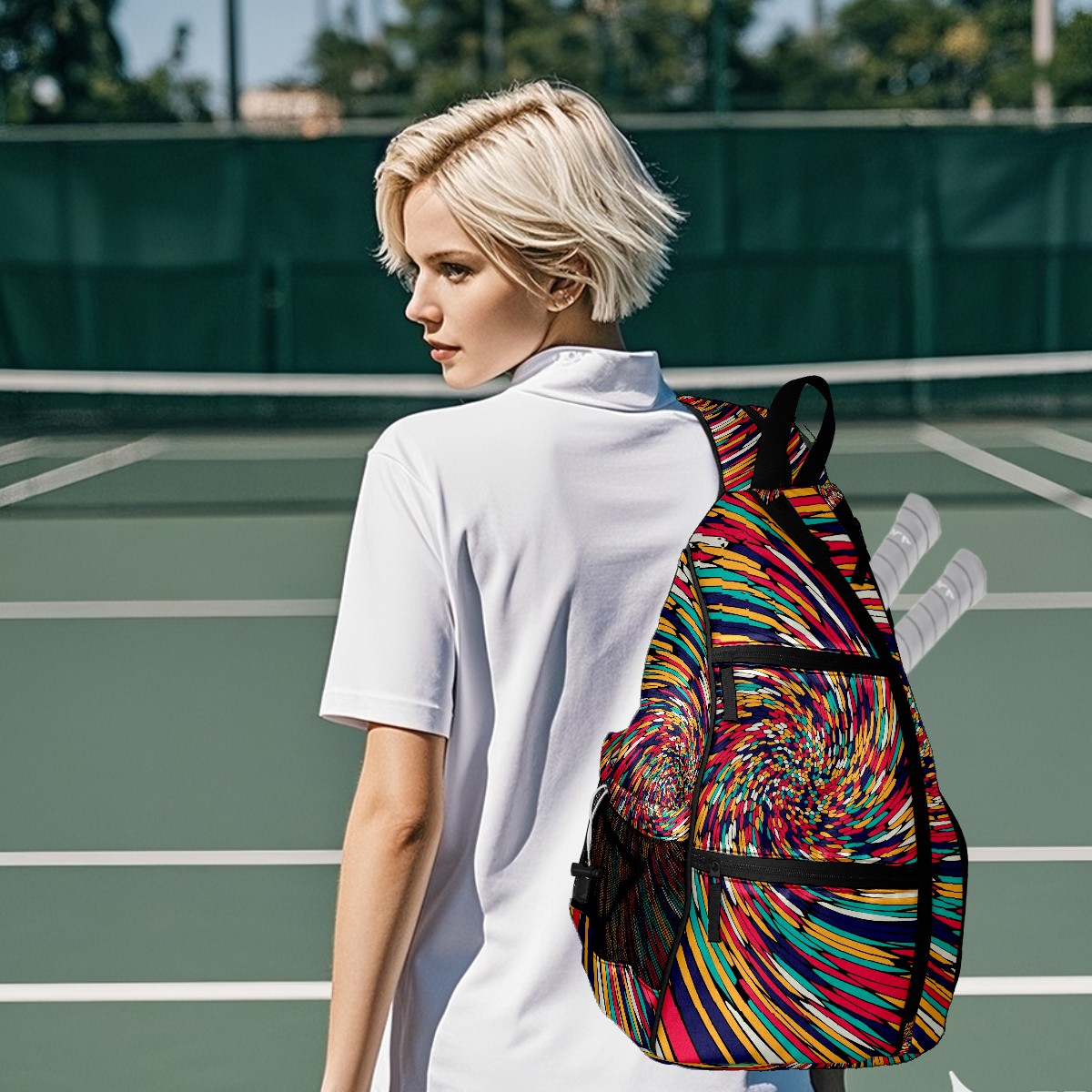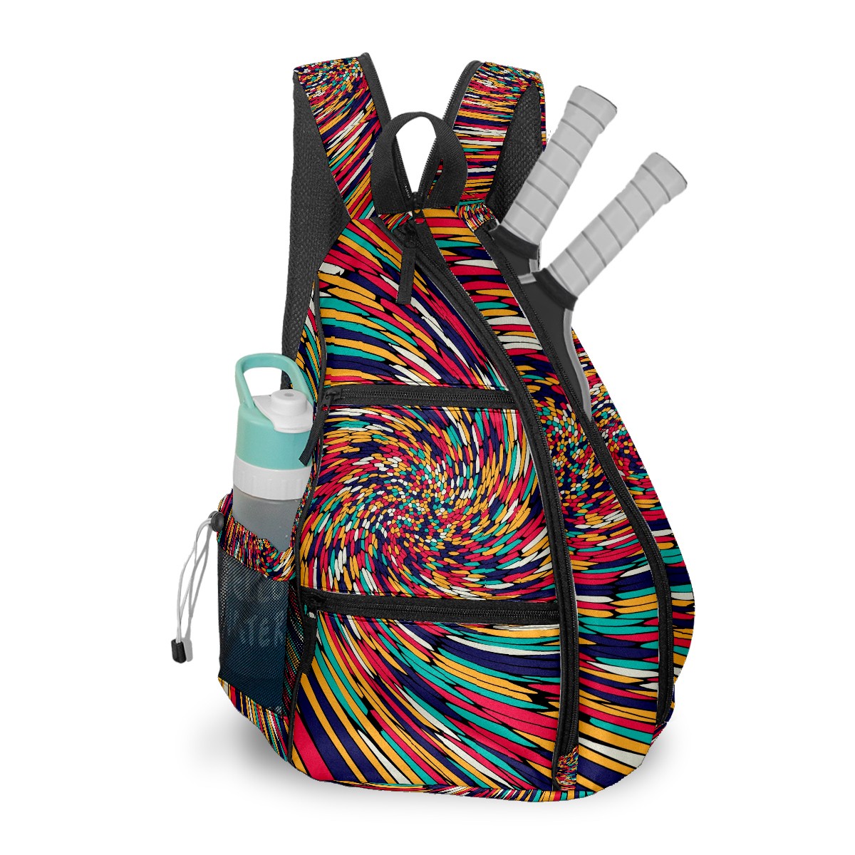 Multifunctional Pickleball Bag,Large Capacity Sports Pickleball Racket Bag, Water Bottle Holder and Fence Hook,Suitable for Both Men Women -Colorful Swirl Pattern