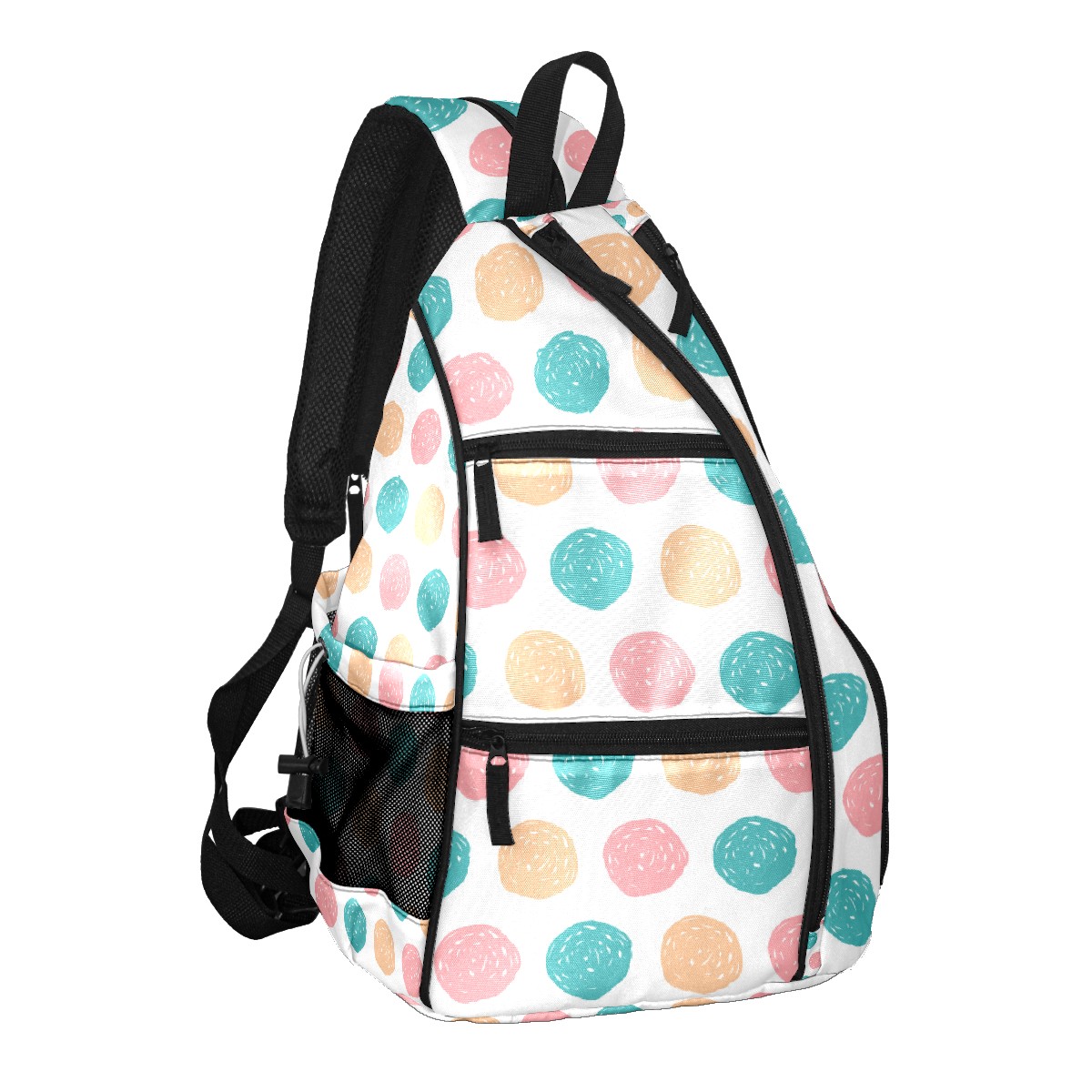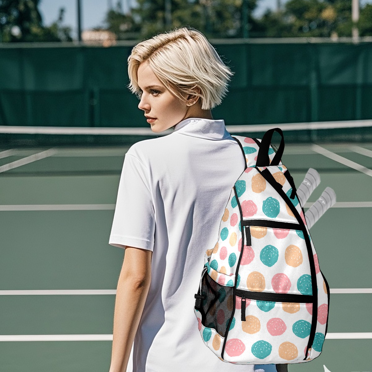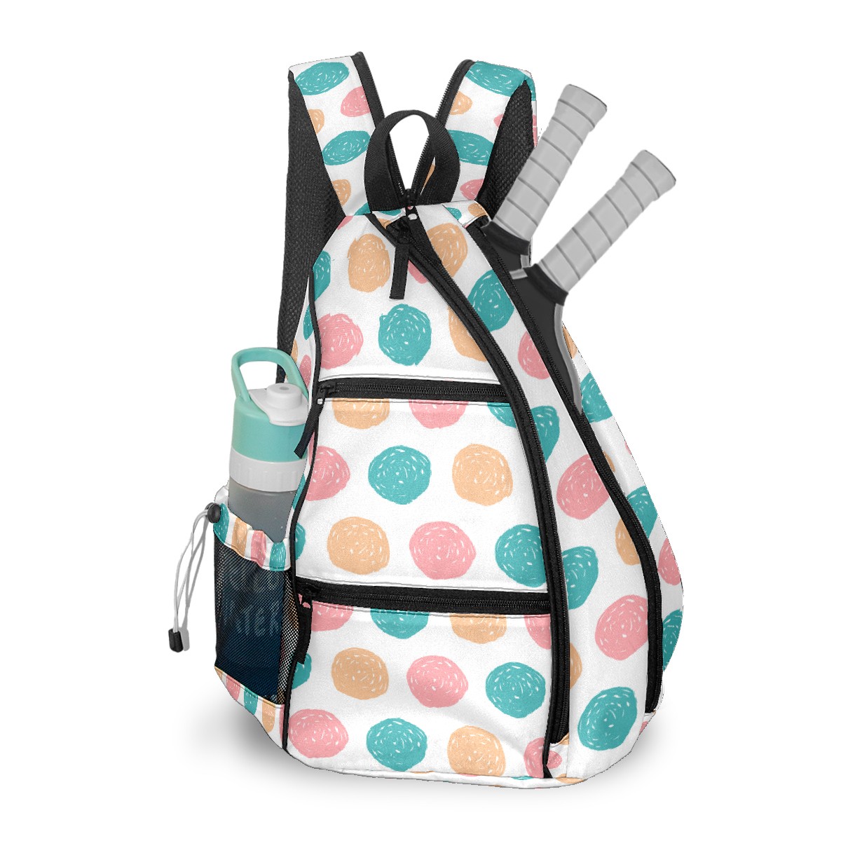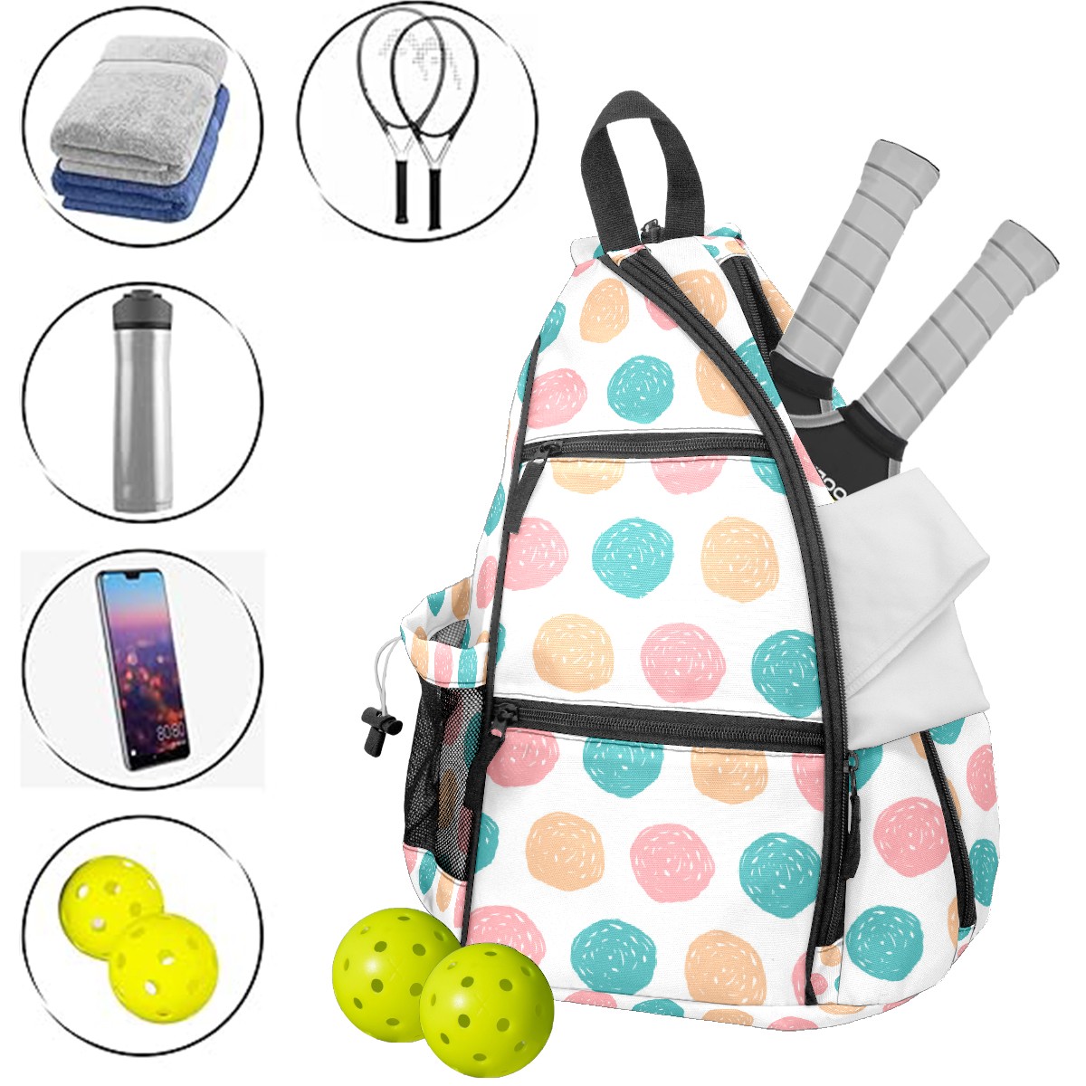 Multifunctional Pickleball Bag,Large Capacity Sports Pickleball Racket Bag, Water Bottle Holder and Fence Hook,Suitable for Both Men Women -Colorful Circles Pattern