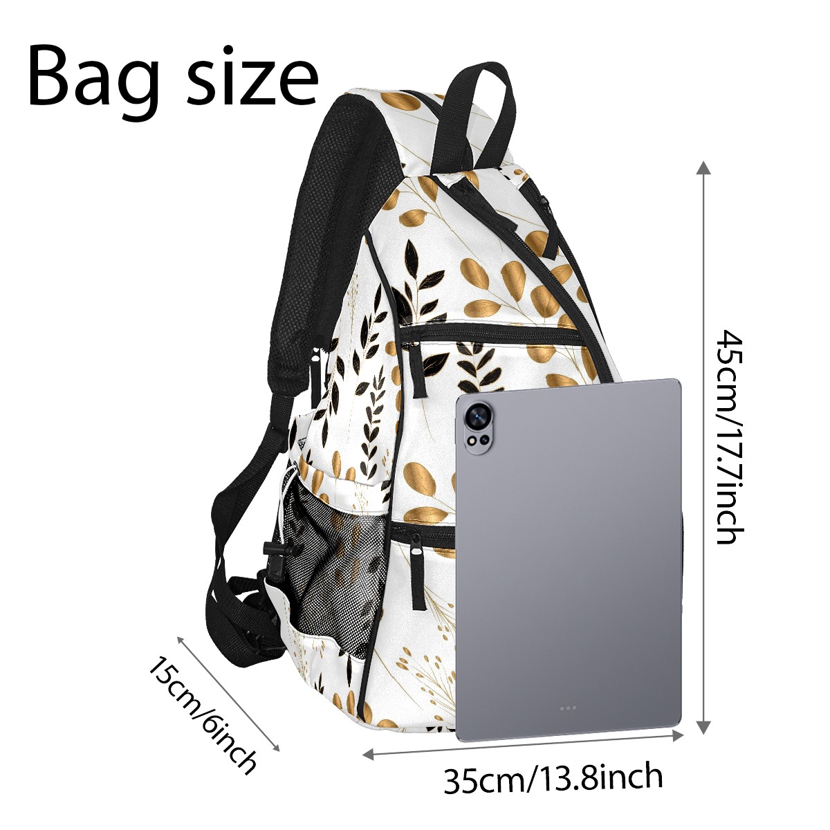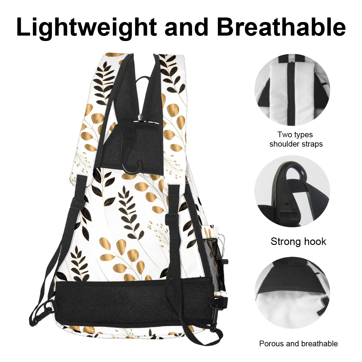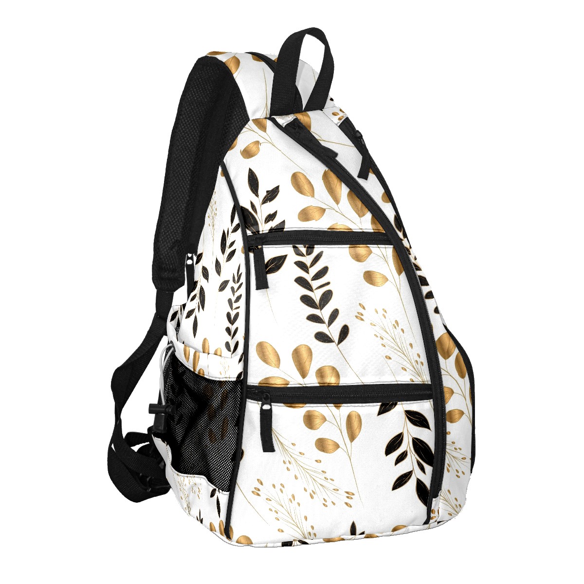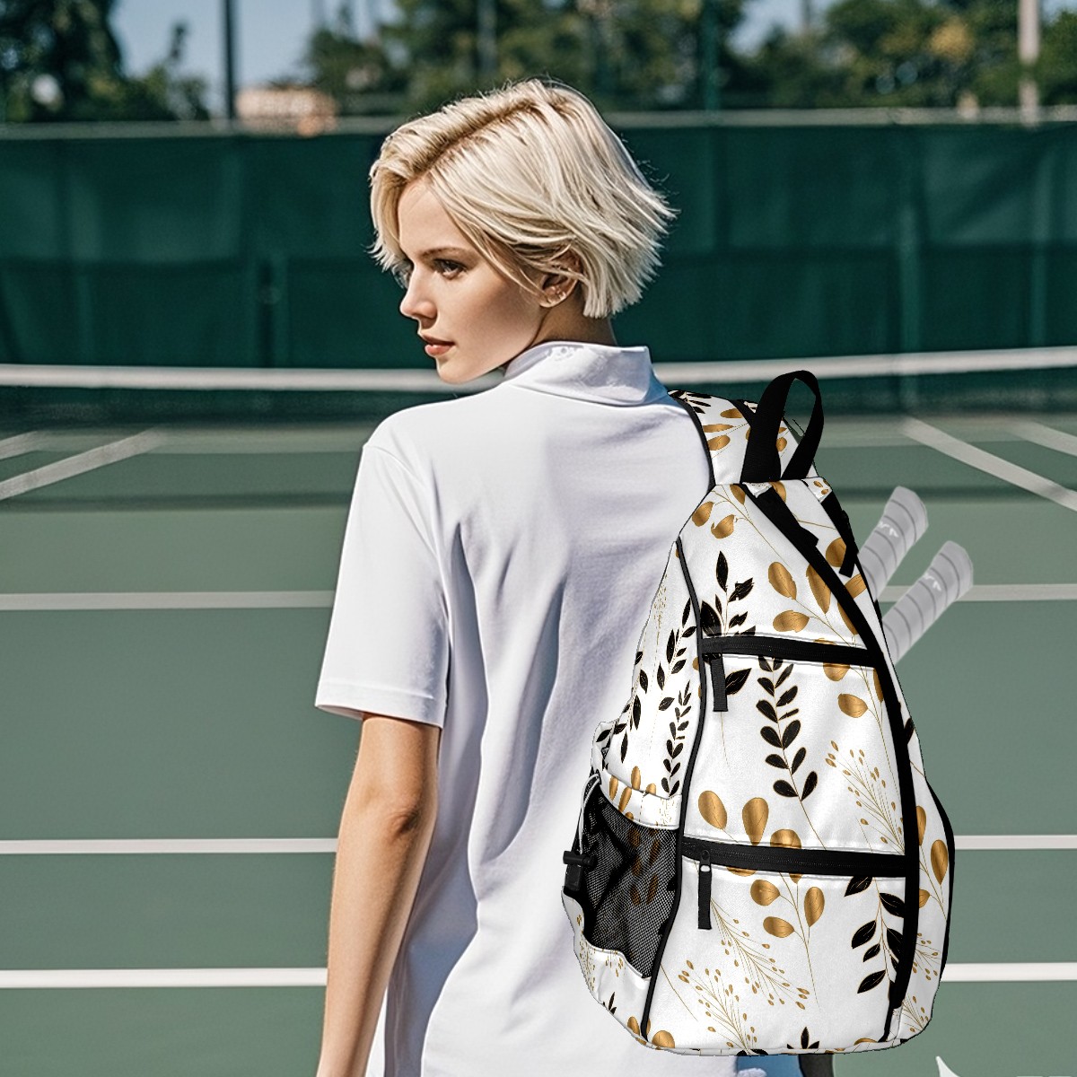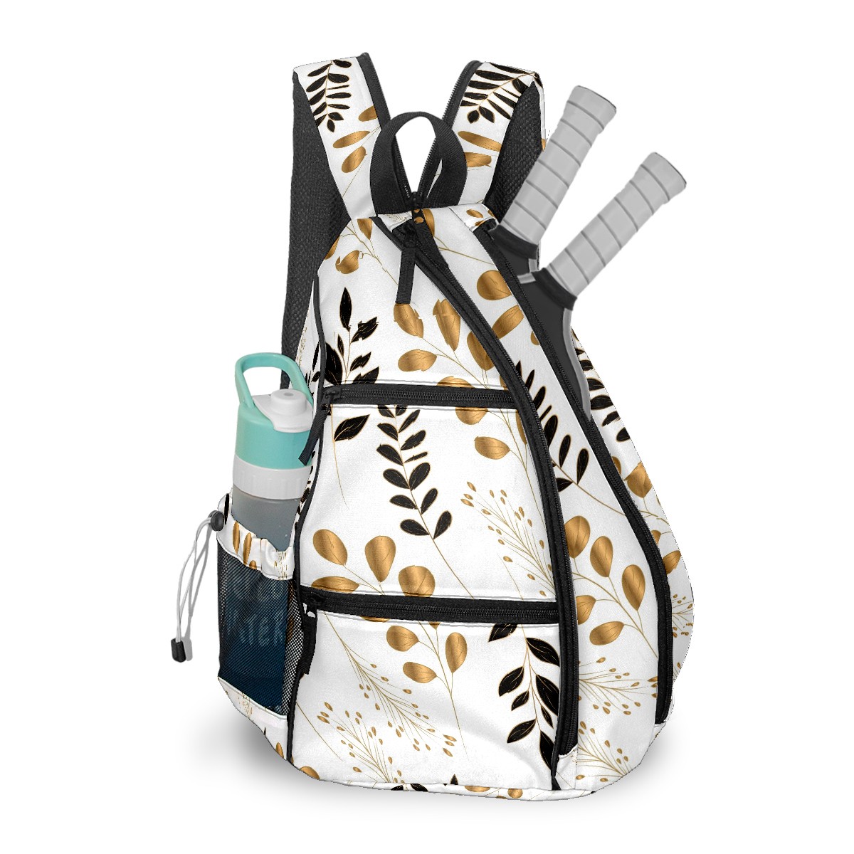 Multifunctional Pickleball Bag,Large Capacity Sports Pickleball Racket Bag, Water Bottle Holder and Fence Hook,Suitable for Both Men Women -Black Golden Leaves