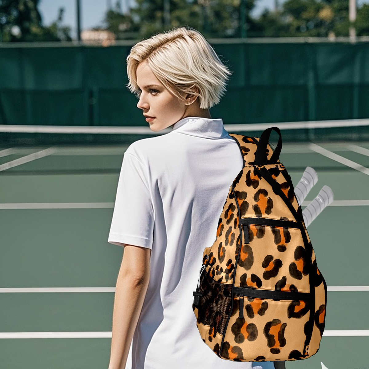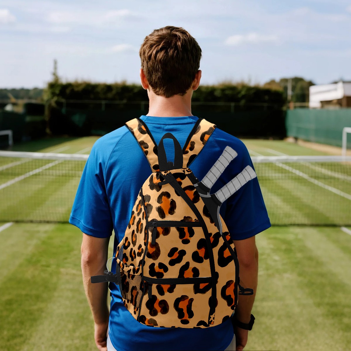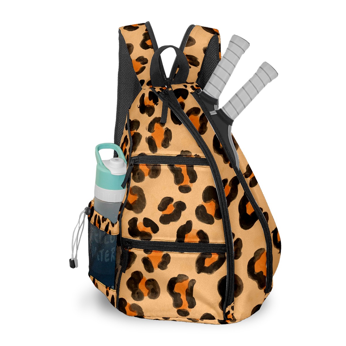 Multifunctional Pickleball Bag,Large Capacity Sports Pickleball Racket Bag, Water Bottle Holder and Fence Hook,Suitable for Both Men Women -Animal Leopard Texture