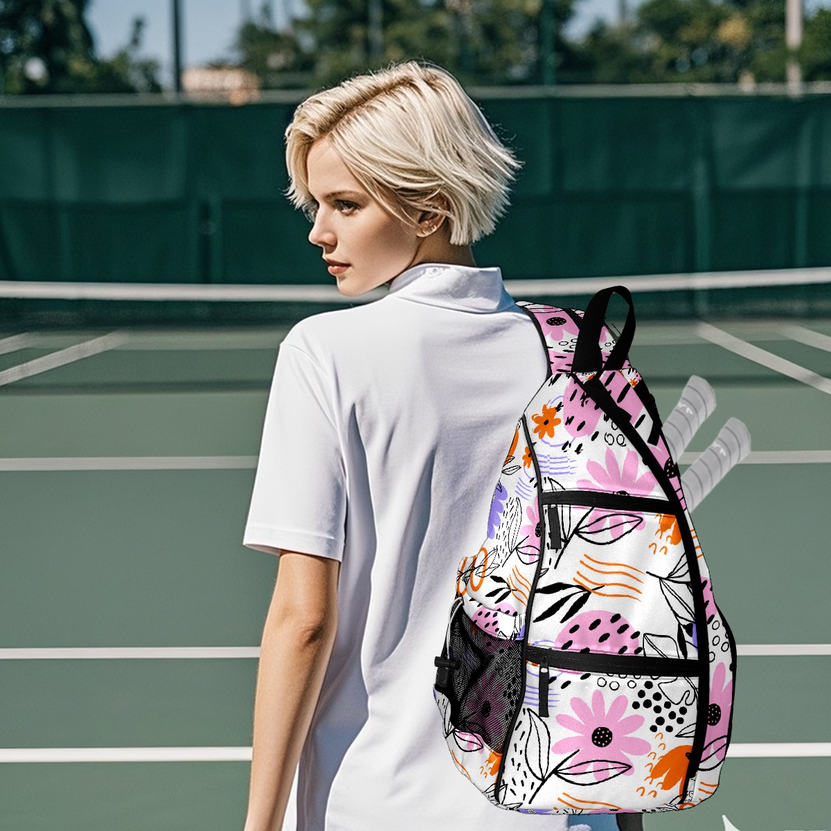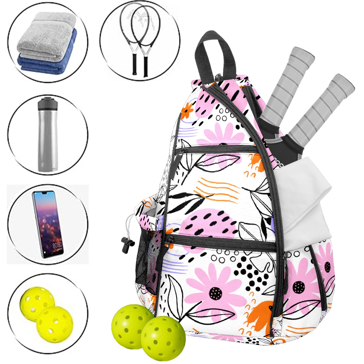 Multifunctional Pickleball Bag,Large Capacity Sports Pickleball Racket Bag, Water Bottle Holder and Fence Hook,Suitable for Both Men Women -Abstract Leaves