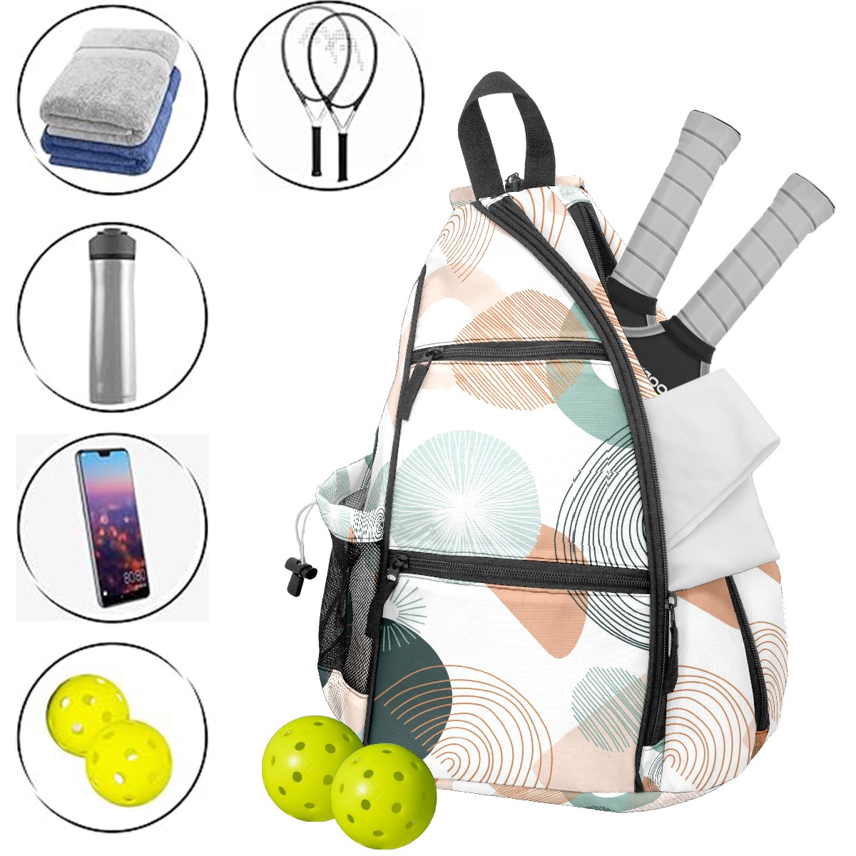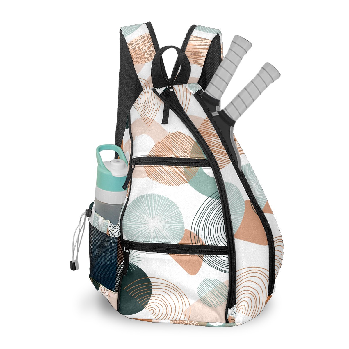 Multifunctional Pickleball Bag,Large Capacity Sports Pickleball Racket Bag, Water Bottle Holder and Fence Hook,Suitable for Both Men Women -Abstract Circle