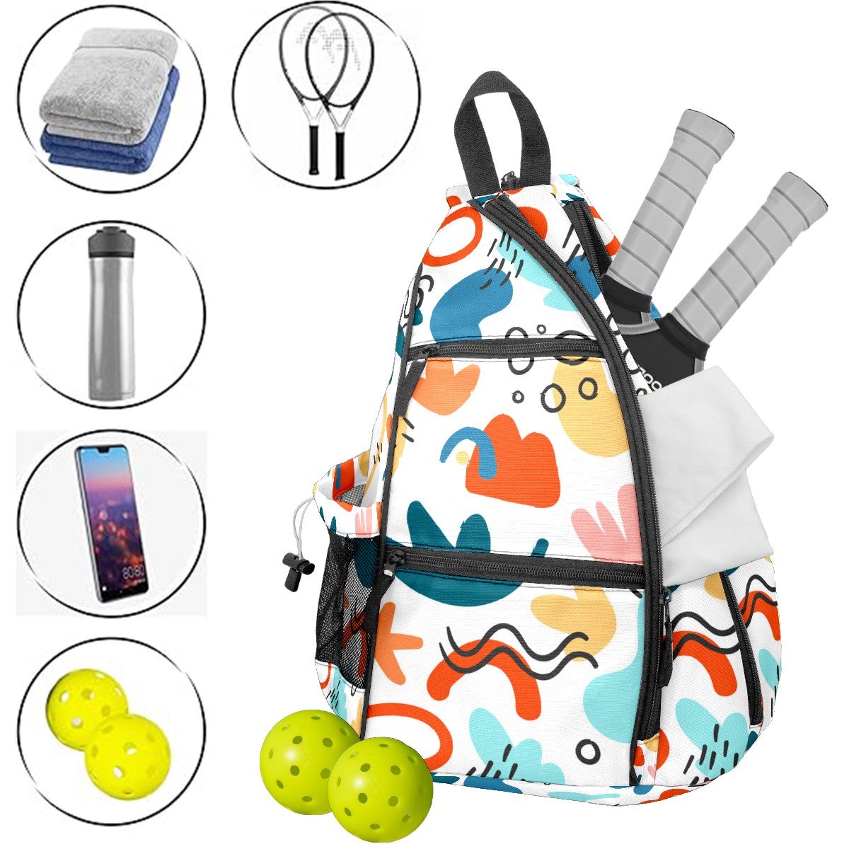 Multifunctional Pickleball Bag,Large Capacity Sports Pickleball Racket Bag, Water Bottle Holder and Fence Hook,Suitable for Both Men Women -33722168_134847312105_2