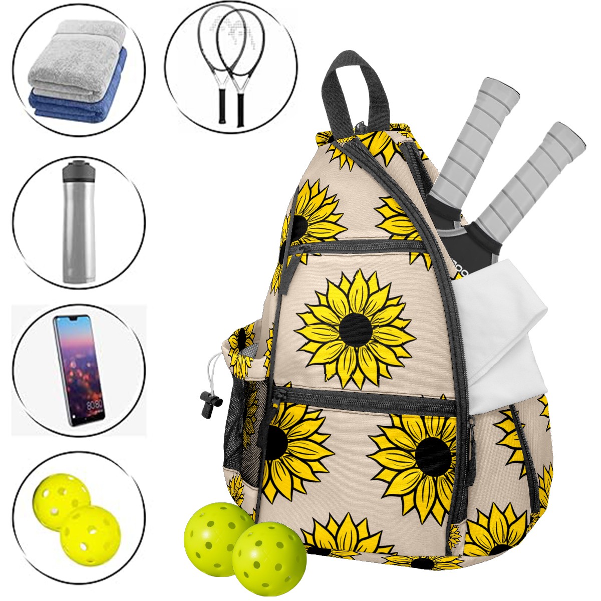 Multifunctional Pickleball Bag,Large Capacity Sports Pickleball Racket Bag, Water Bottle Holder and Fence Hook,Suitable for Both Men Women -Wild Chrysanthemum