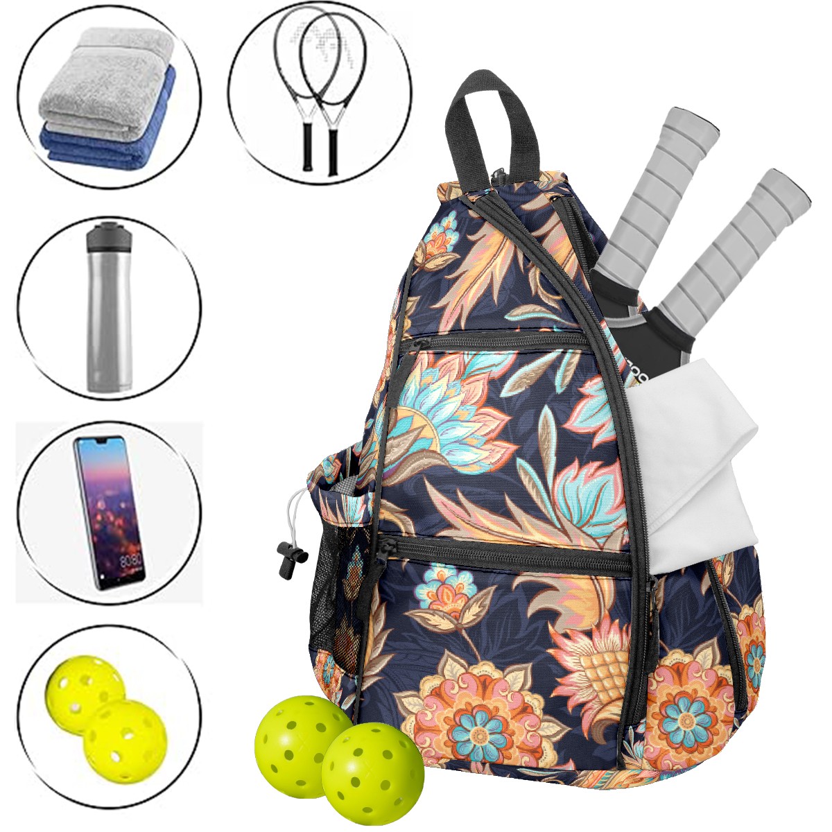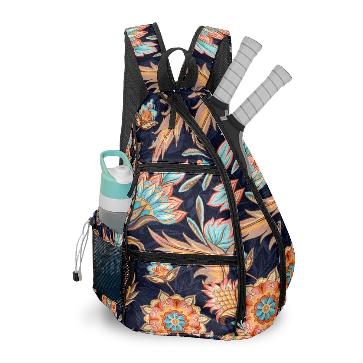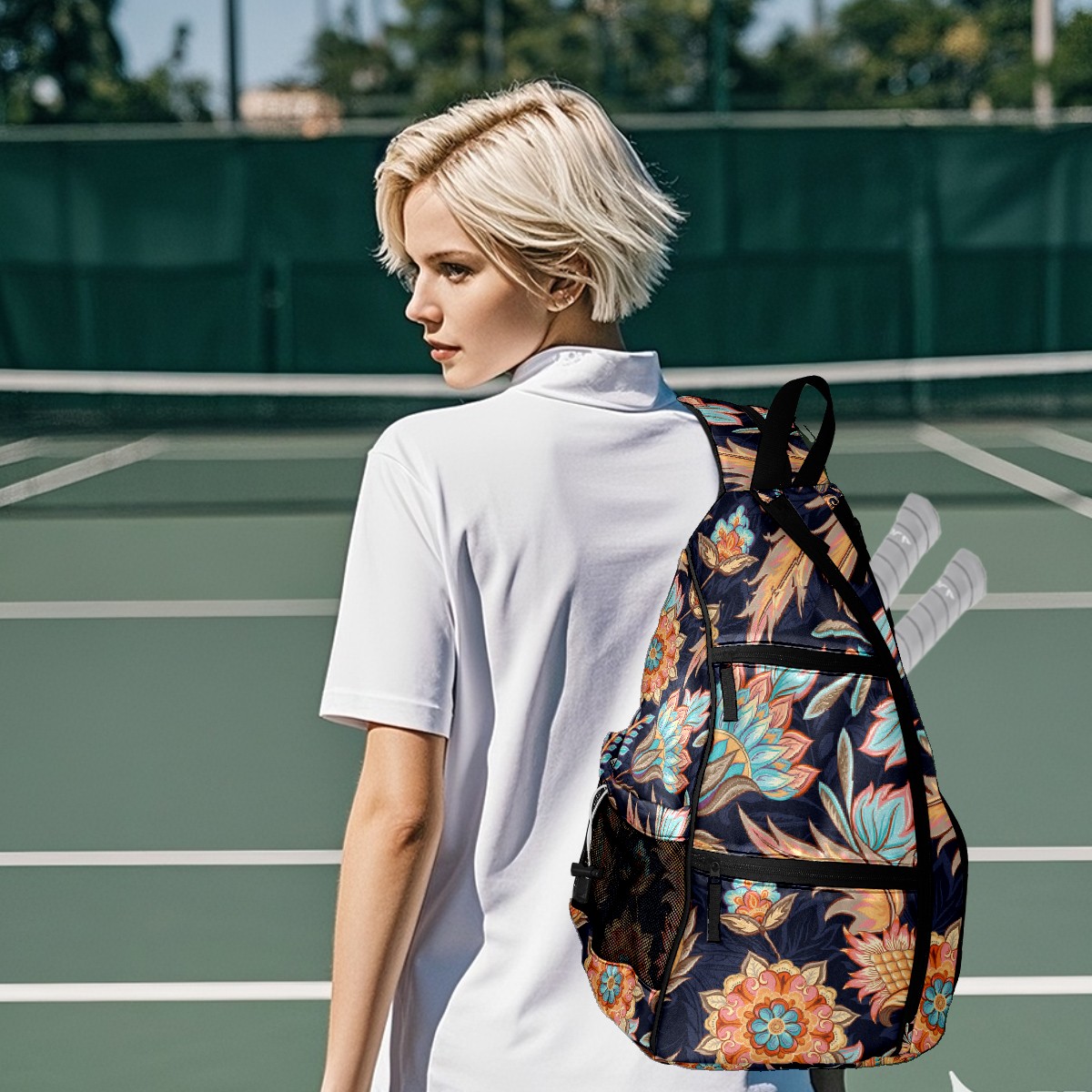 Multifunctional Pickleball Bag,Large Capacity Sports Pickleball Racket Bag, Water Bottle Holder and Fence Hook,Suitable for Both Men Women -Seamless Flower Pattern