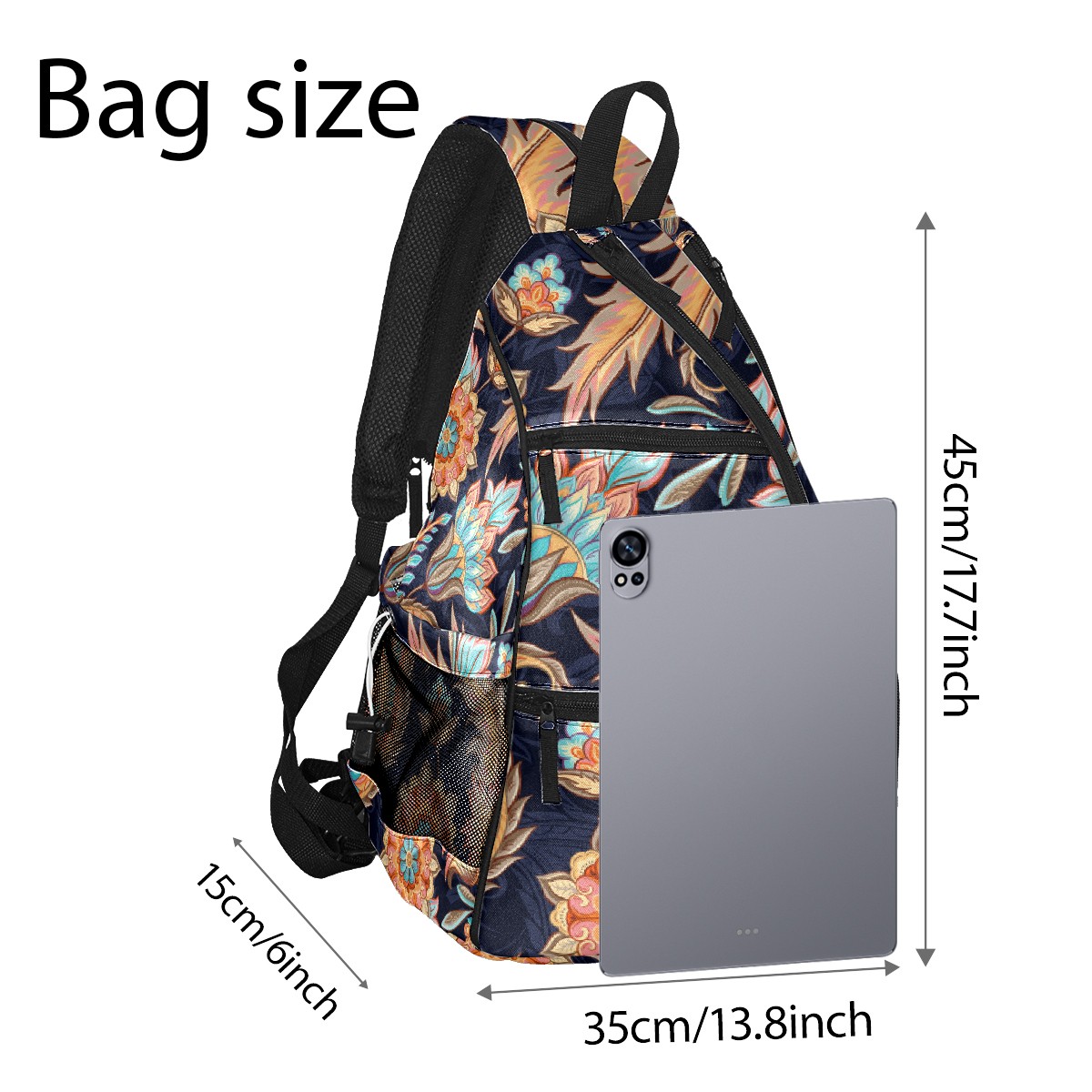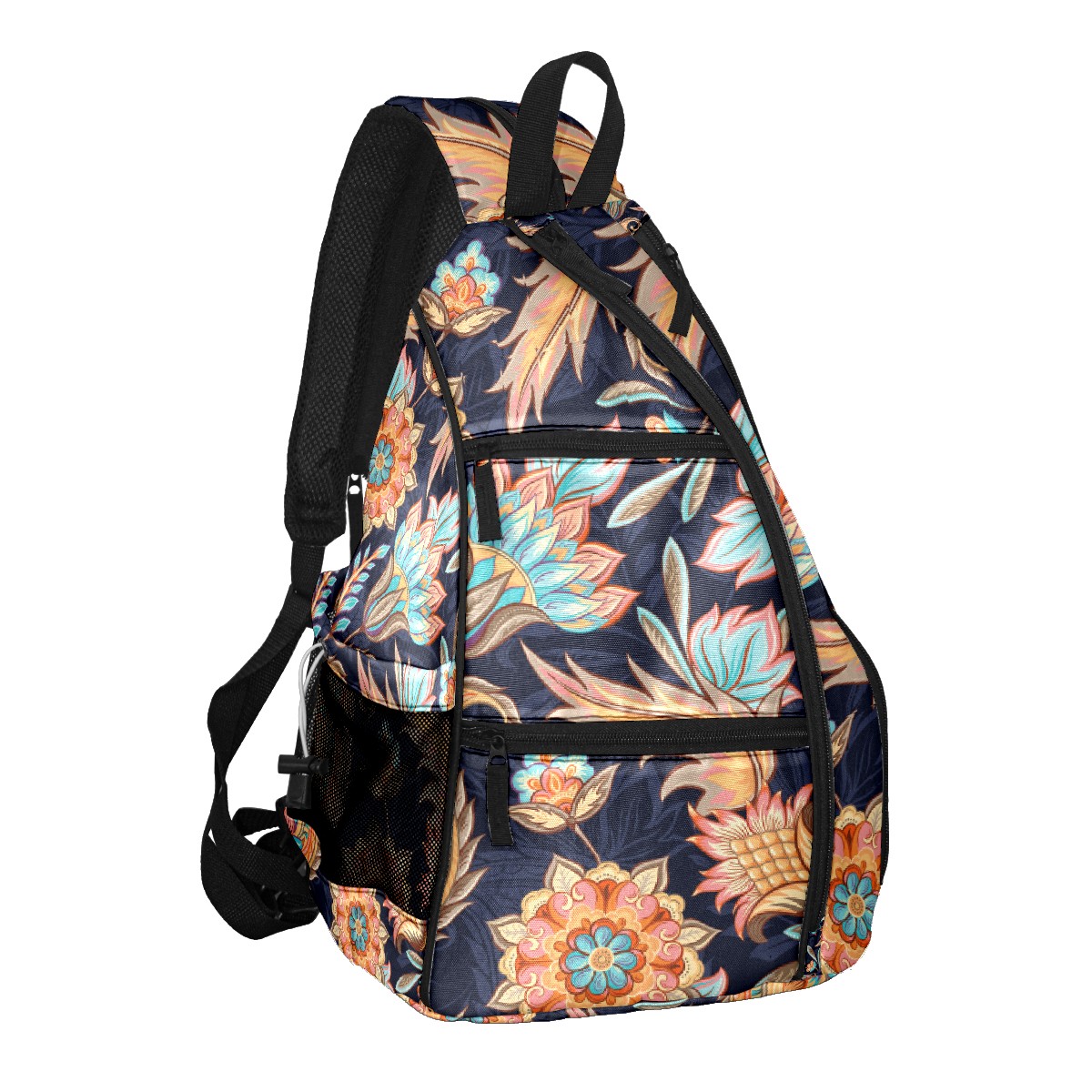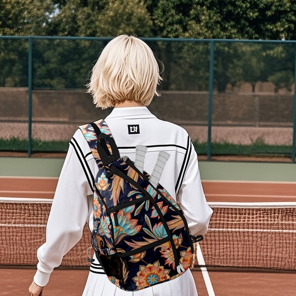 Multifunctional Pickleball Bag,Large Capacity Sports Pickleball Racket Bag, Water Bottle Holder and Fence Hook,Suitable for Both Men Women -Seamless Flower Pattern