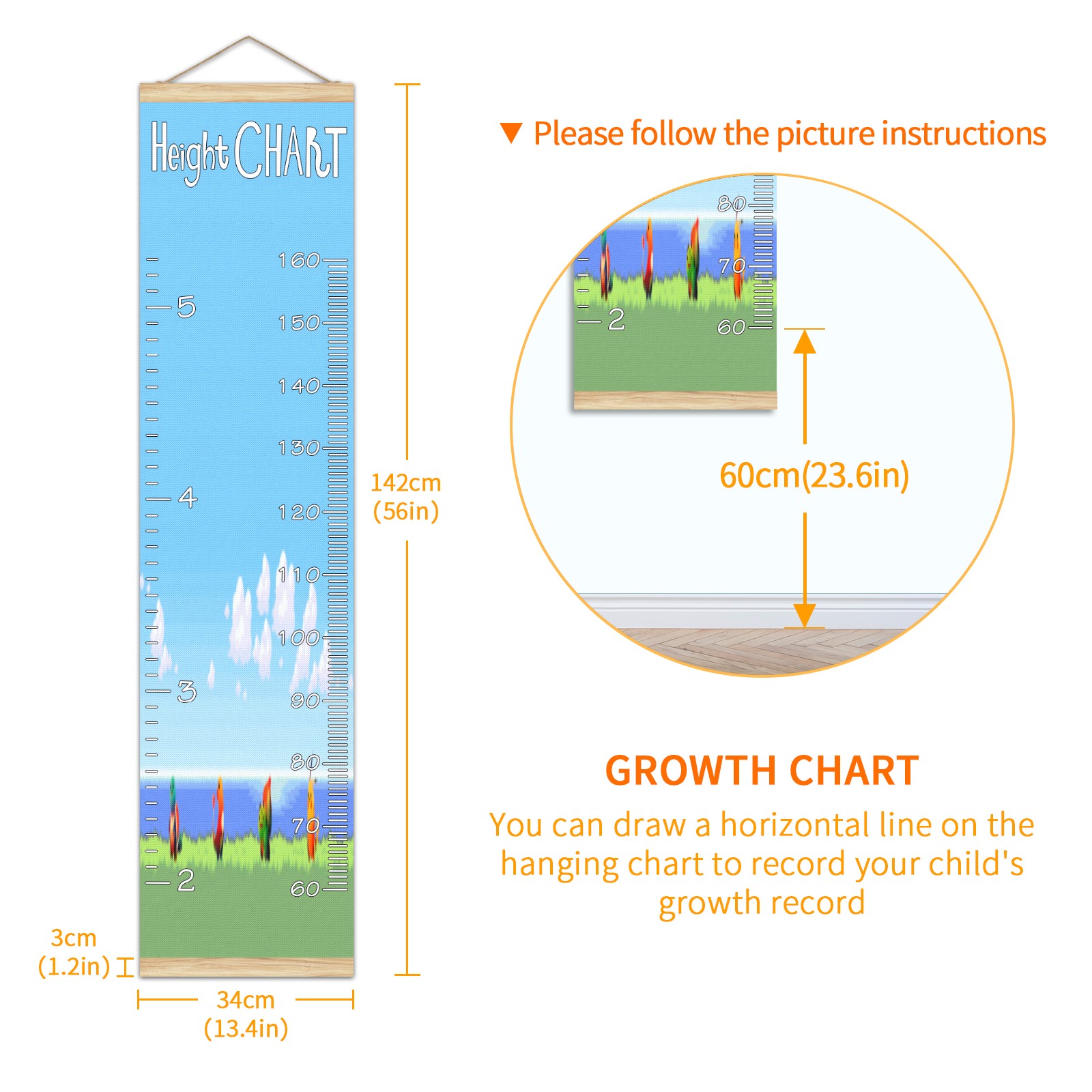 • Детская таблица роста, деревянная рамка для настенного измерителя, таблица роста для детей, измерительная таблица высоты, 13,4x56 дюймов, ткань из льна, подвеска для домашнего декора! Память о прошлом: просто повесьте диаграмму на стену и отметьте на ней дату ручкой, чтобы вместе расти с детьми и записывать их рост в разные годы. Идеальный подарок для детей Экологически чистый и нетоксичный для использования детьми, это идеальный подарок для младенцев, детей, девочек и мальчиков. Это лучший выбор для вашего друга с детьми или младенцем в качестве популярного подарка. Легко читать Измерение точно с 2 шкалами, сантиметры и футы. Буквы достаточно большие, очень легко читать.
