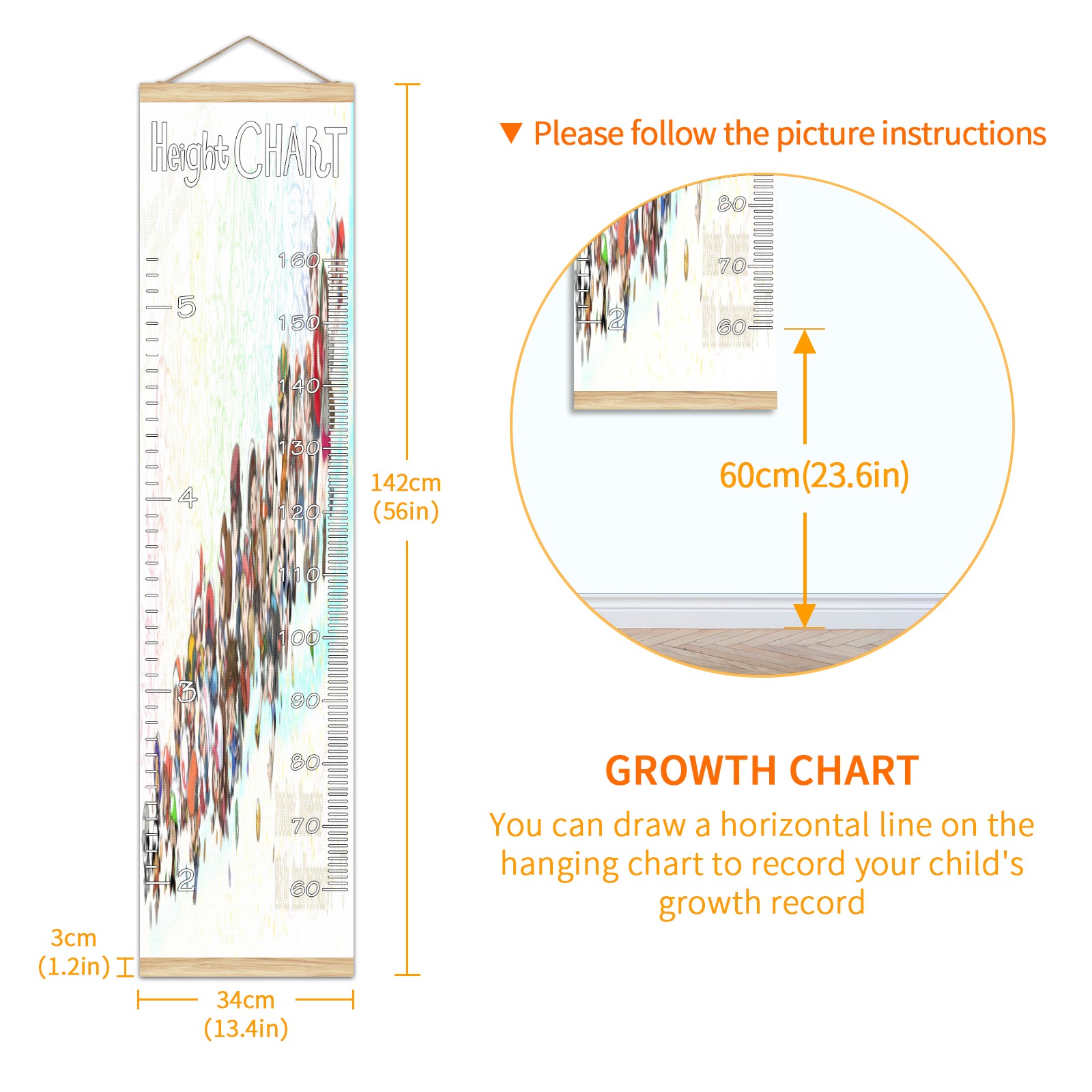 • Детская таблица роста, деревянная рамка для настенного измерителя, таблица роста для детей, измерительная таблица высоты, 13,4x56 дюймов, ткань из льна, подвеска для домашнего декора! Память о прошлом: просто повесьте диаграмму на стену и отметьте на ней дату ручкой, чтобы вместе расти с детьми и записывать их рост в разные годы. Идеальный подарок для детей Экологически чистый и нетоксичный для использования детьми, это идеальный подарок для младенцев, детей, девочек и мальчиков. Это лучший выбор для вашего друга с детьми или младенцем в качестве популярного подарка. Легко читать Измерение точно с 2 шкалами, сантиметры и футы. Буквы достаточно большие, очень легко читать.