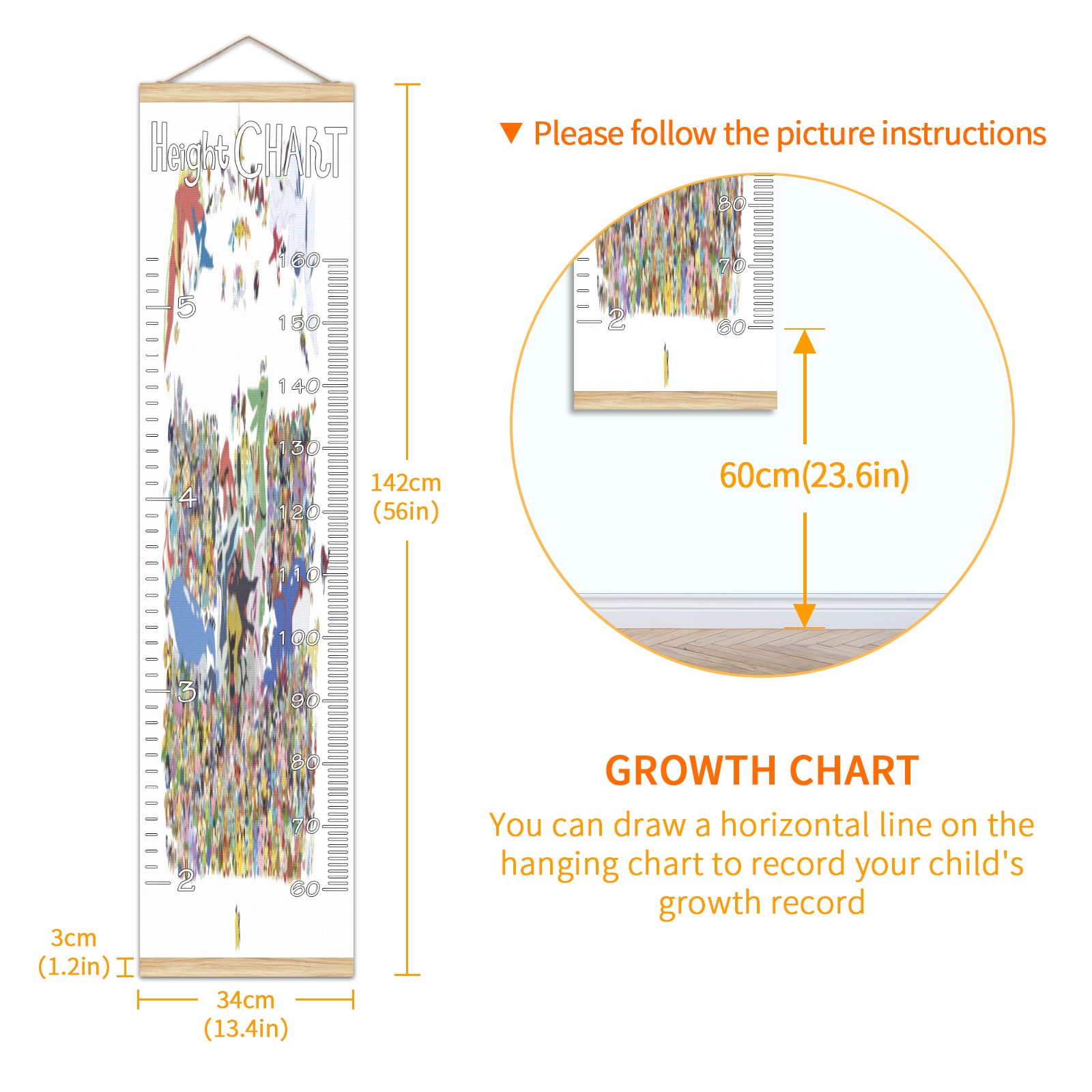 • Детская таблица роста, деревянная рамка для настенного измерителя, таблица роста для детей, измерительная таблица высоты, 13,4x56 дюймов, ткань из льна, подвеска для домашнего декора! Память о прошлом: просто повесьте диаграмму на стену и отметьте на ней дату ручкой, чтобы вместе расти с детьми и записывать их рост в разные годы. Идеальный подарок для детей Экологически чистый и нетоксичный для использования детьми, это идеальный подарок для младенцев, детей, девочек и мальчиков. Это лучший выбор для вашего друга с детьми или младенцем в качестве популярного подарка. Легко читать Измерение точно с 2 шкалами, сантиметры и футы. Буквы достаточно большие, очень легко читать.