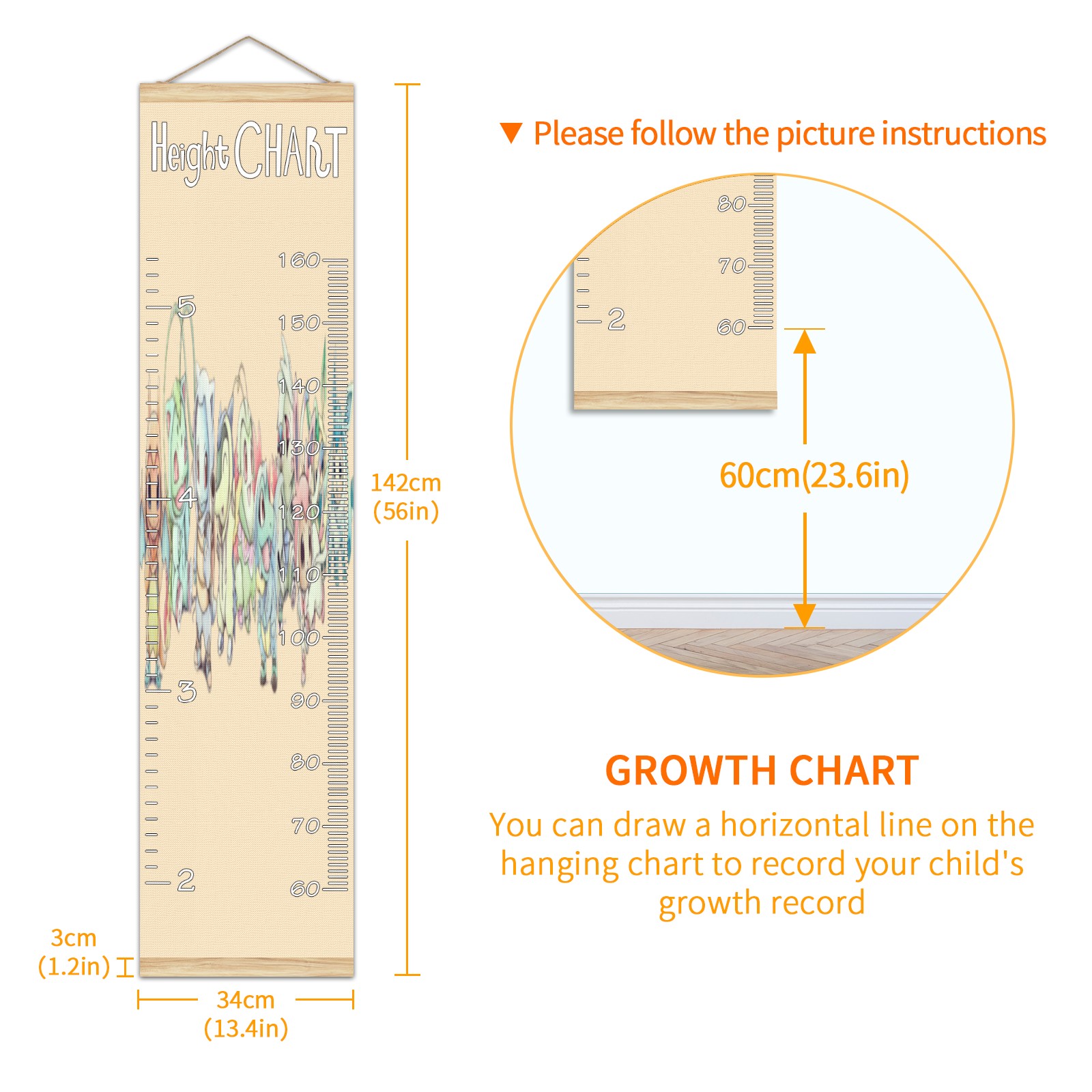 • Детская таблица роста, деревянная рамка для настенного измерителя, таблица роста для детей, измерительная таблица высоты, 13,4x56 дюймов, ткань из льна, подвеска для домашнего декора! Память о прошлом: просто повесьте диаграмму на стену и отметьте на ней дату ручкой, чтобы вместе расти с детьми и записывать их рост в разные годы. Идеальный подарок для детей Экологически чистый и нетоксичный для использования детьми, это идеальный подарок для младенцев, детей, девочек и мальчиков. Это лучший выбор для вашего друга с детьми или младенцем в качестве популярного подарка. Легко читать Измерение точно с 2 шкалами, сантиметры и футы. Буквы достаточно большие, очень легко читать.