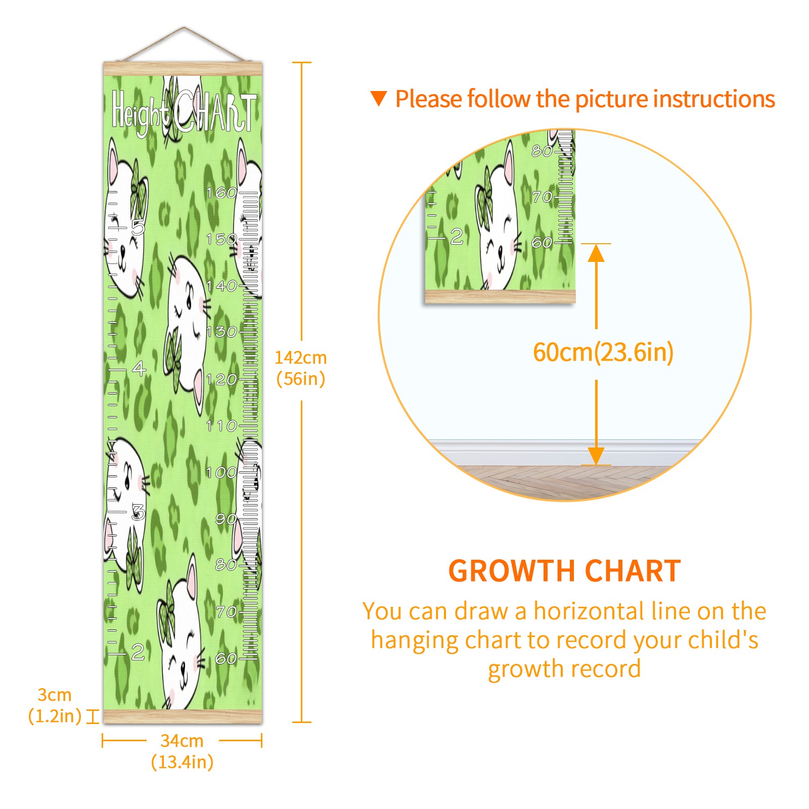 Съемная таблица роста для детей - Вешная таблица измерения роста - Значимые воспоминания через измерение роста по детской таблице Таблица роста с линейкой для настенного крепленияCat Green Home Decor