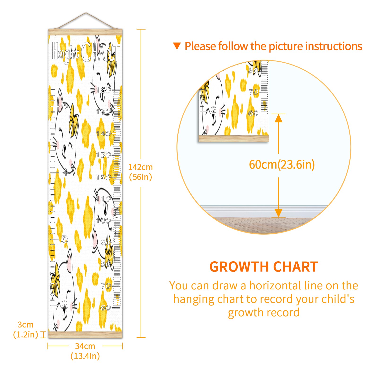 Съемная таблица роста для детей - Вешная таблица измерения роста - Значимые воспоминания через измерение роста по детской таблице Таблица роста с линейкой для настенного крепленияHello Cat Yellow Home Decor