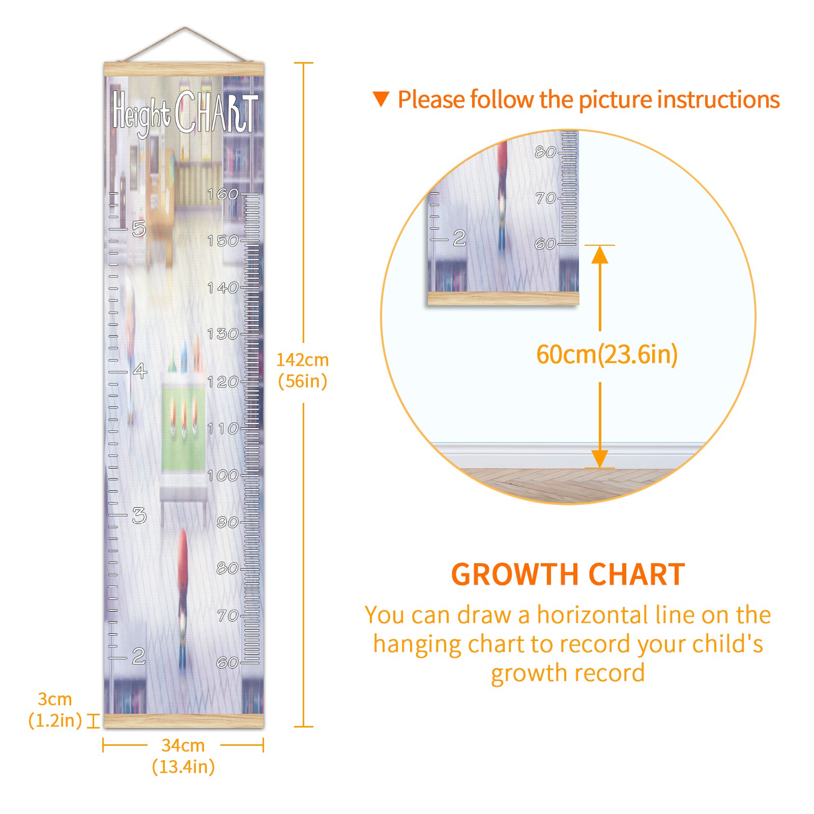 • Детская таблица роста, деревянная рамка для настенного измерителя, таблица роста для детей, измерительная таблица высоты, 13,4x56 дюймов, ткань из льна, подвеска для домашнего декора! Память о прошлом: просто повесьте диаграмму на стену и отметьте на ней дату ручкой, чтобы вместе расти с детьми и записывать их рост в разные годы. Идеальный подарок для детей Экологически чистый и нетоксичный для использования детьми, это идеальный подарок для младенцев, детей, девочек и мальчиков. Это лучший выбор для вашего друга с детьми или младенцем в качестве популярного подарка. Легко читать Измерение точно с 2 шкалами, сантиметры и футы. Буквы достаточно большие, очень легко читать.