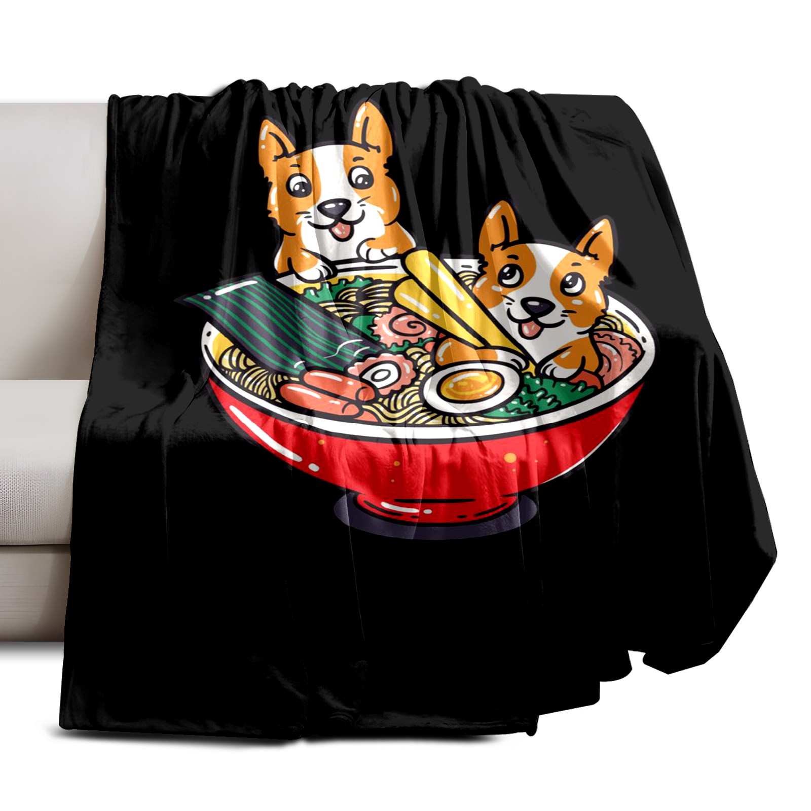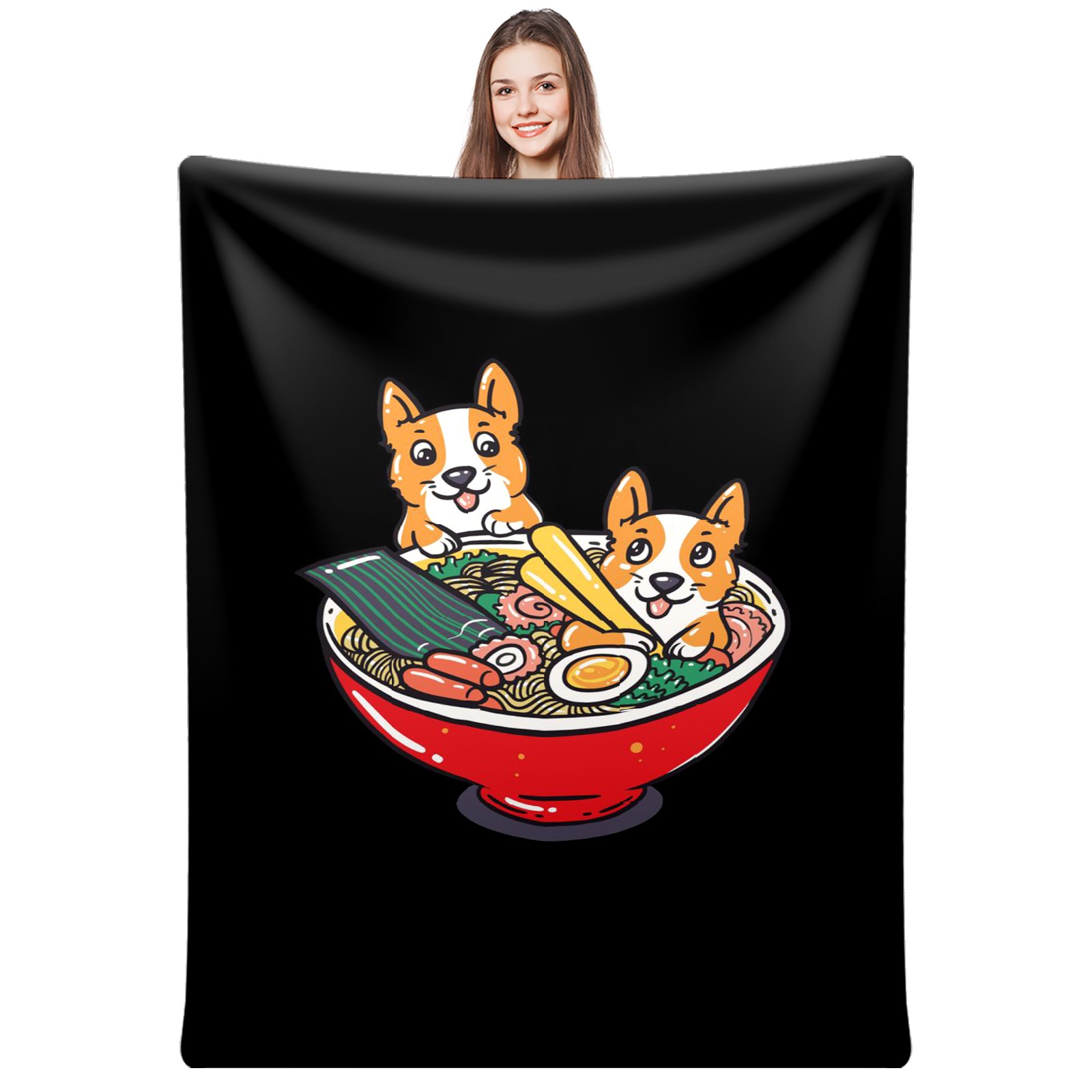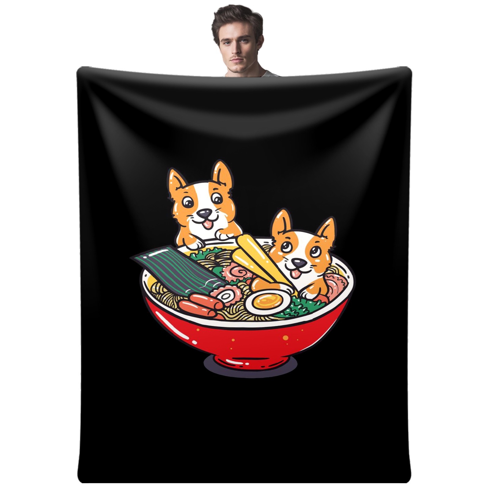 Flannel Blanket, Ultra-Soft Comfortable Home Decor Rug, The Perfect Comfort Gift for Both Men Women, Suitable for Beds, Sofas, Loungewear, and Travel 30x39in(Awesome Corgi Dog Ramen)