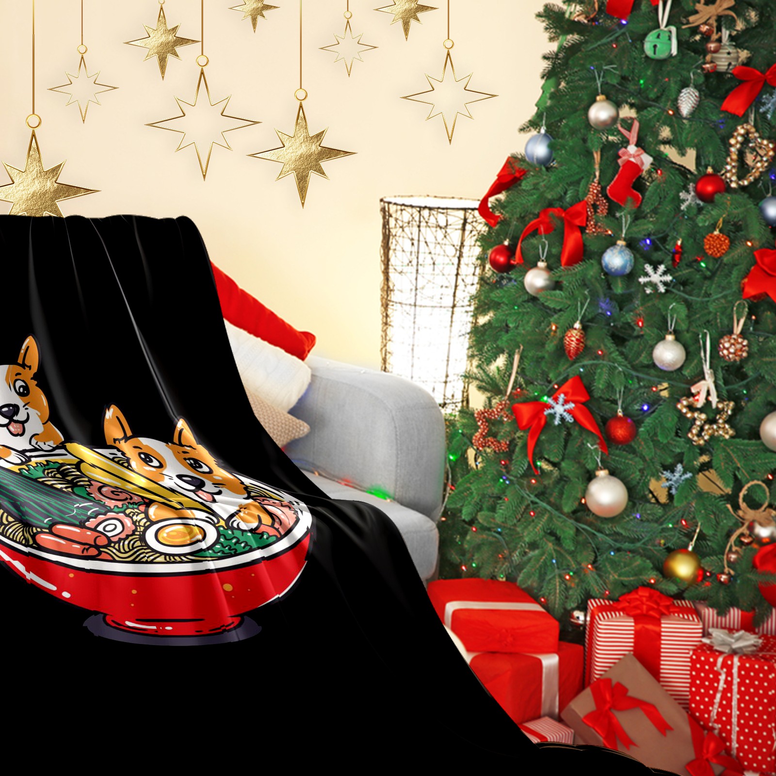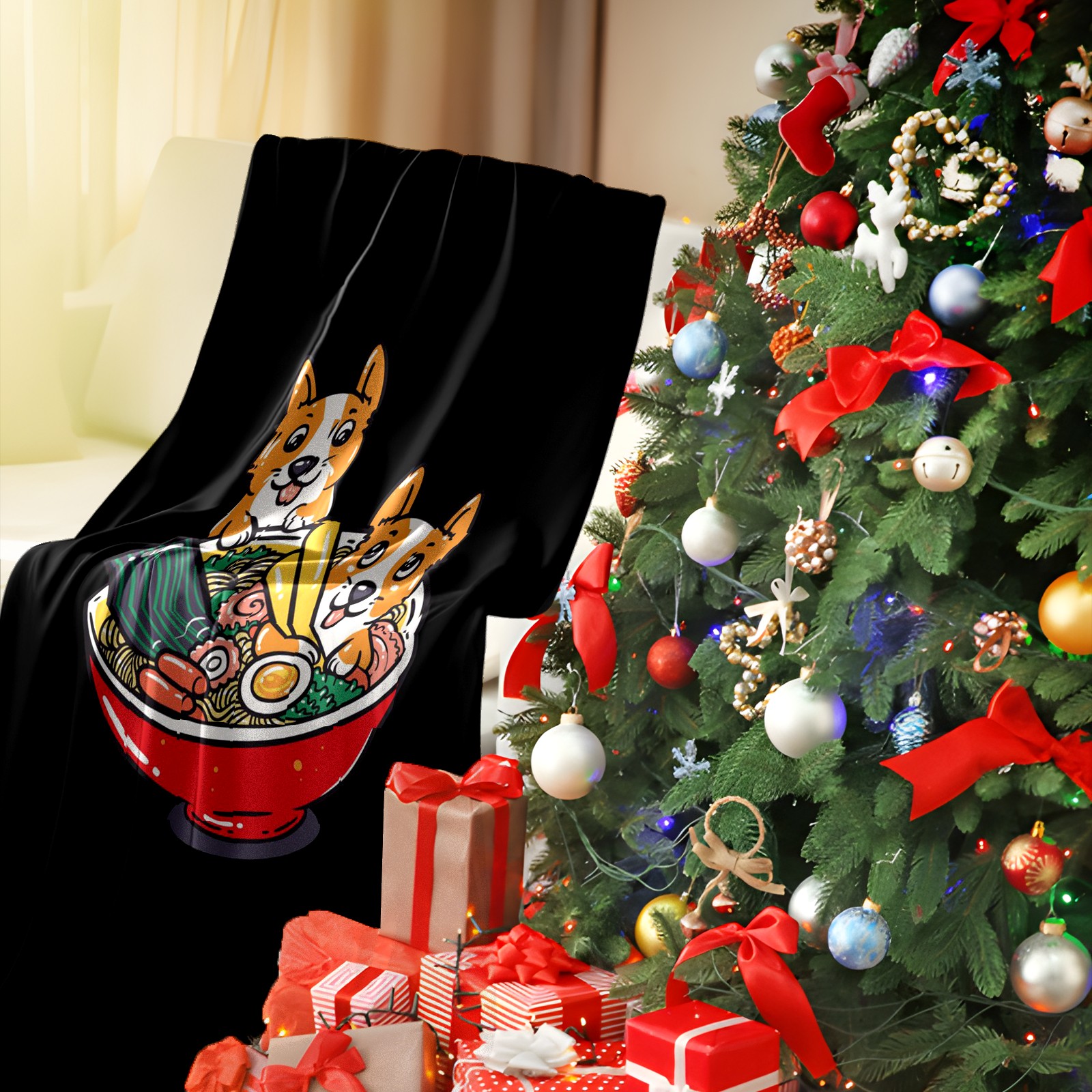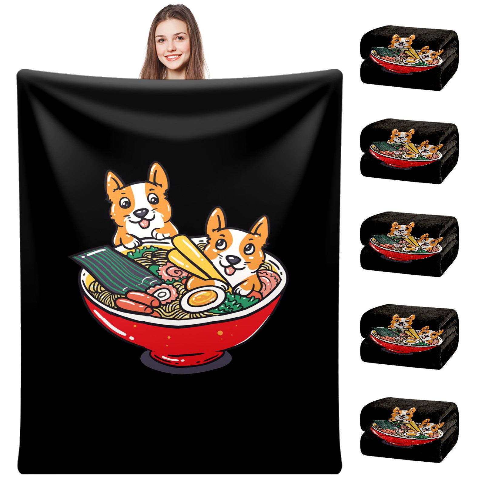 Flannel Blanket, Ultra-Soft Comfortable Home Decor Rug, The Perfect Comfort Gift for Both Men Women, Suitable for Beds, Sofas, Loungewear, and Travel 30x39in(Awesome Corgi Dog Ramen)