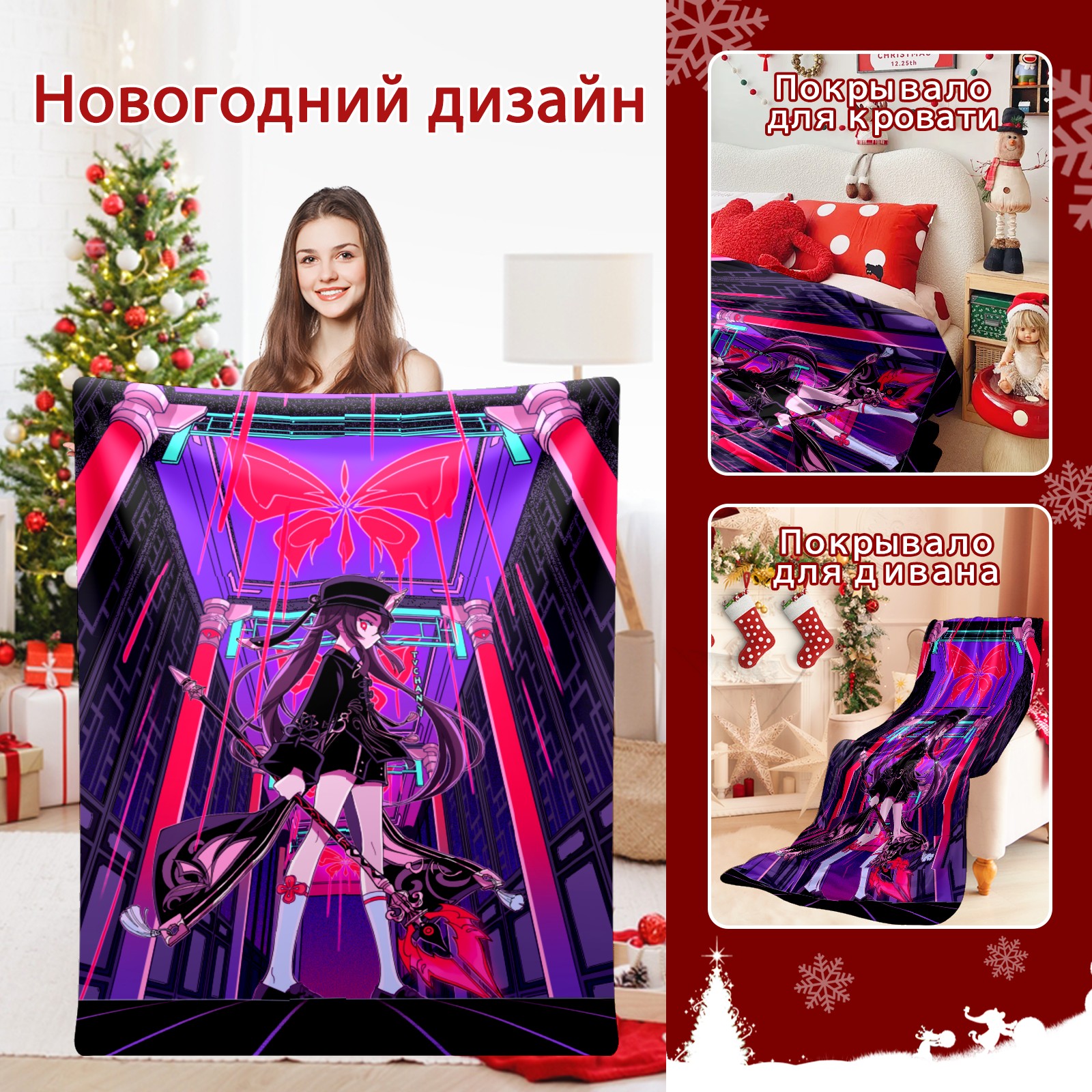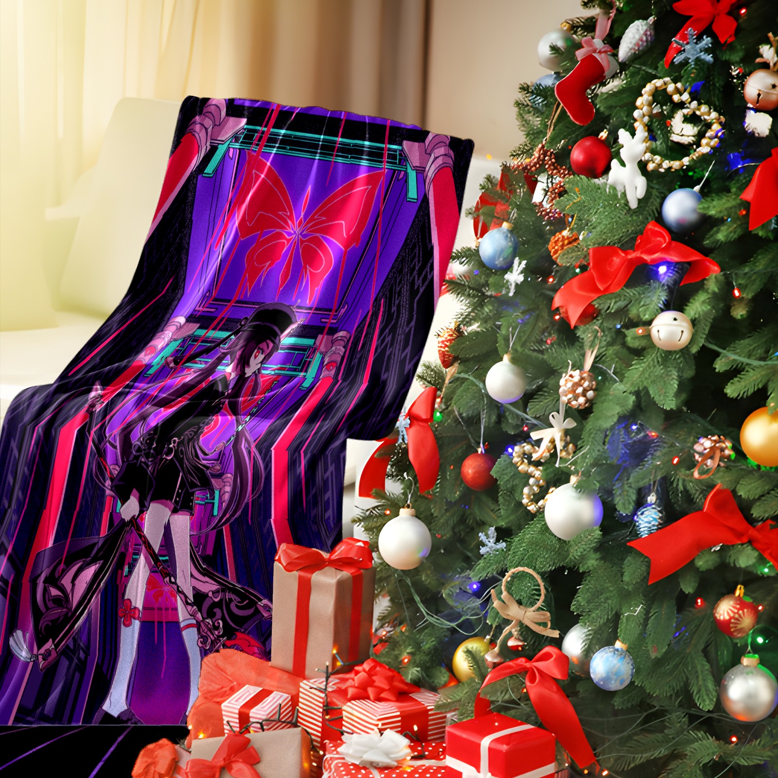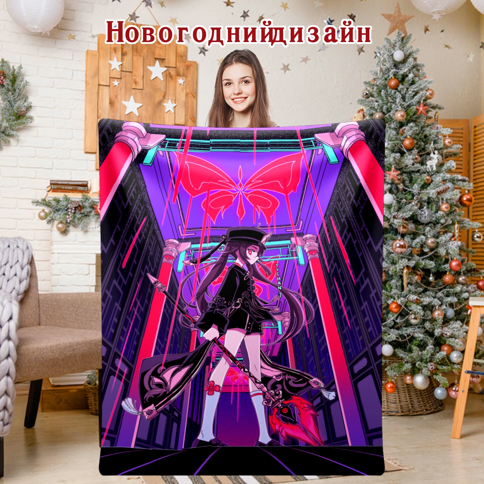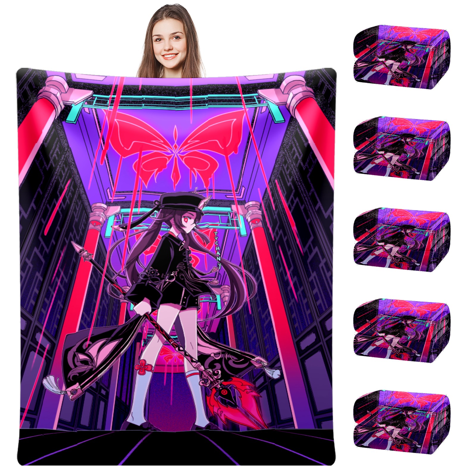 Flannel Blanket, Ultra-Soft Comfortable Home Decor Rug, The Perfect Comfort Gift for Both Men Women, Suitable for Beds, Sofas, Loungewear, and Travel 30x39in(原神 胡桃 001)