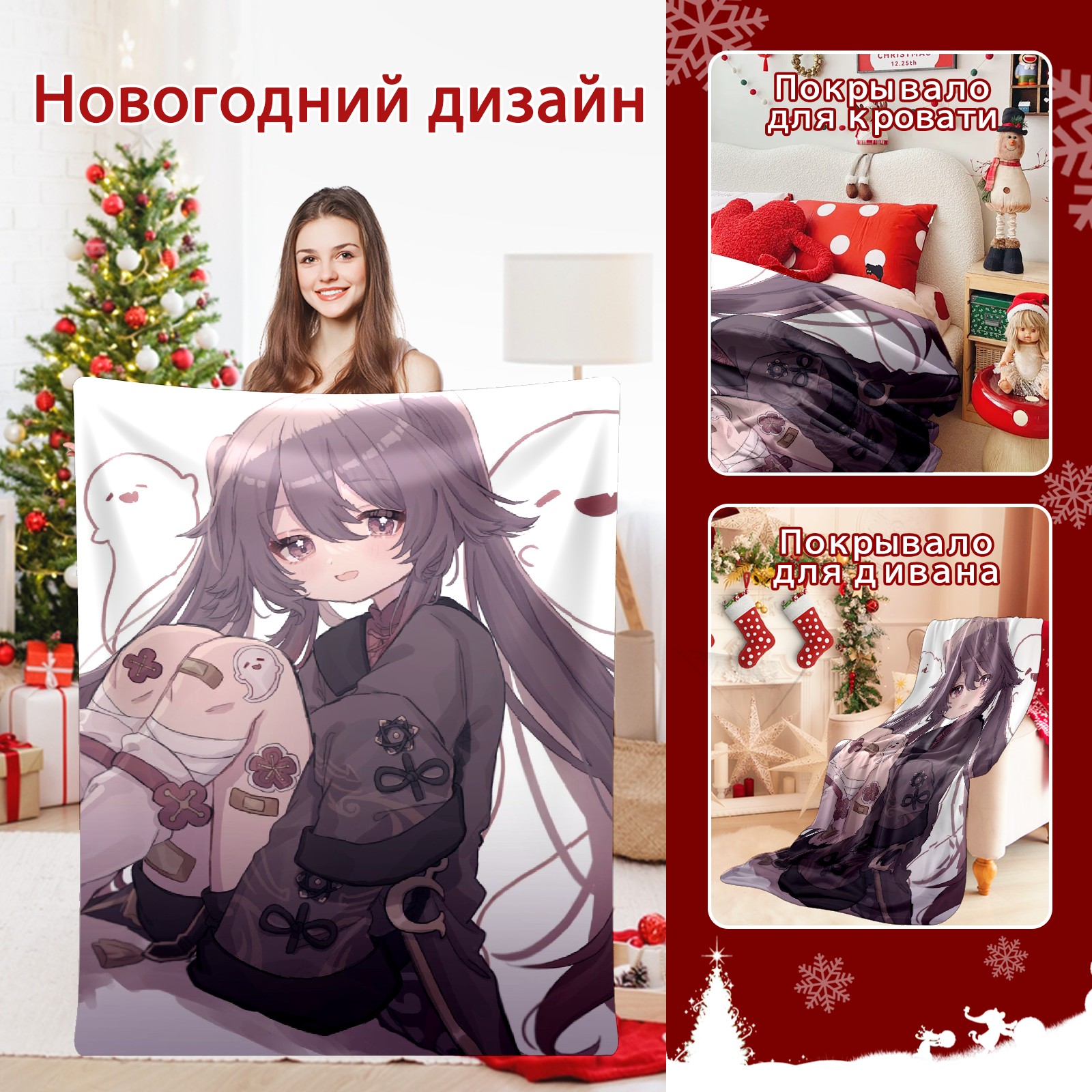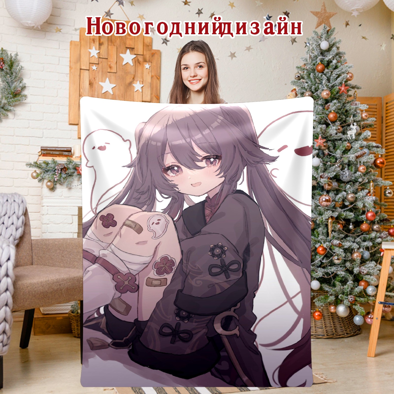 Flannel Blanket, Ultra-Soft Comfortable Home Decor Rug, The Perfect Comfort Gift for Both Men Women, Suitable for Beds, Sofas, Loungewear, and Travel 30x39in(原神 胡桃 005)