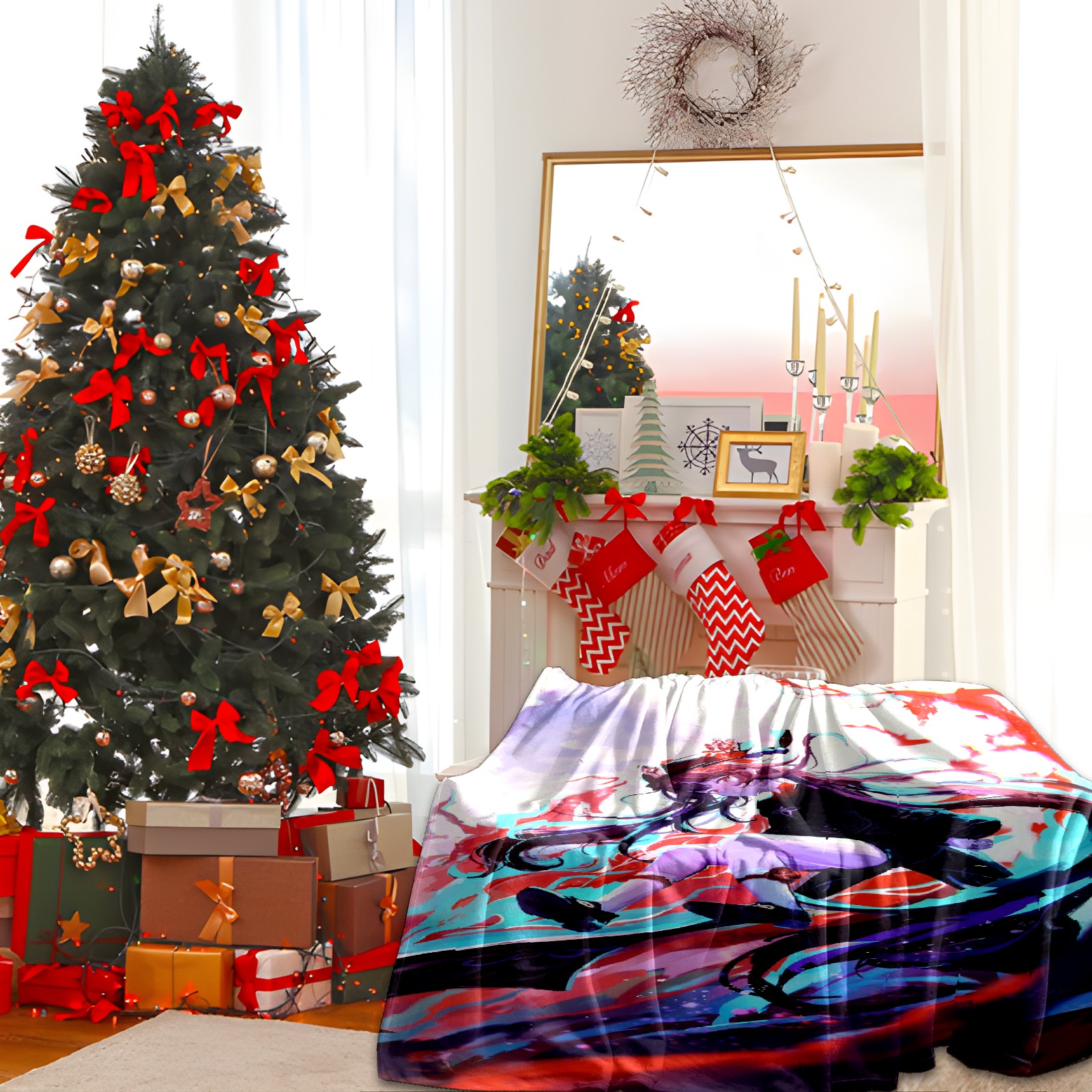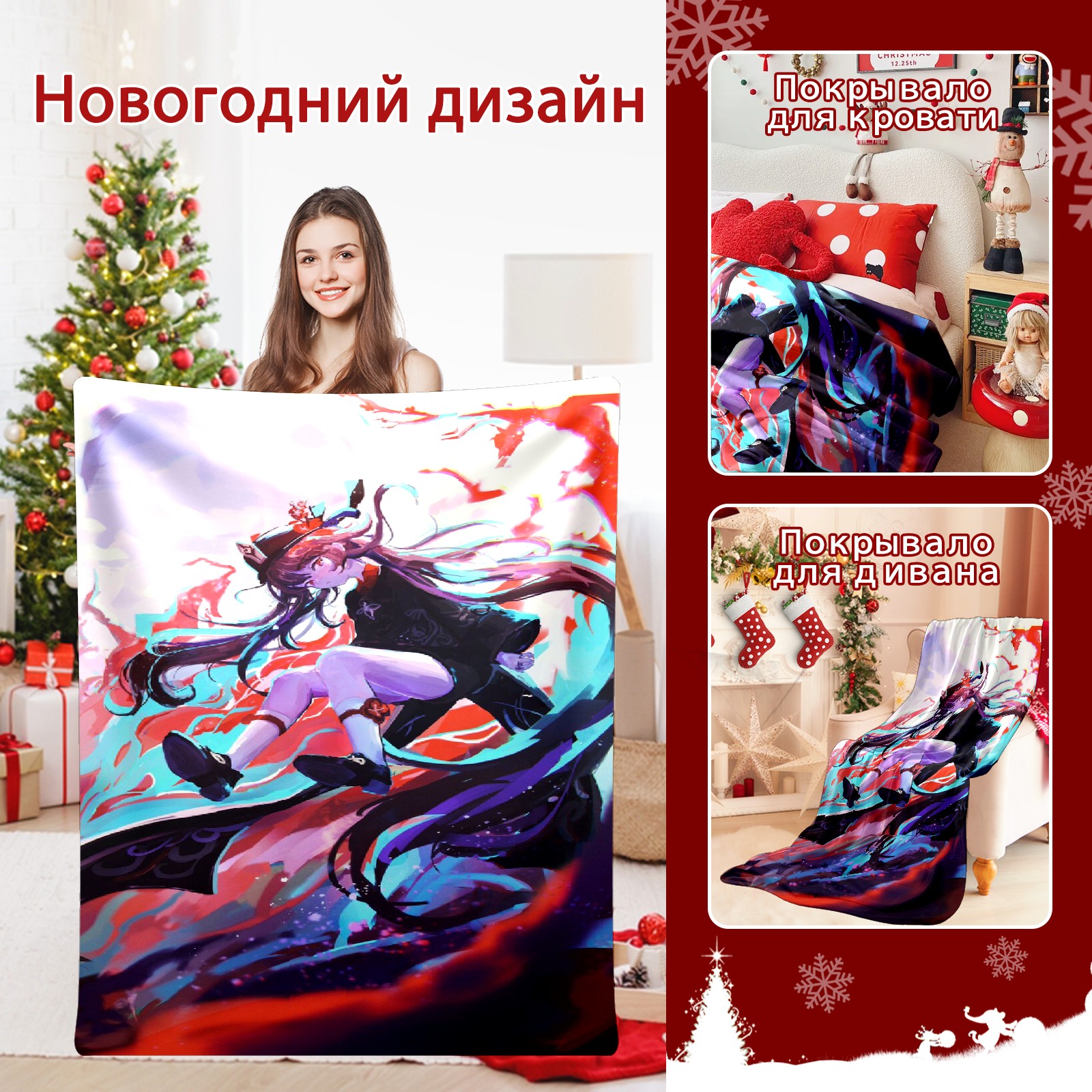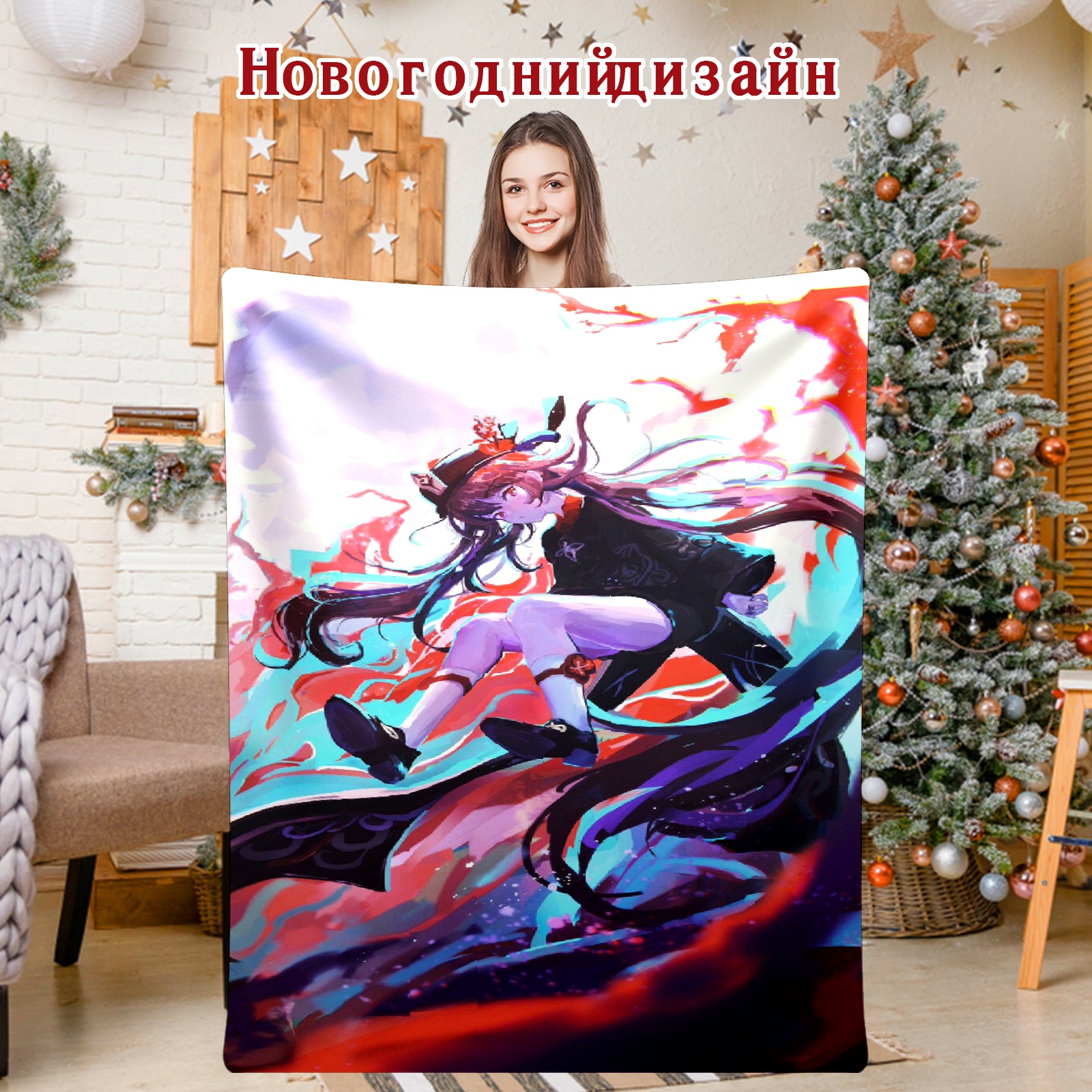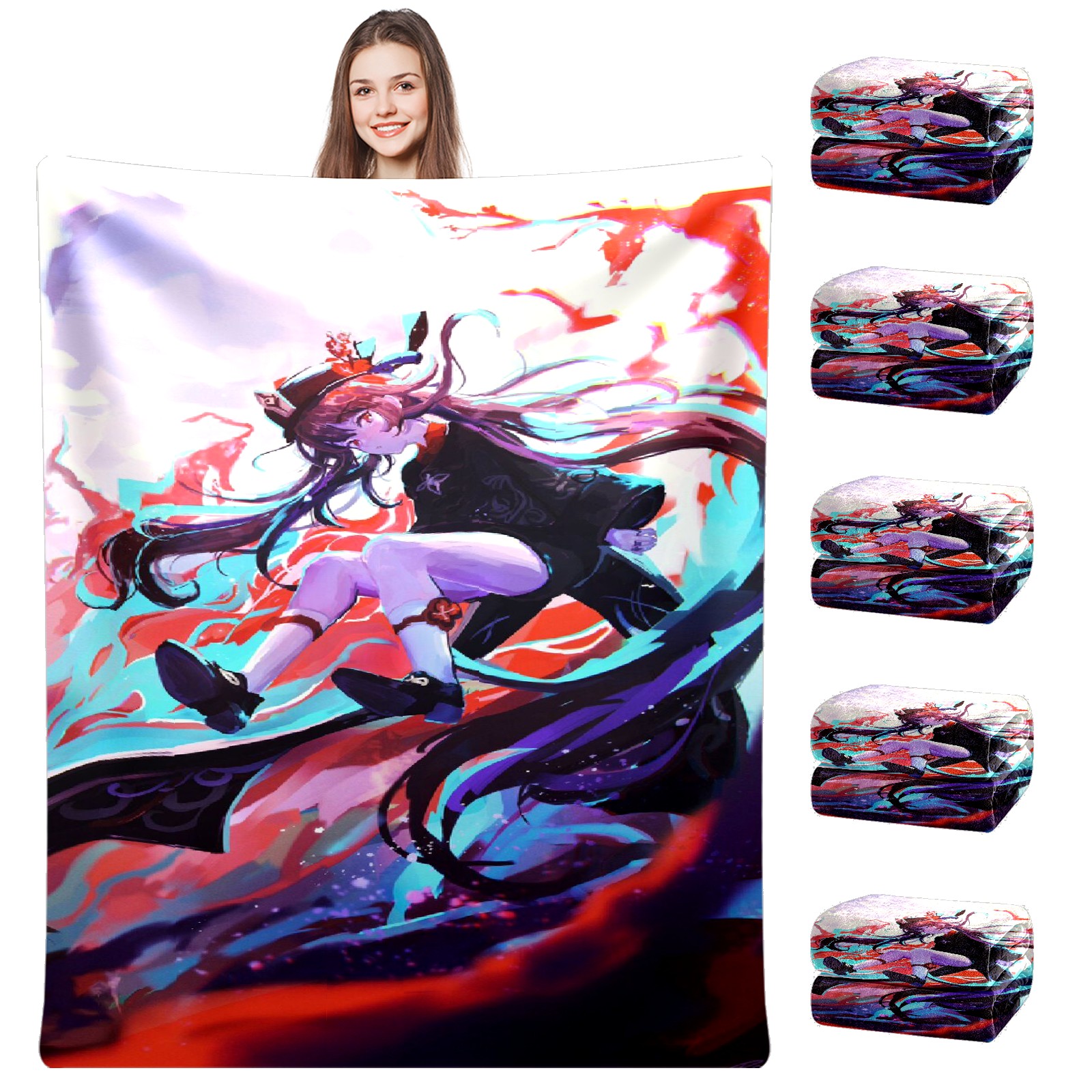Flannel Blanket, Ultra-Soft Comfortable Home Decor Rug, The Perfect Comfort Gift for Both Men Women, Suitable for Beds, Sofas, Loungewear, and Travel 30x39in(原神 胡桃 009)