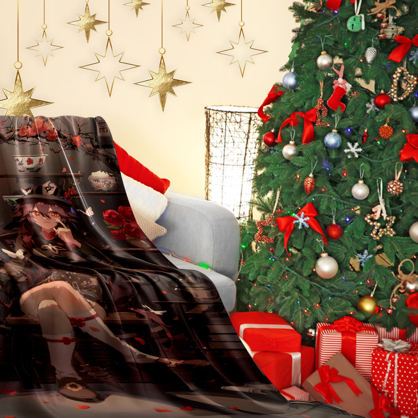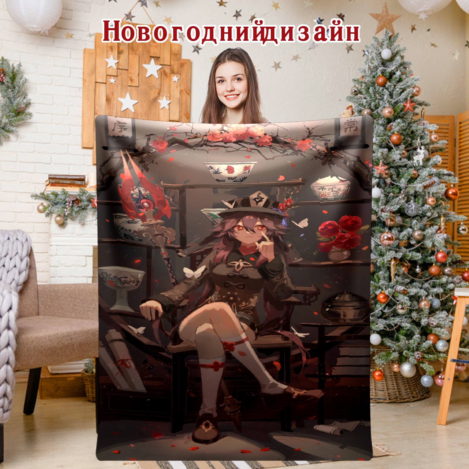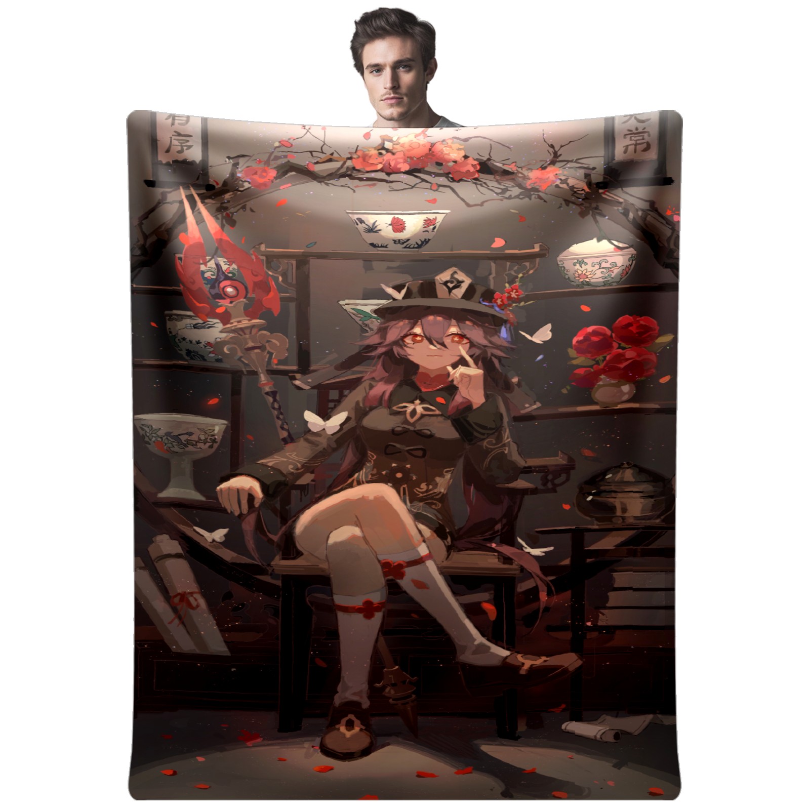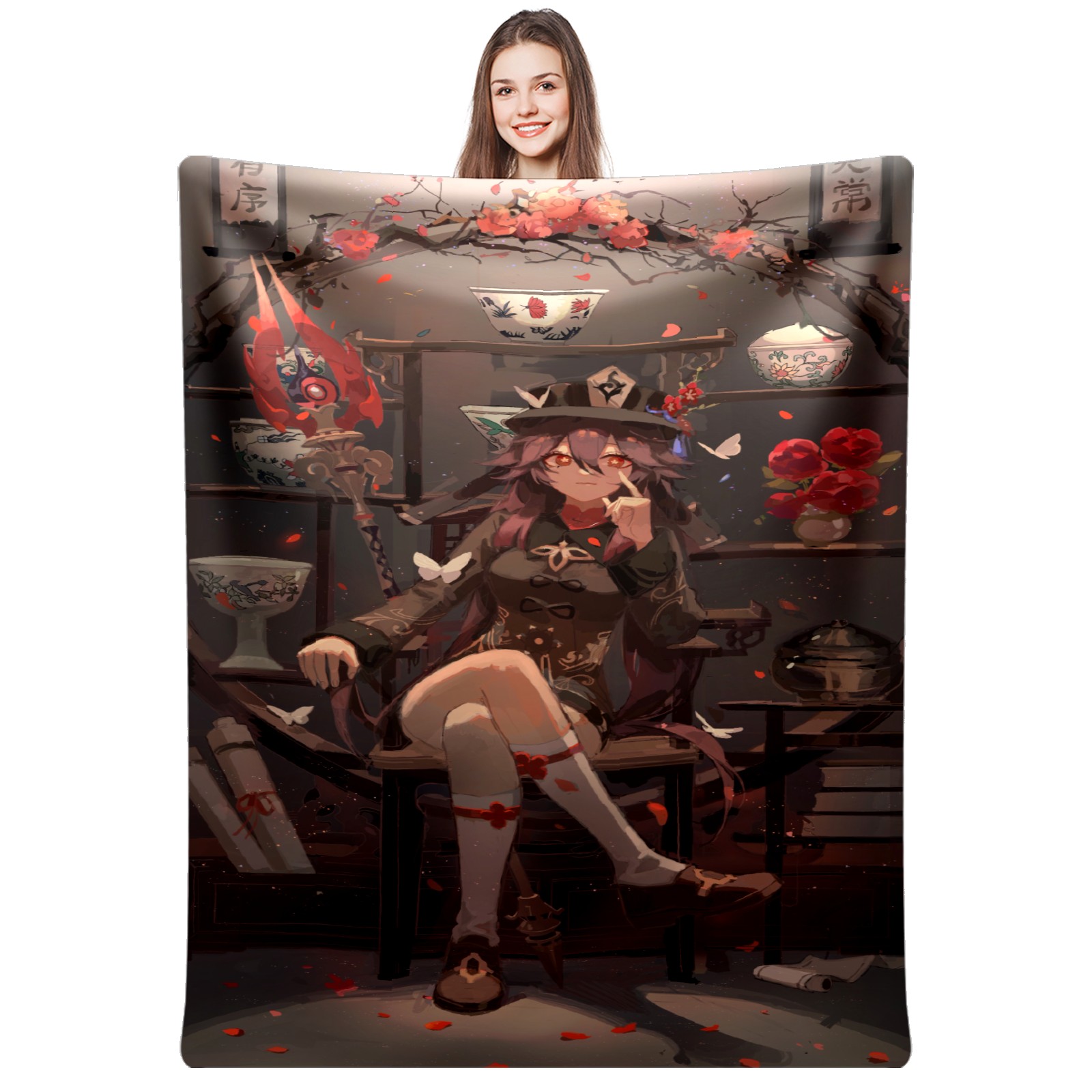 Flannel Blanket, Ultra-Soft Comfortable Home Decor Rug, The Perfect Comfort Gift for Both Men Women, Suitable for Beds, Sofas, Loungewear, and Travel 30x39in(原神 胡桃 011)
