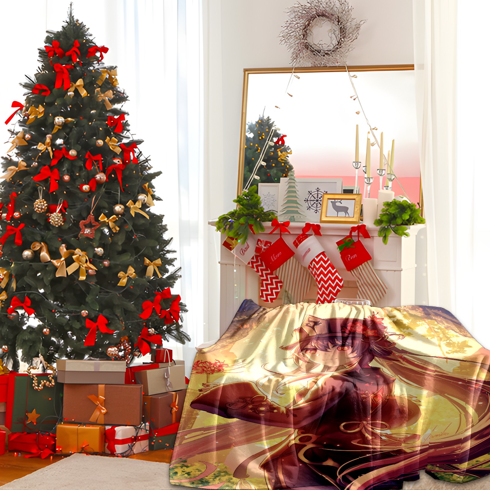Flannel Blanket, Ultra-Soft Comfortable Home Decor Rug, The Perfect Comfort Gift for Both Men Women, Suitable for Beds, Sofas, Loungewear, and Travel 30x39in(原神 胡桃 016)