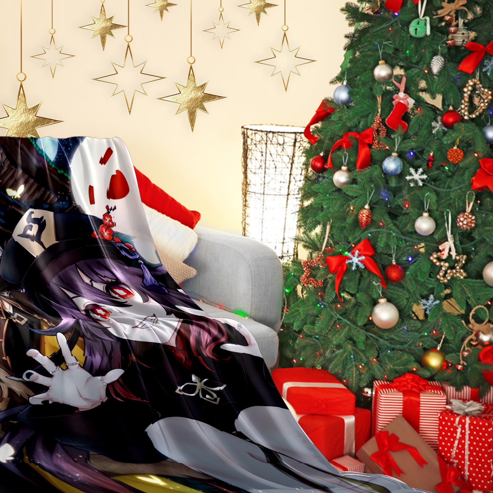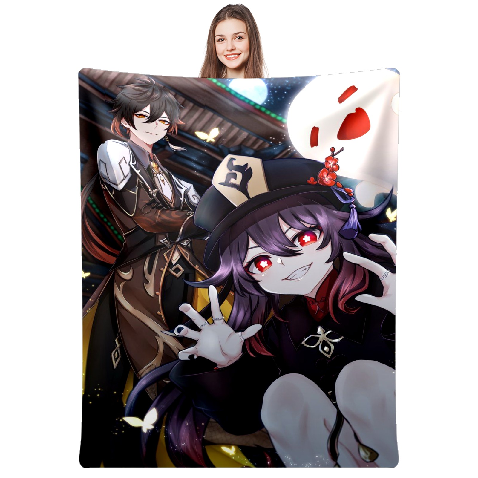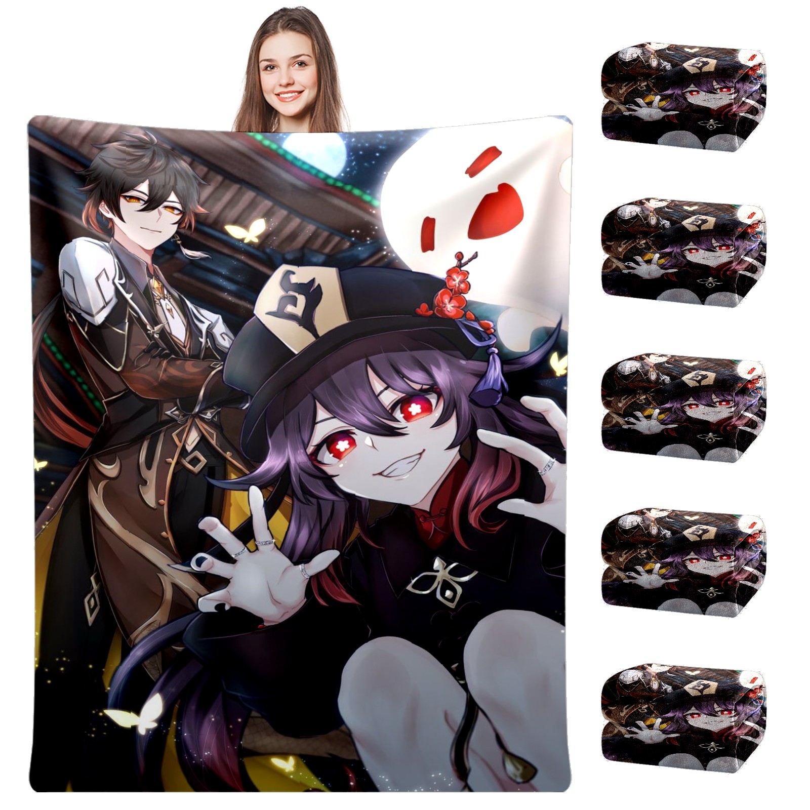 Flannel Blanket, Ultra-Soft Comfortable Home Decor Rug, The Perfect Comfort Gift for Both Men Women, Suitable for Beds, Sofas, Loungewear, and Travel 30x39in(原神 胡桃 018)