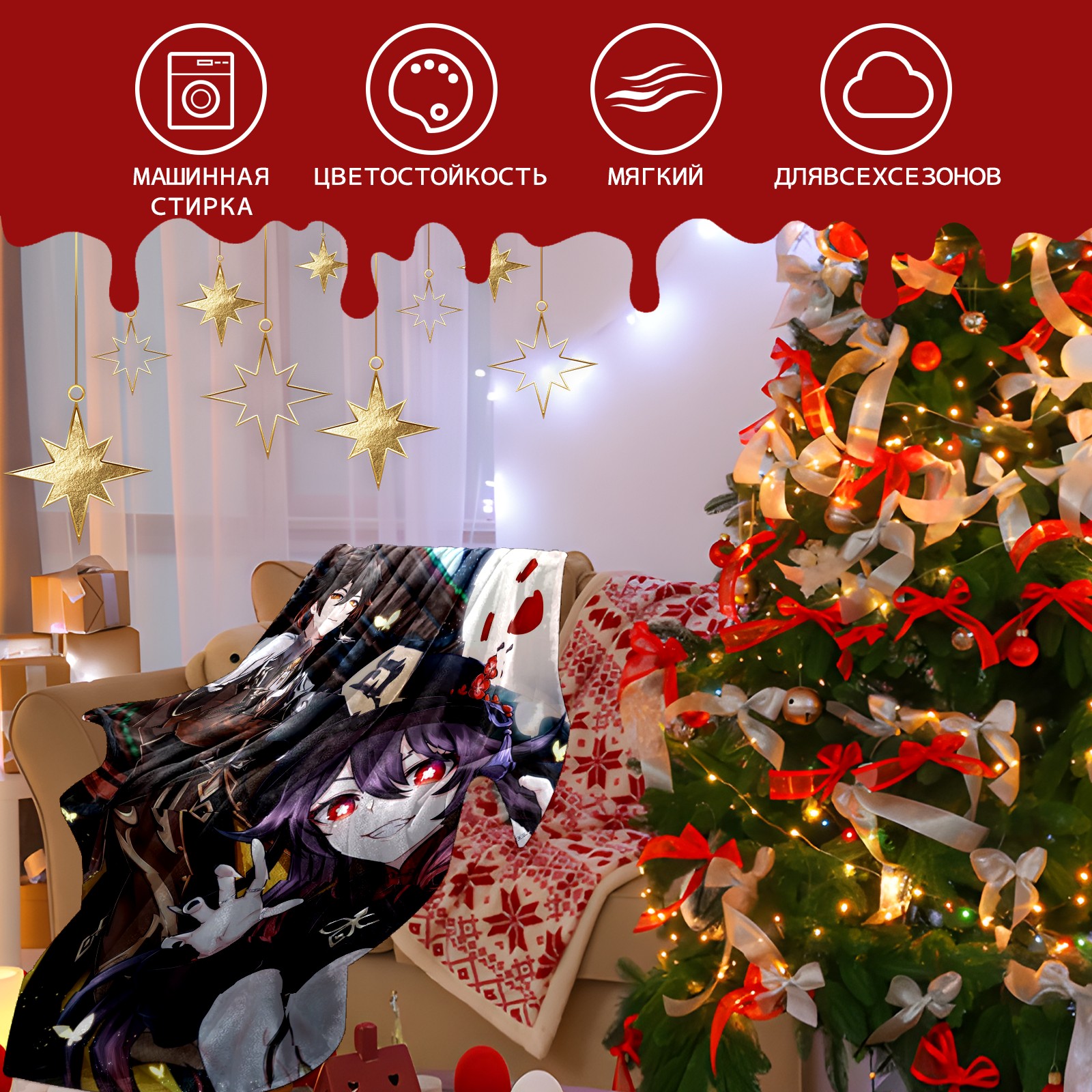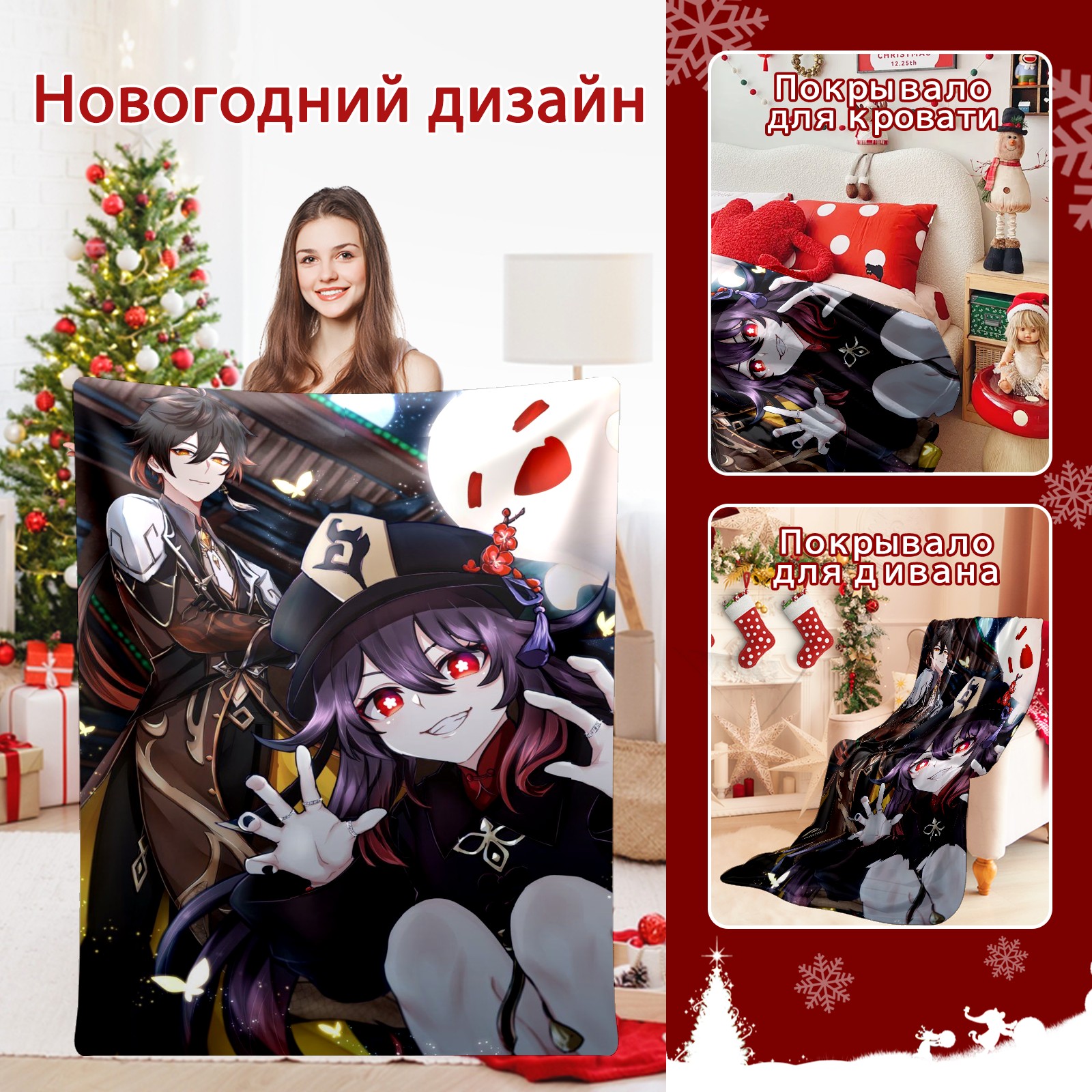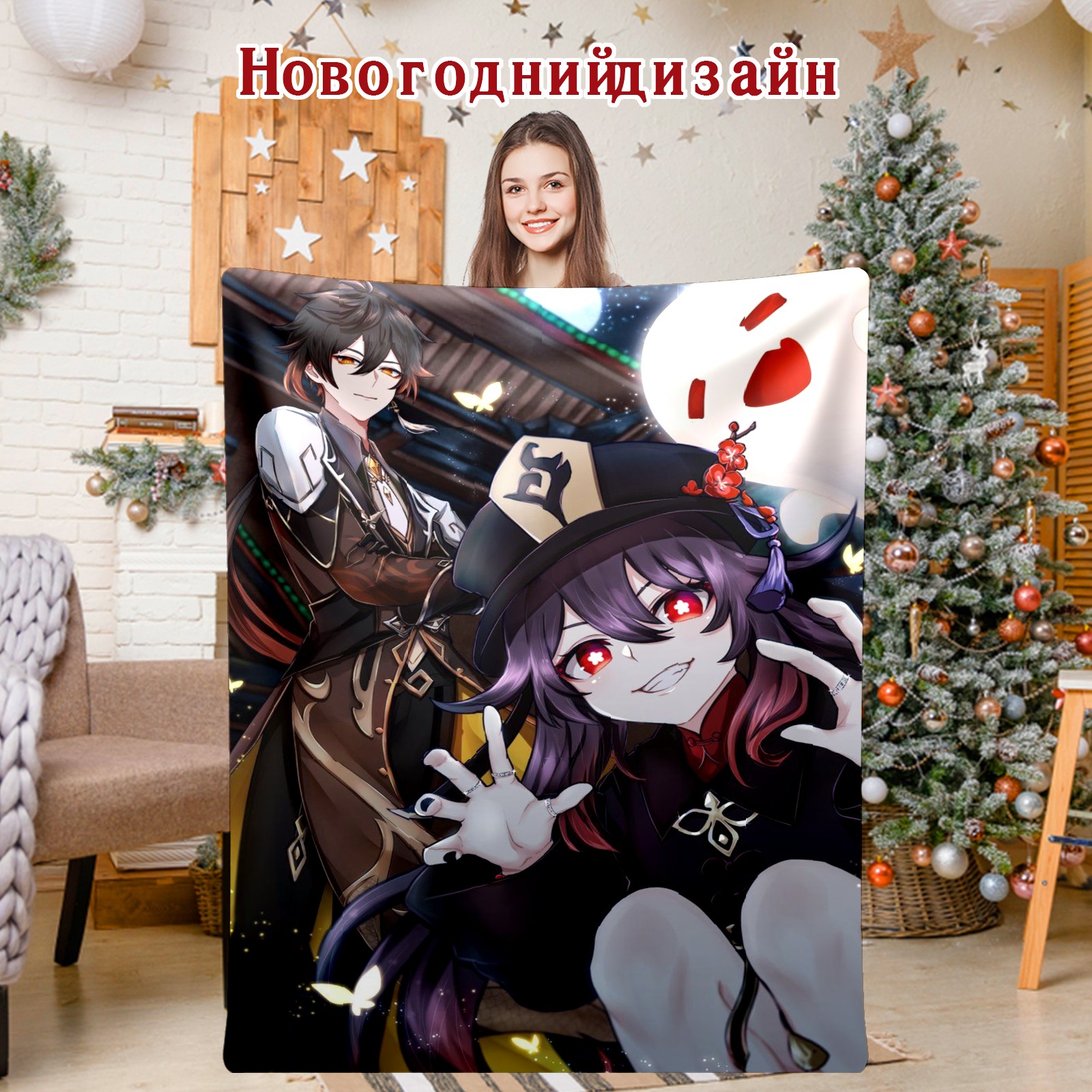 Flannel Blanket, Ultra-Soft Comfortable Home Decor Rug, The Perfect Comfort Gift for Both Men Women, Suitable for Beds, Sofas, Loungewear, and Travel 30x39in(原神 胡桃 018)