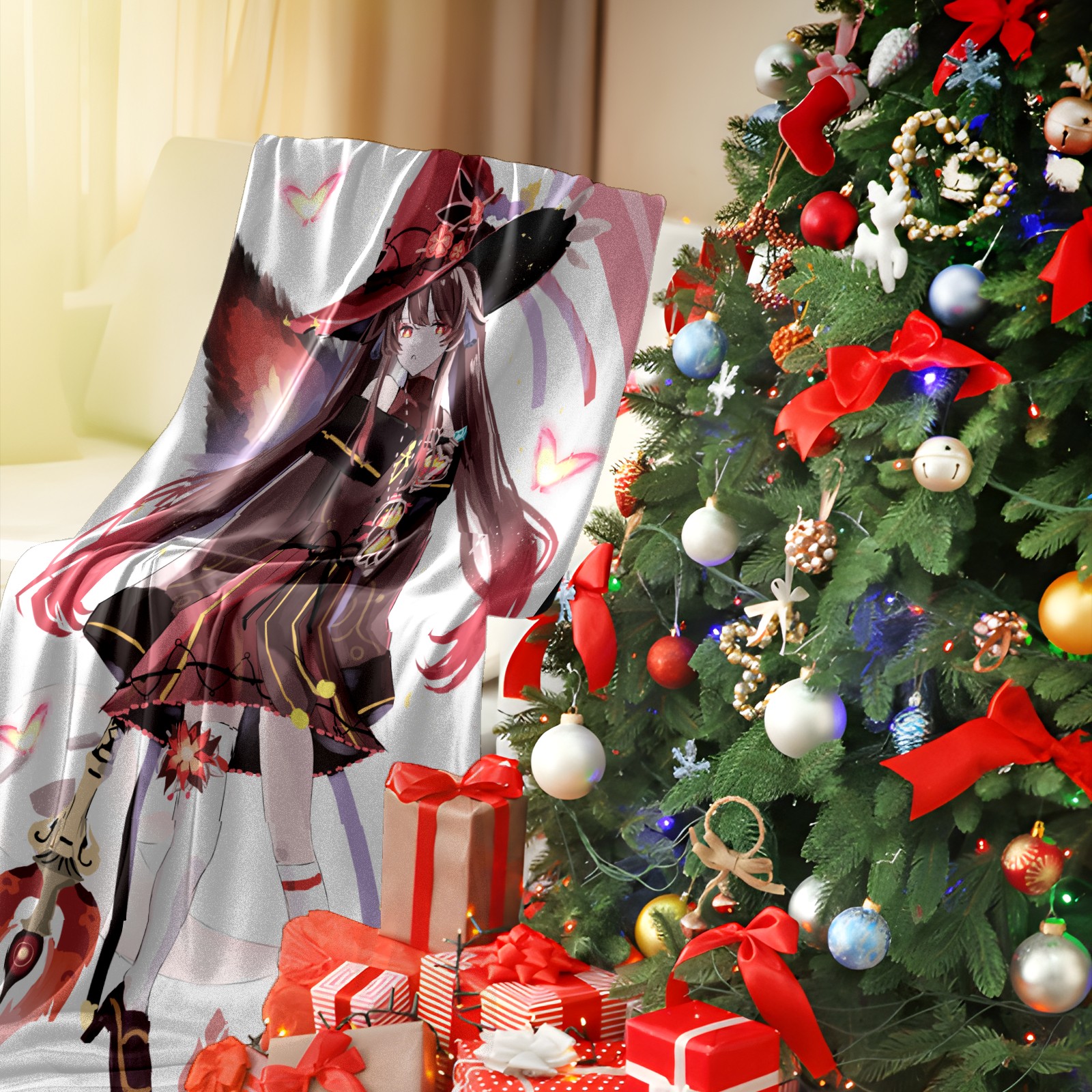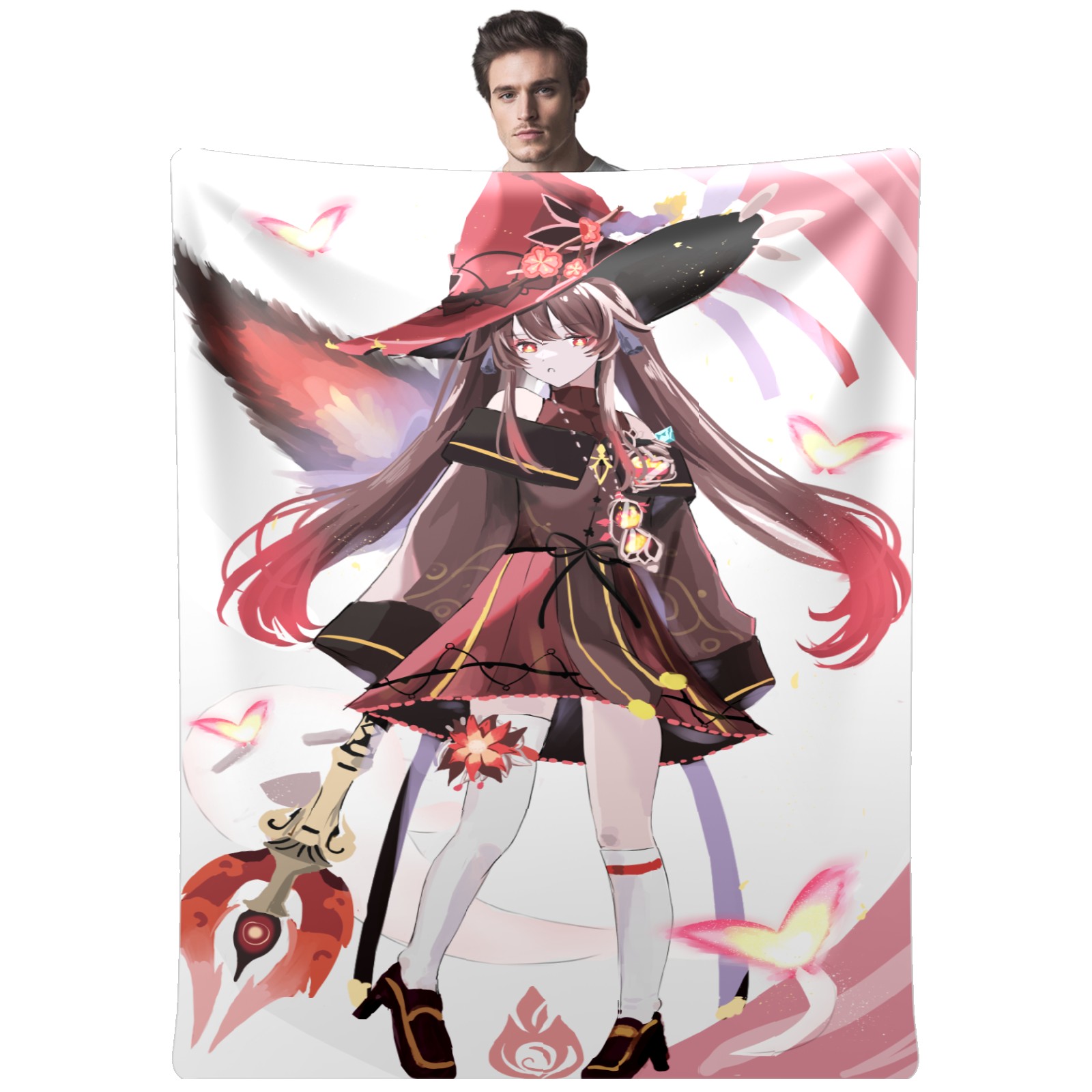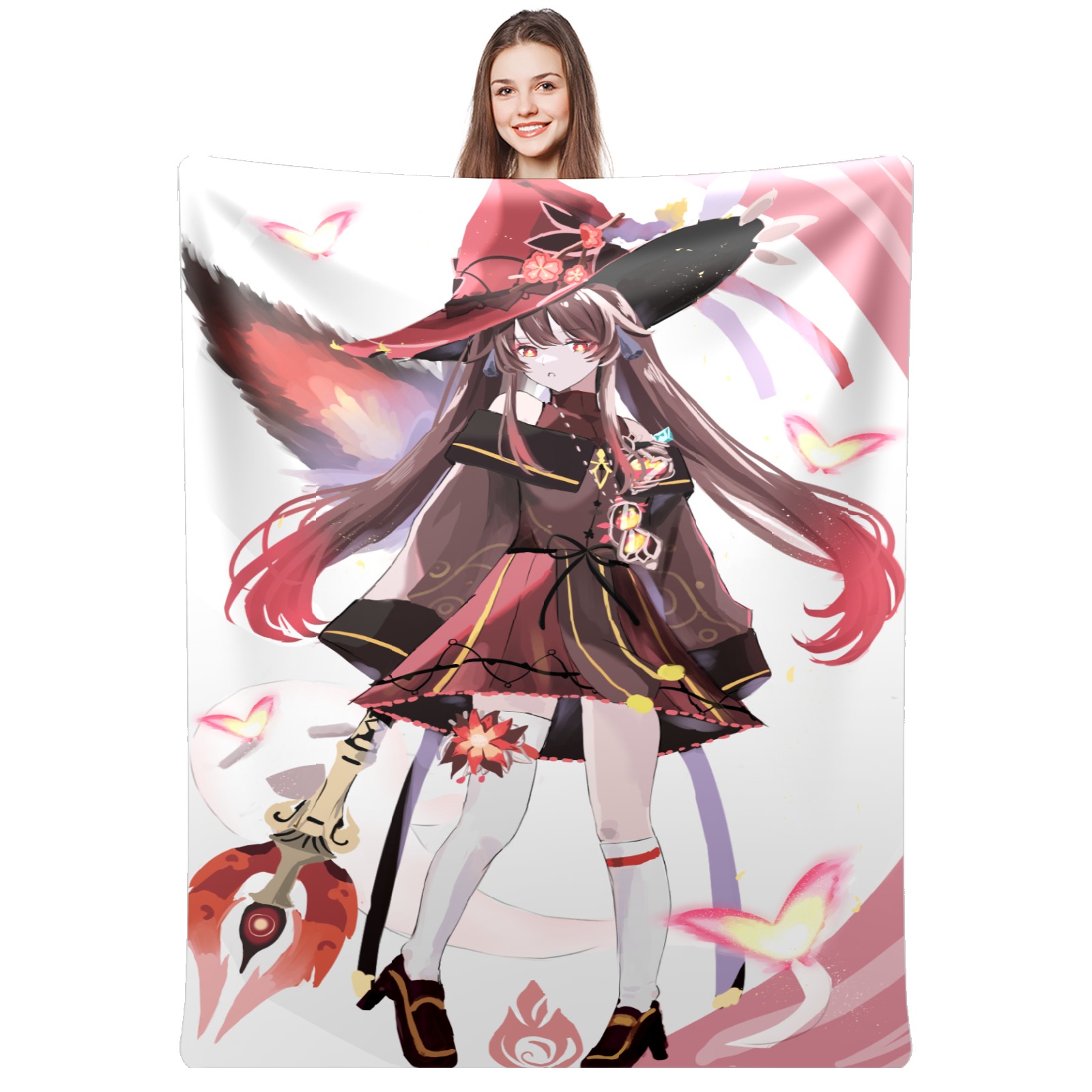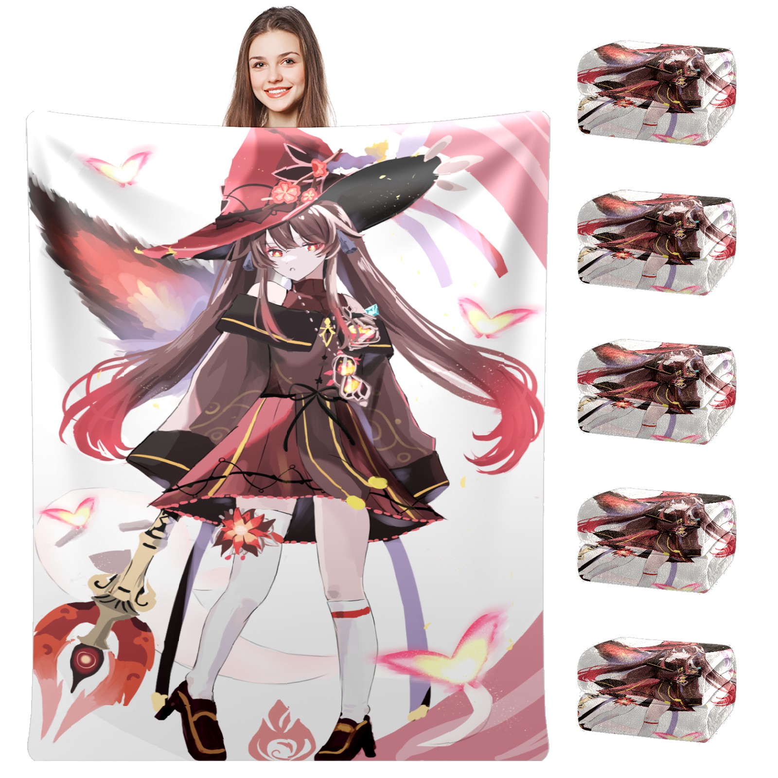 Flannel Blanket, Ultra-Soft Comfortable Home Decor Rug, The Perfect Comfort Gift for Both Men Women, Suitable for Beds, Sofas, Loungewear, and Travel 30x39in(原神 胡桃 020)