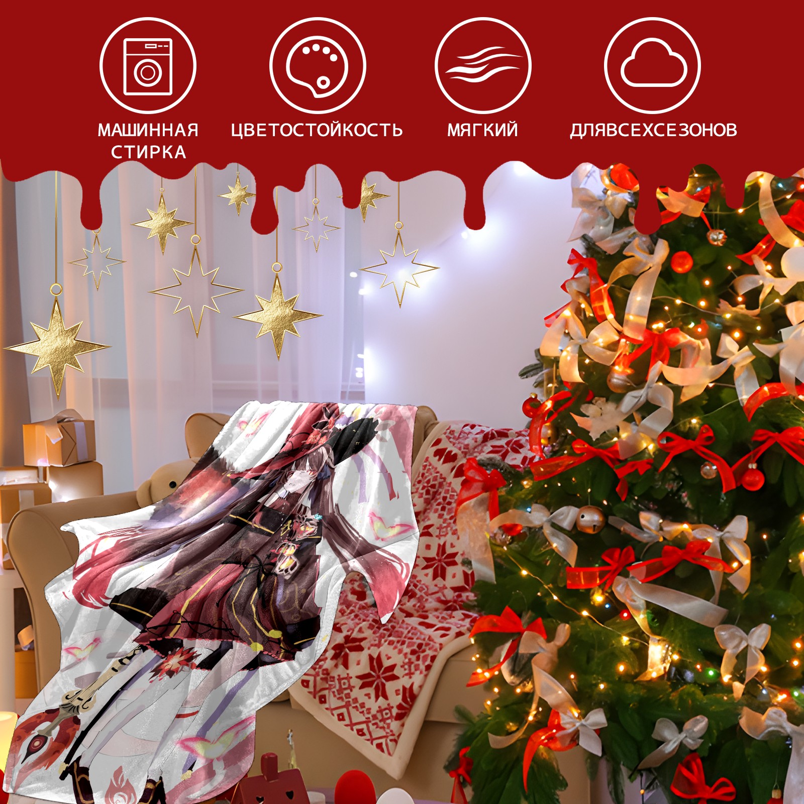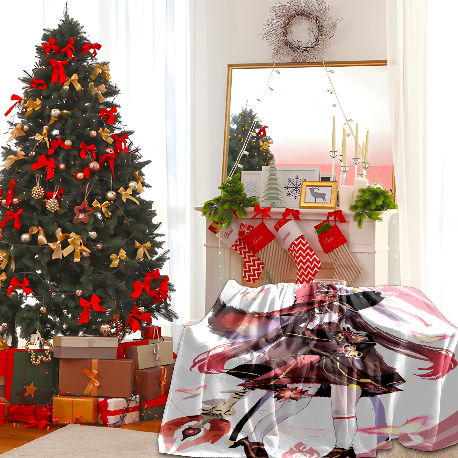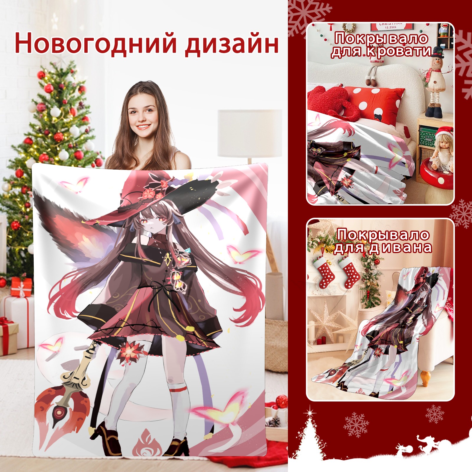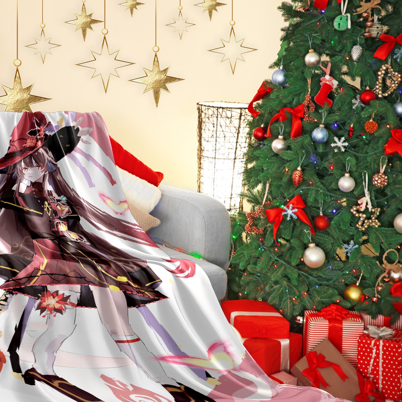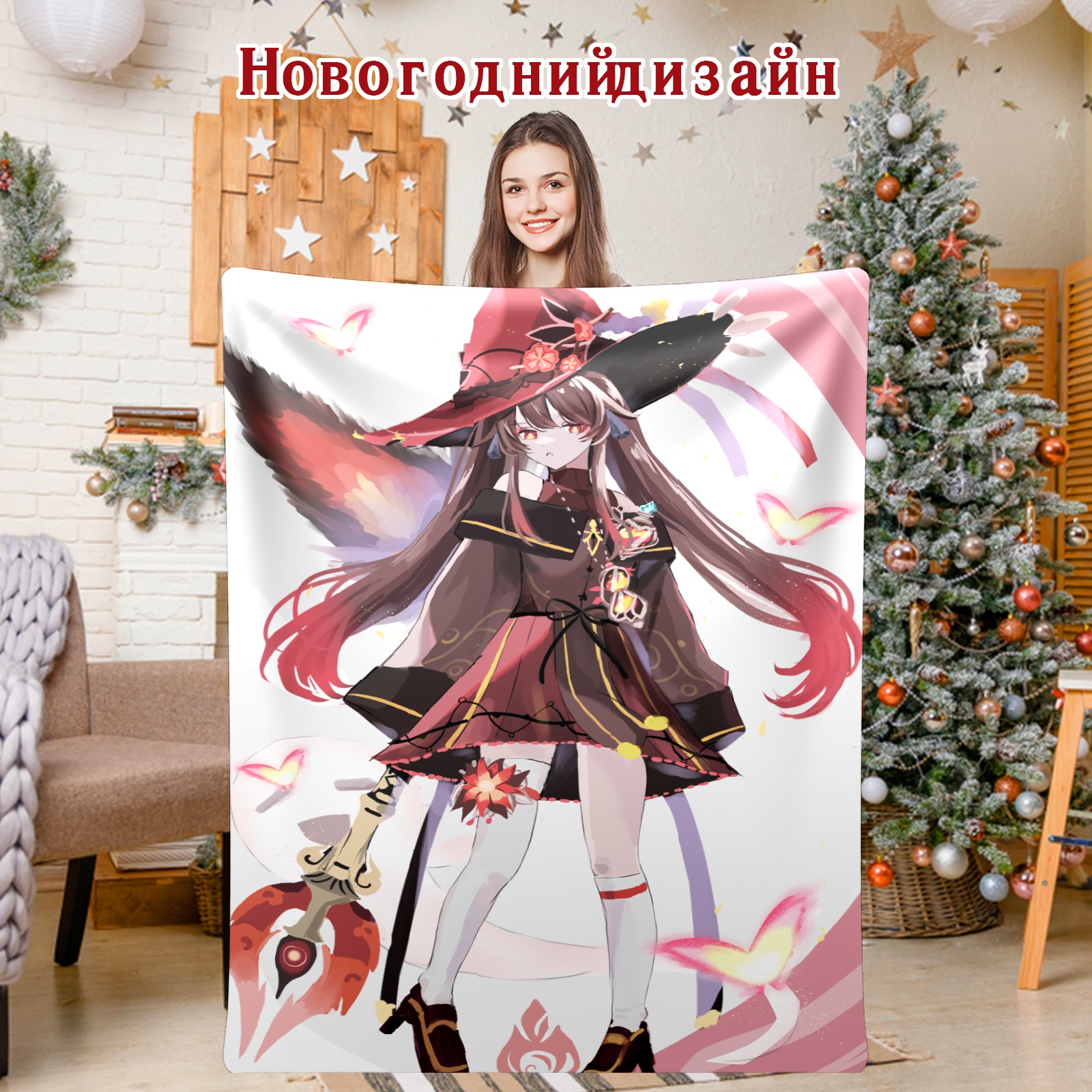 Flannel Blanket, Ultra-Soft Comfortable Home Decor Rug, The Perfect Comfort Gift for Both Men Women, Suitable for Beds, Sofas, Loungewear, and Travel 30x39in(原神 胡桃 020)