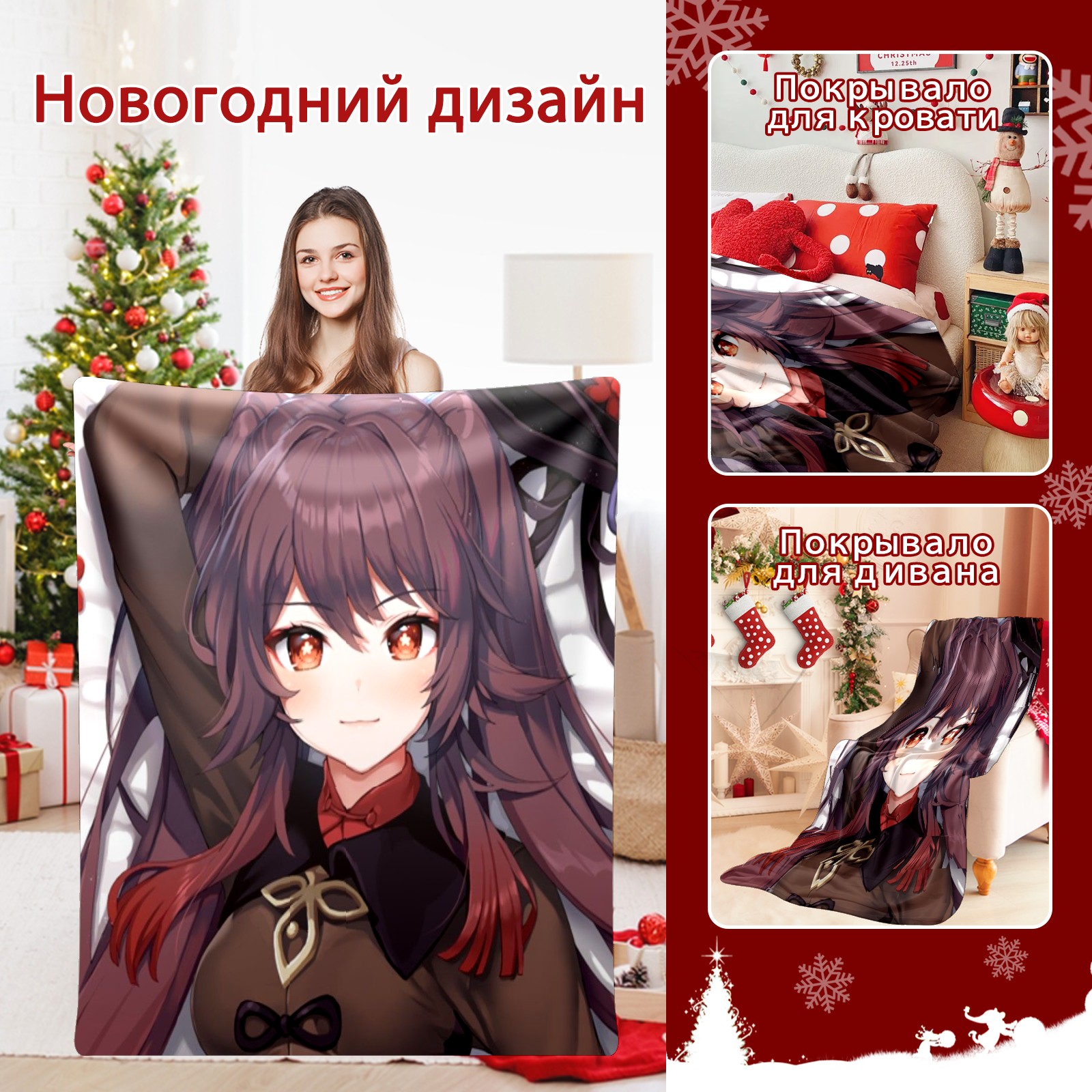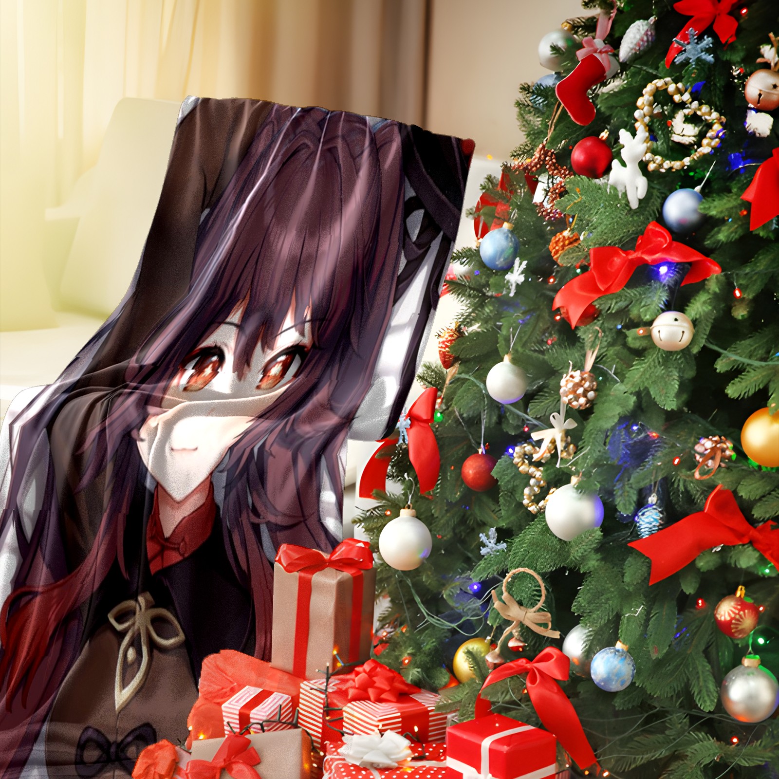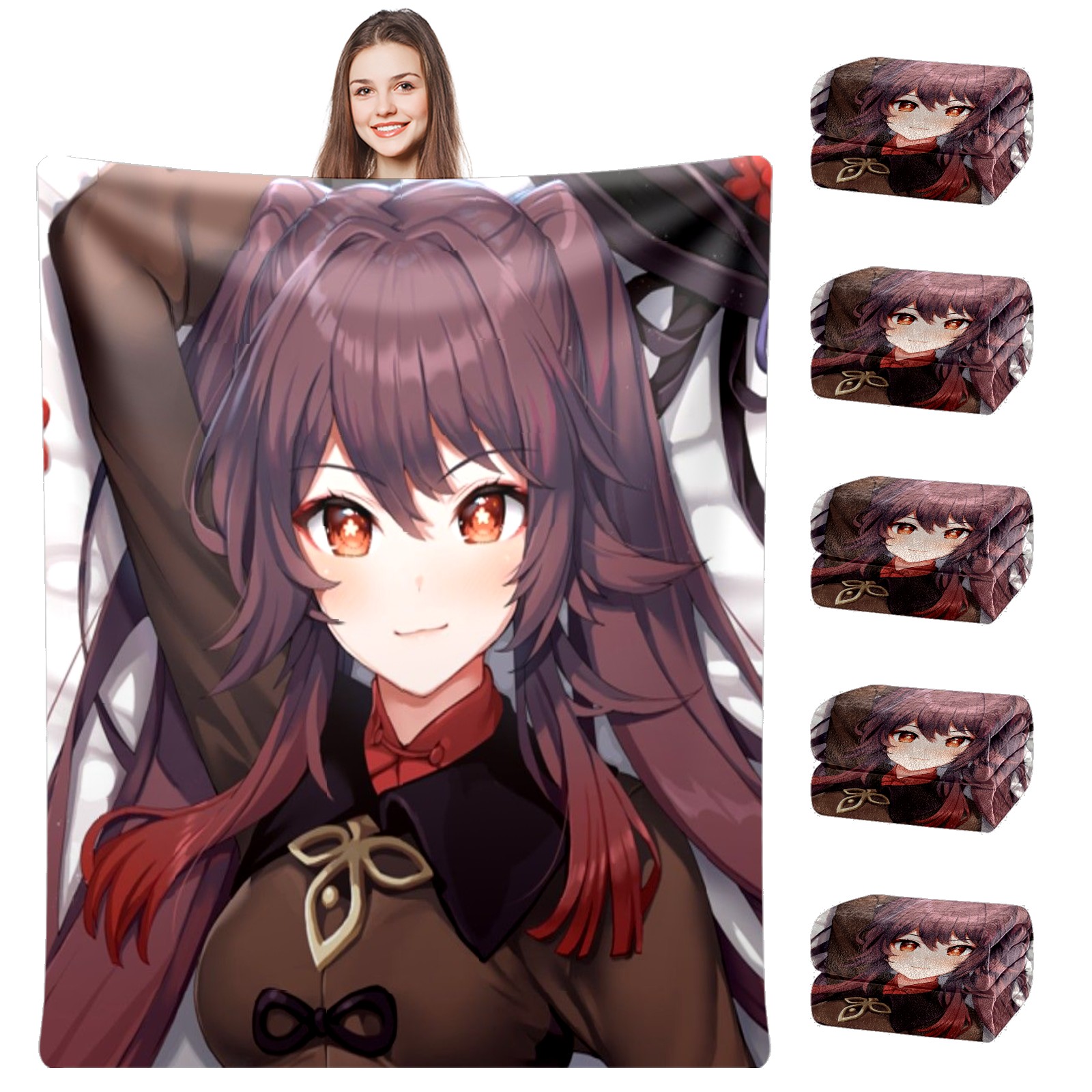 Flannel Blanket, Ultra-Soft Comfortable Home Decor Rug, The Perfect Comfort Gift for Both Men Women, Suitable for Beds, Sofas, Loungewear, and Travel 30x39in(原神 胡桃 021)