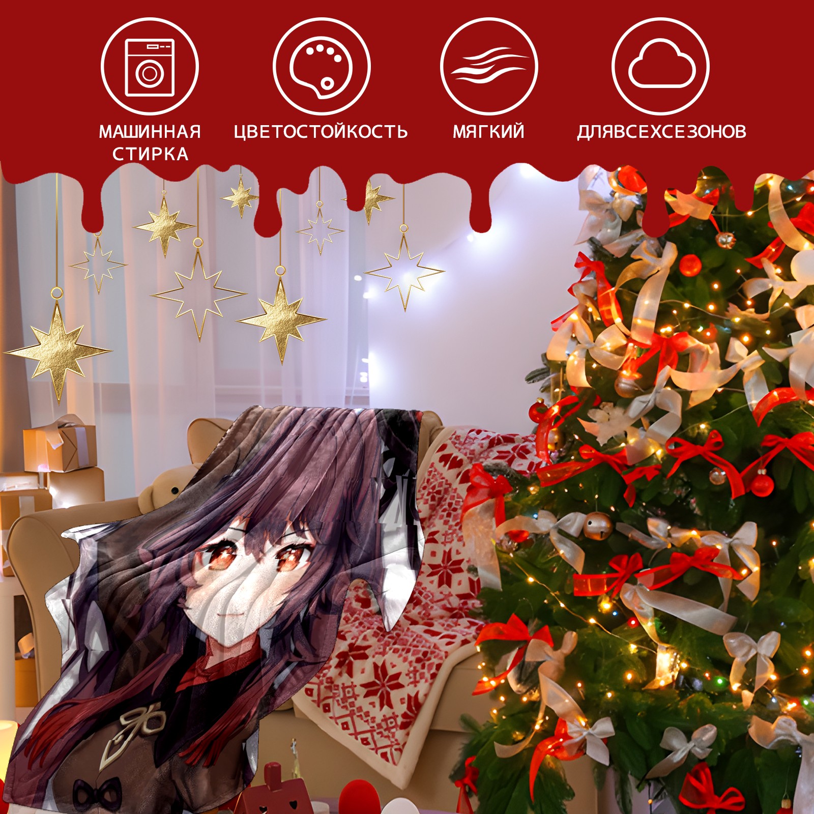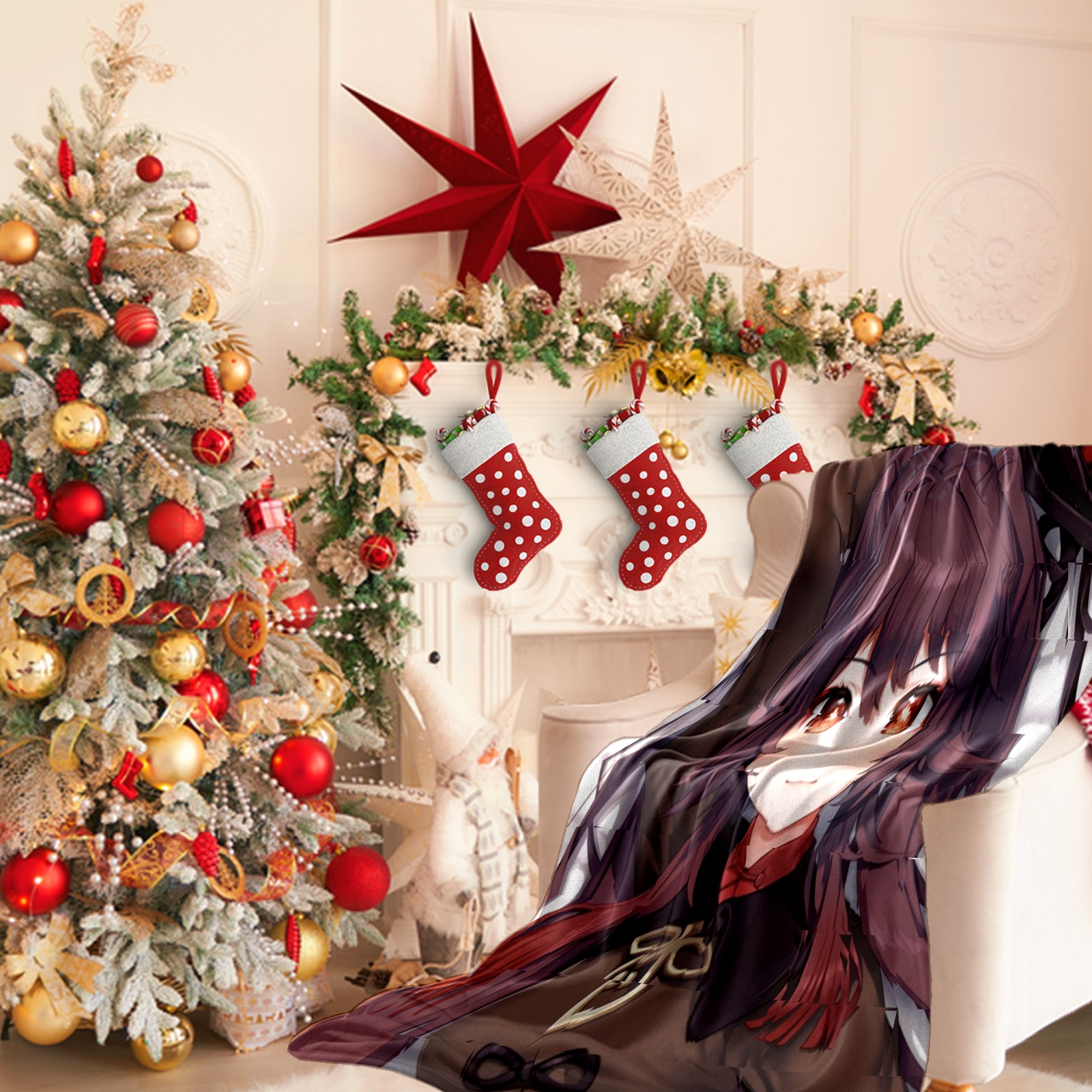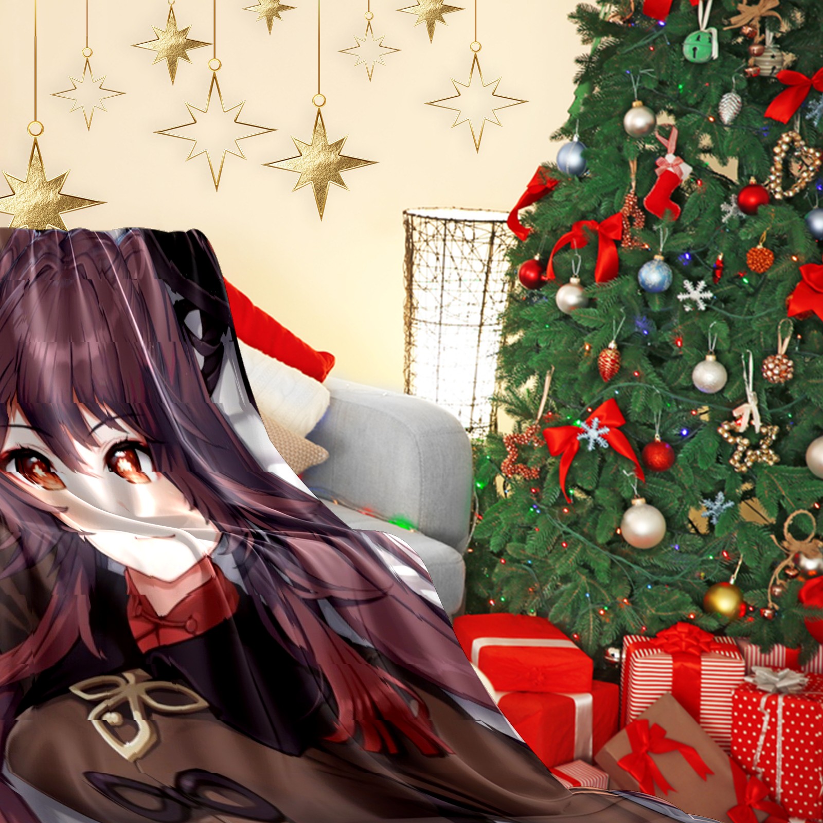 Flannel Blanket, Ultra-Soft Comfortable Home Decor Rug, The Perfect Comfort Gift for Both Men Women, Suitable for Beds, Sofas, Loungewear, and Travel 30x39in(原神 胡桃 021)
