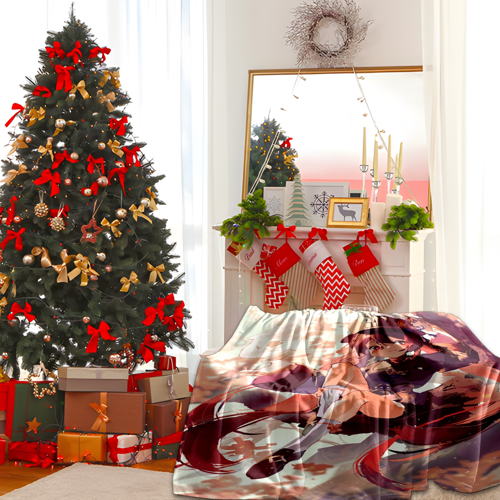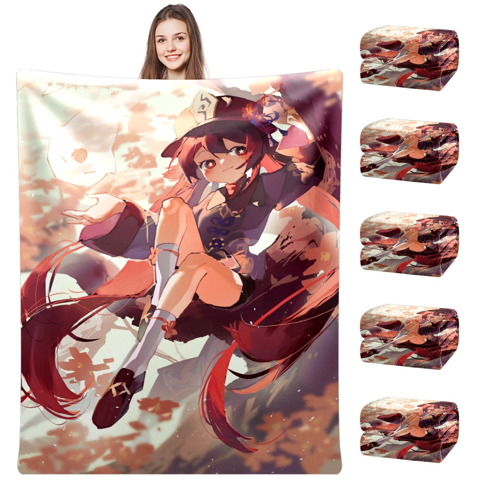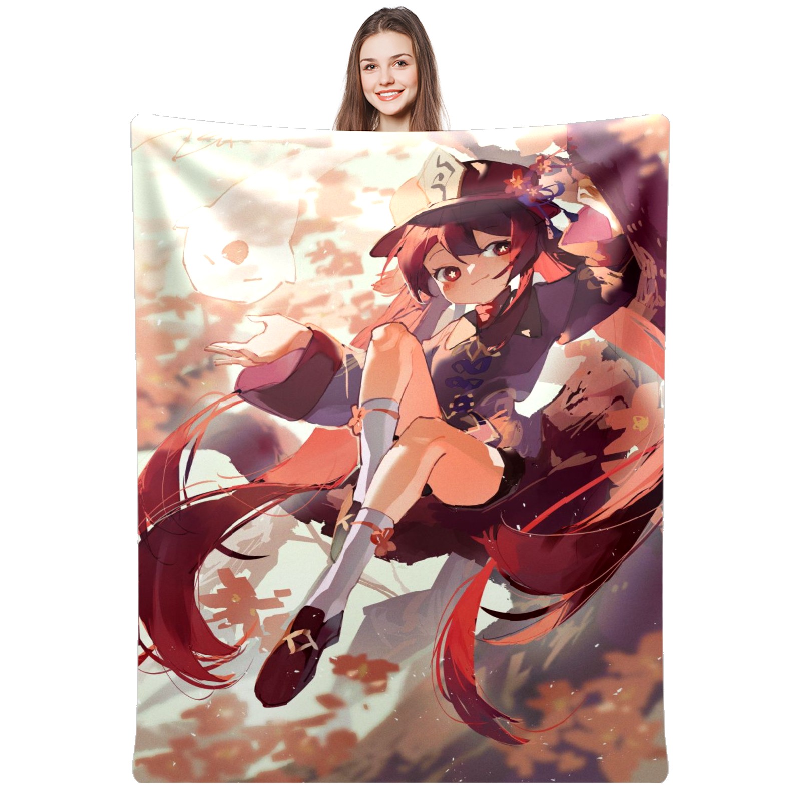 Flannel Blanket, Ultra-Soft Comfortable Home Decor Rug, The Perfect Comfort Gift for Both Men Women, Suitable for Beds, Sofas, Loungewear, and Travel 30x39in(原神 胡桃 023)