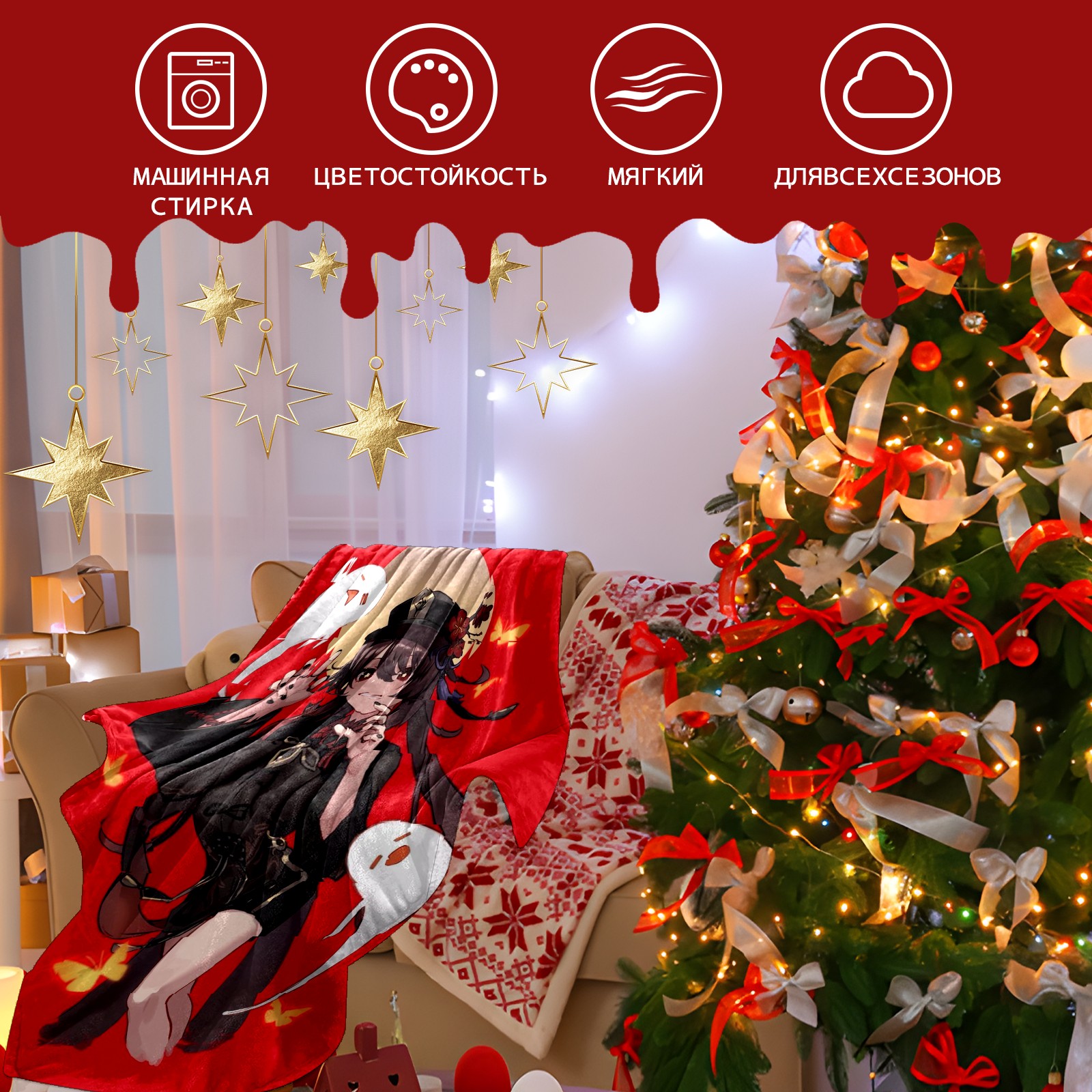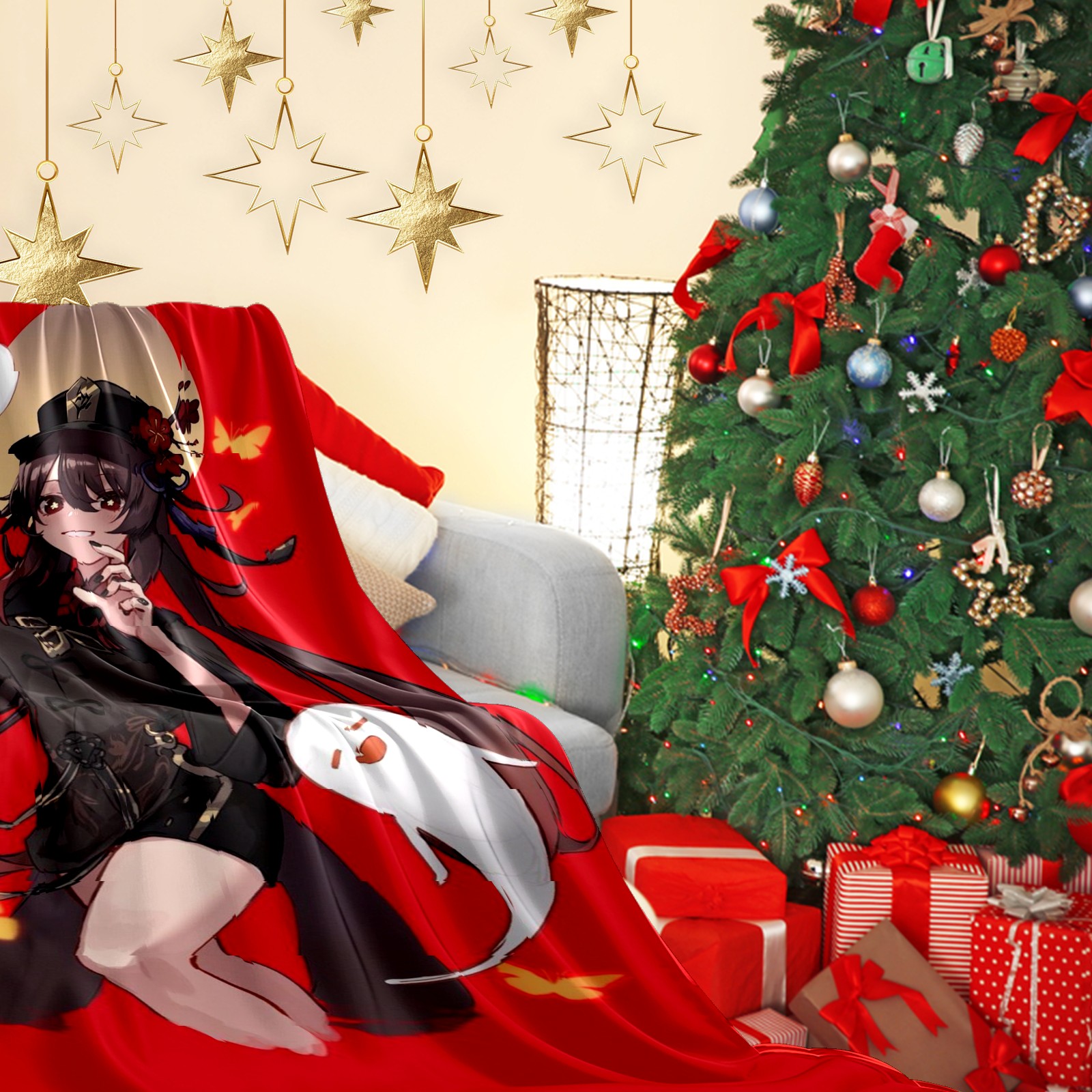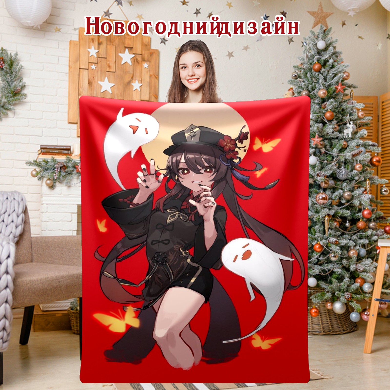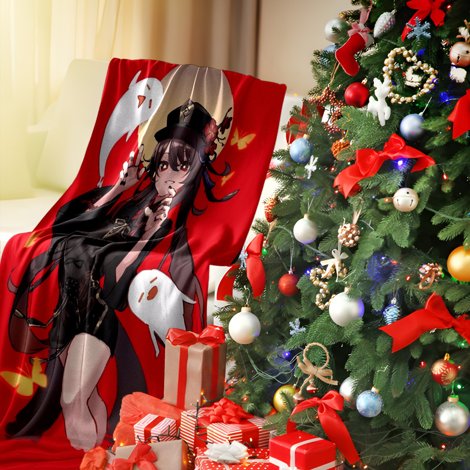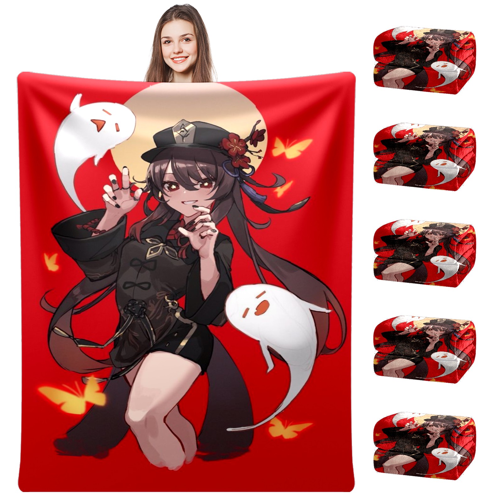 Flannel Blanket, Ultra-Soft Comfortable Home Decor Rug, The Perfect Comfort Gift for Both Men Women, Suitable for Beds, Sofas, Loungewear, and Travel 30x39in(原神 胡桃 039)