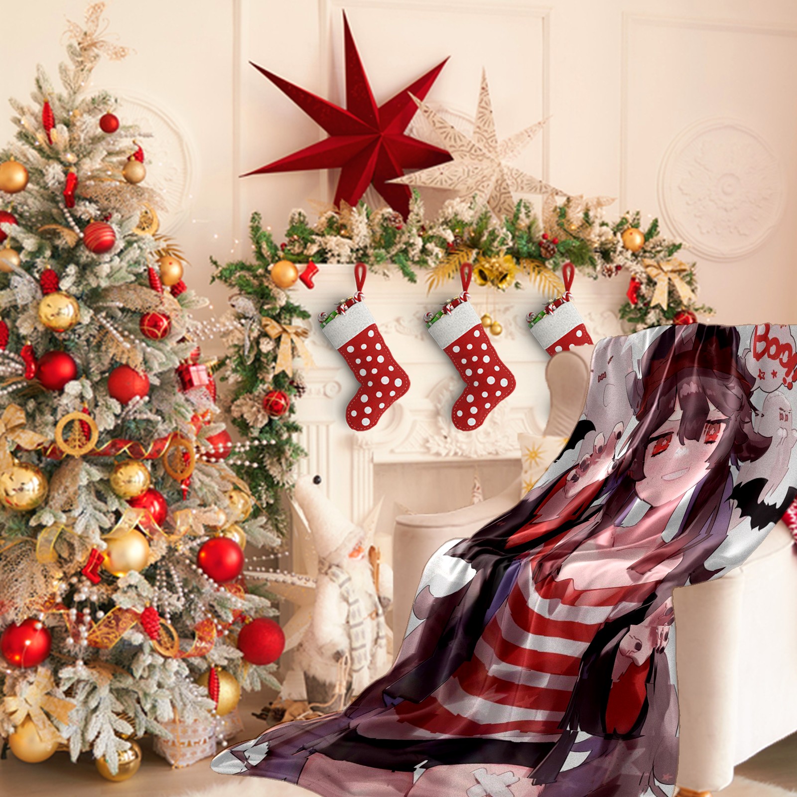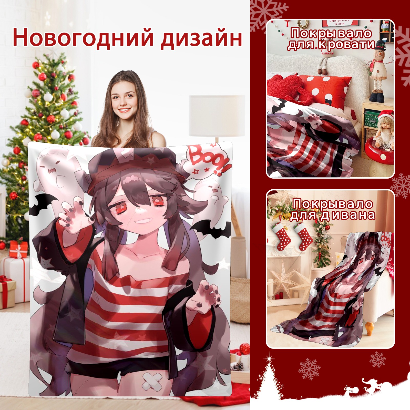 Flannel Blanket, Ultra-Soft Comfortable Home Decor Rug, The Perfect Comfort Gift for Both Men Women, Suitable for Beds, Sofas, Loungewear, and Travel 30x39in(原神 胡桃 040)