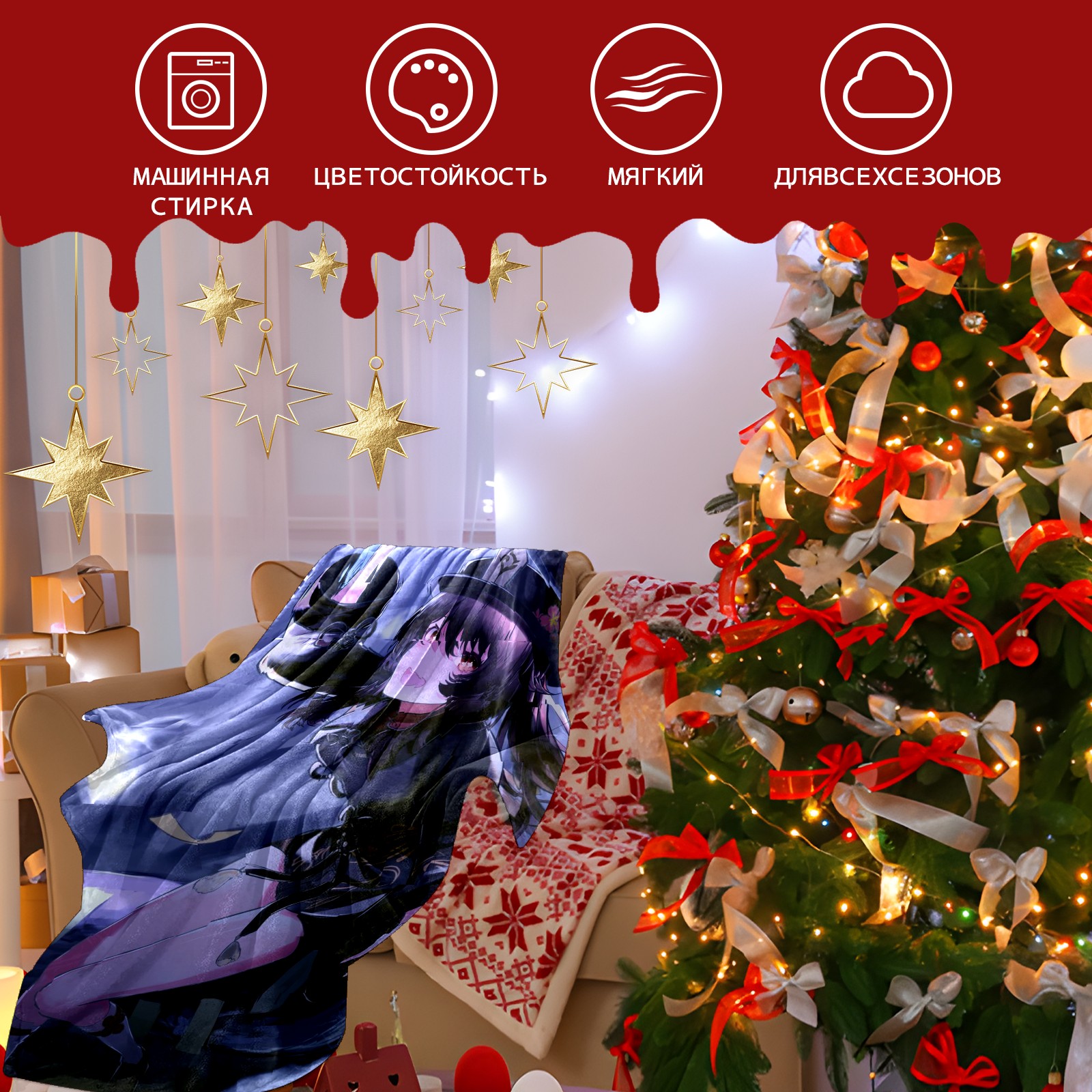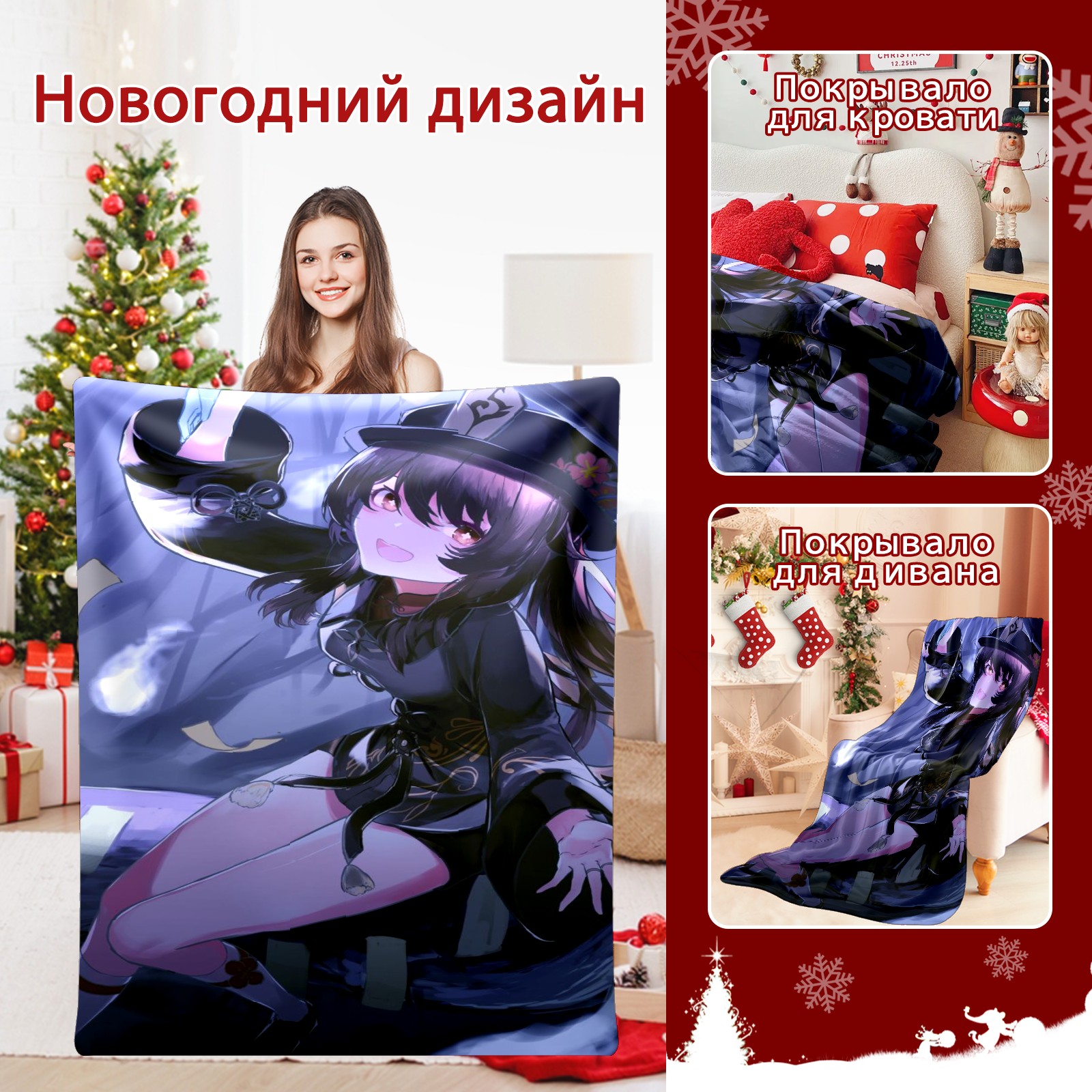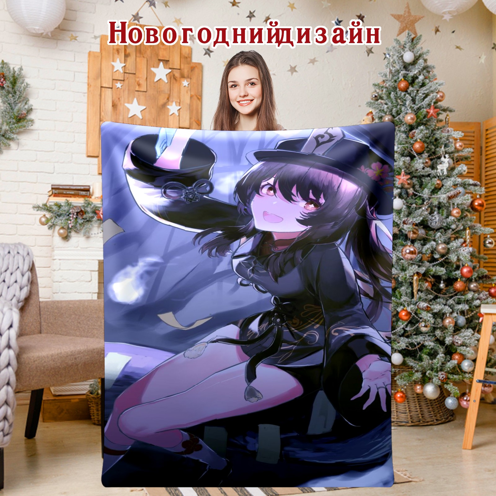 Flannel Blanket, Ultra-Soft Comfortable Home Decor Rug, The Perfect Comfort Gift for Both Men Women, Suitable for Beds, Sofas, Loungewear, and Travel 30x39in(原神 胡桃 044)