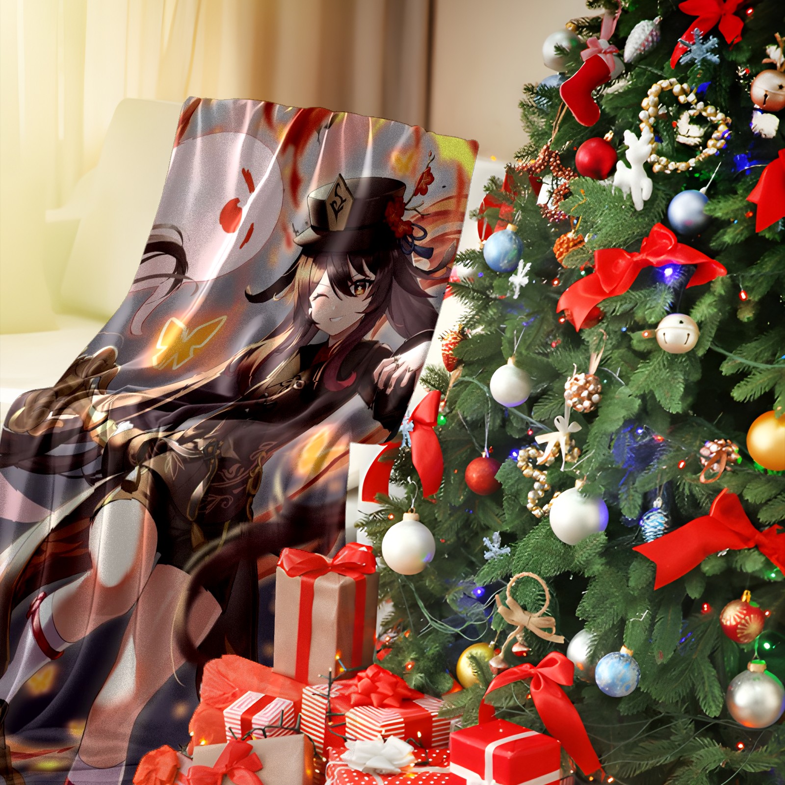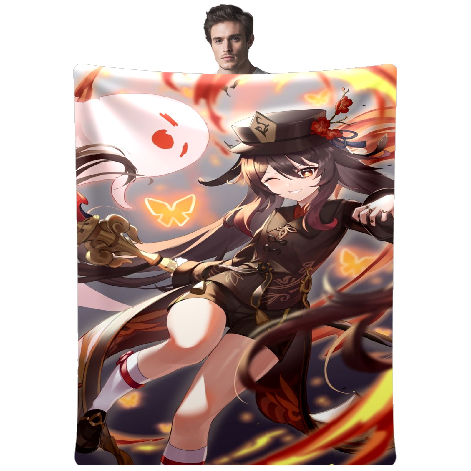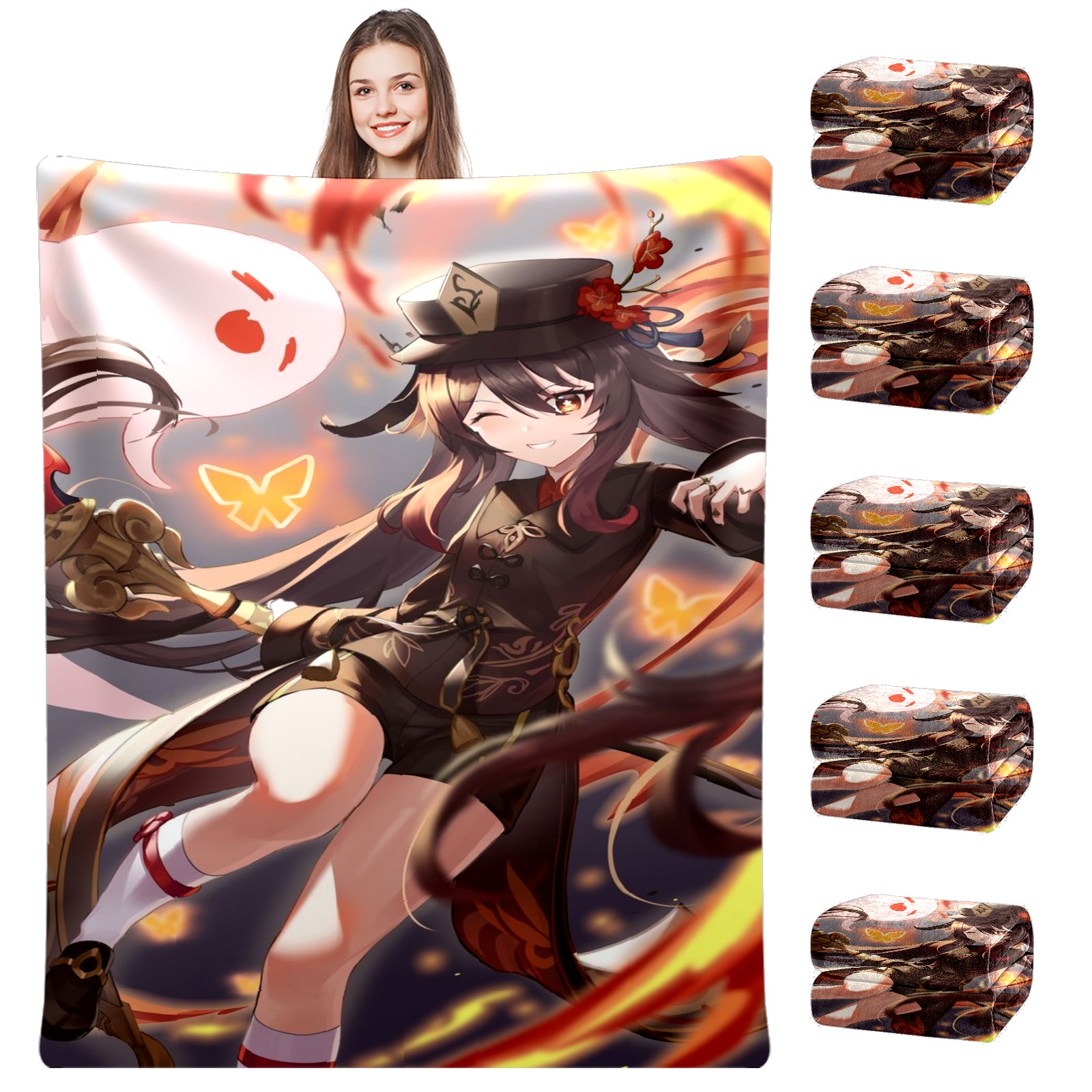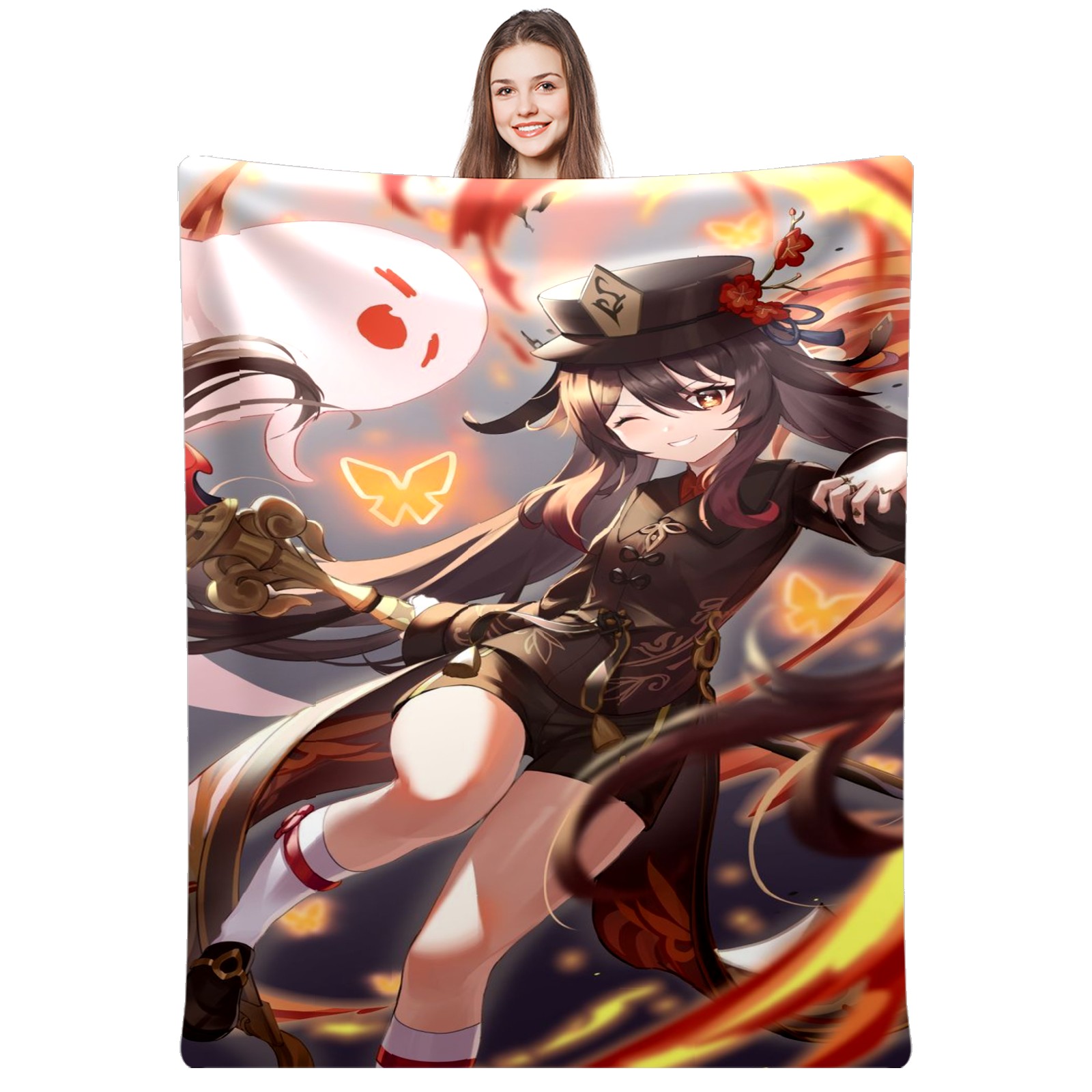 Flannel Blanket, Ultra-Soft Comfortable Home Decor Rug, The Perfect Comfort Gift for Both Men Women, Suitable for Beds, Sofas, Loungewear, and Travel 30x39in(原神 胡桃 055)