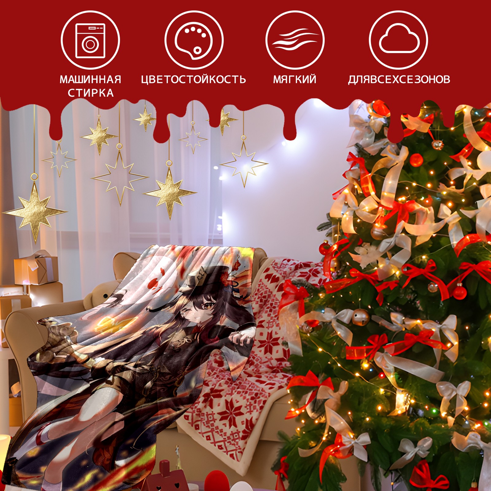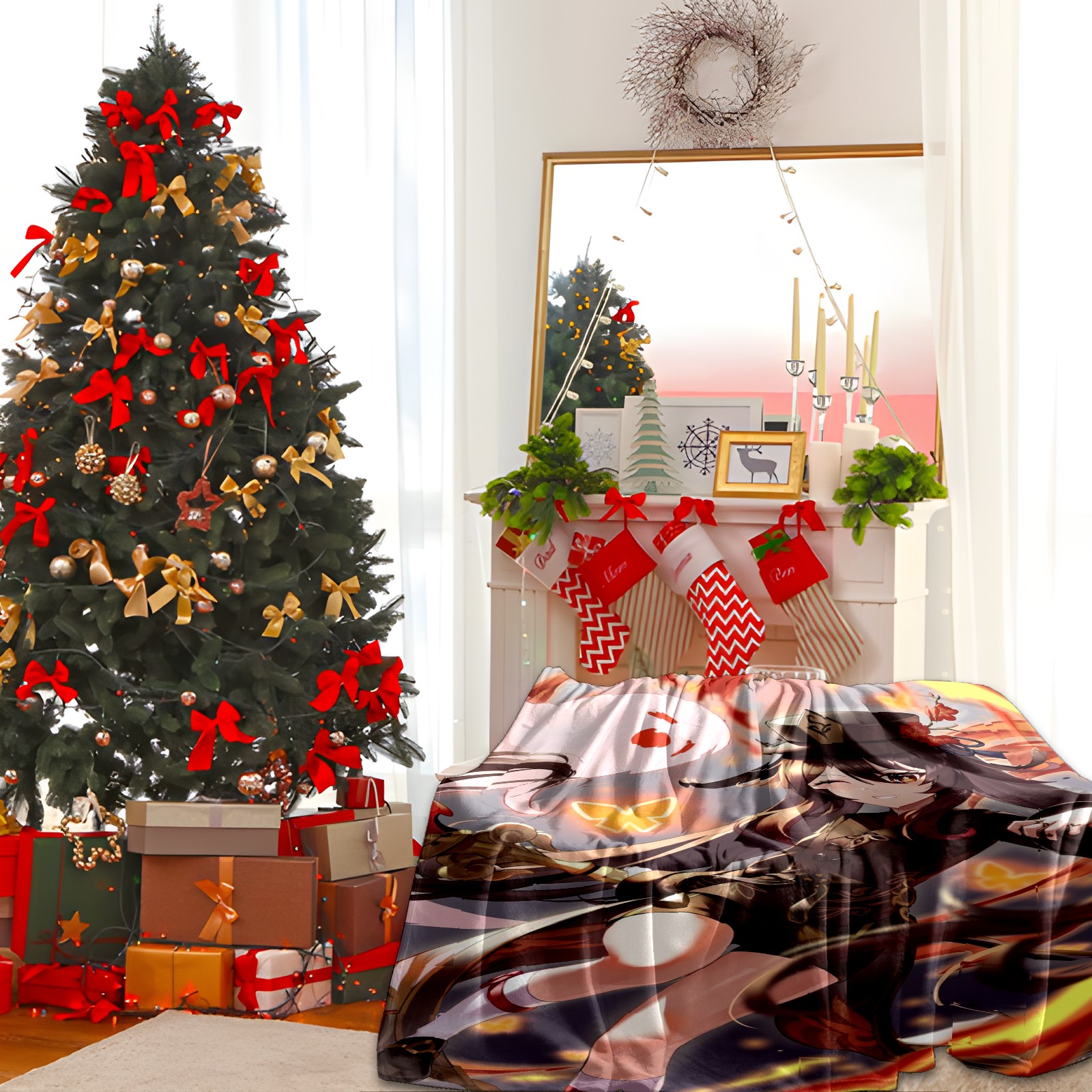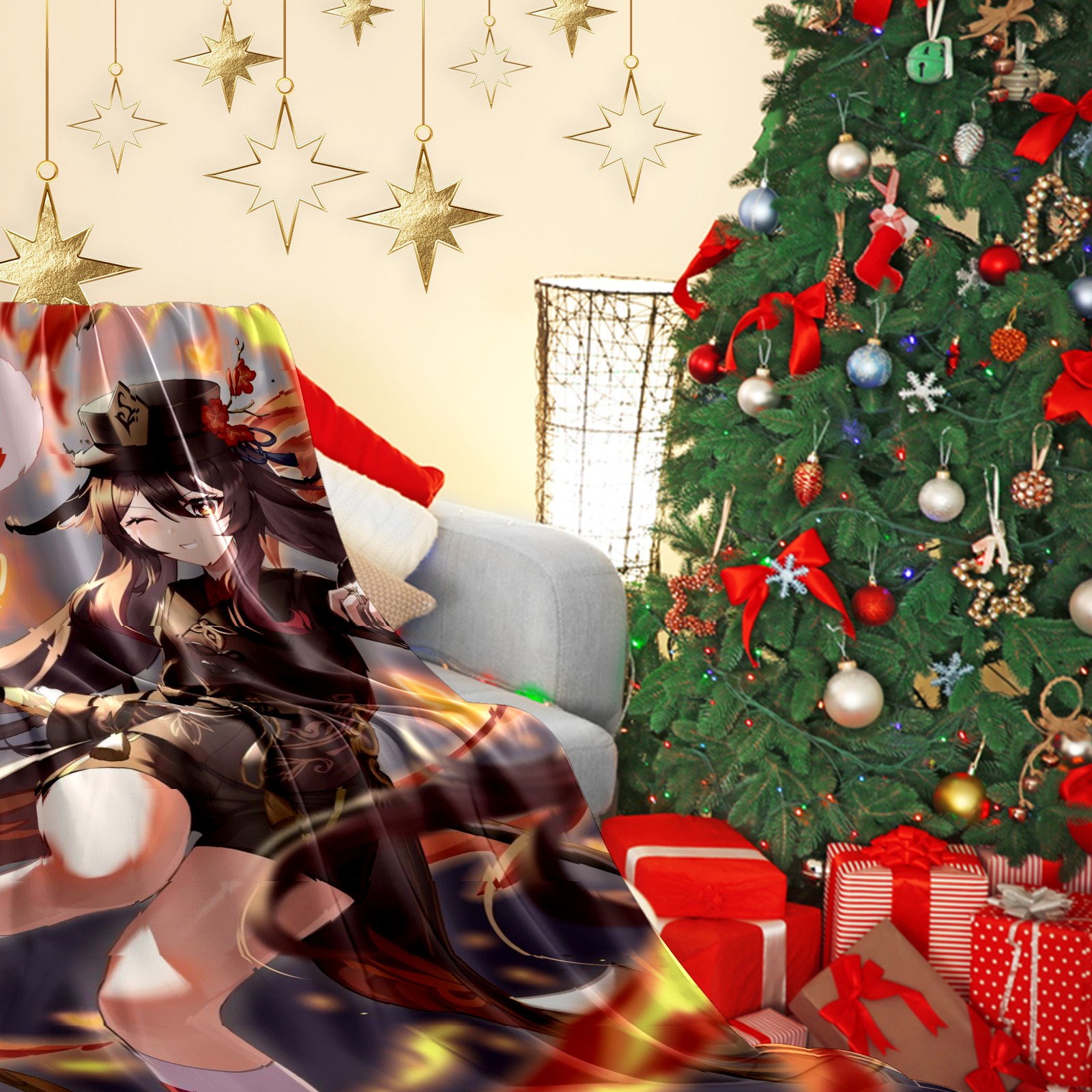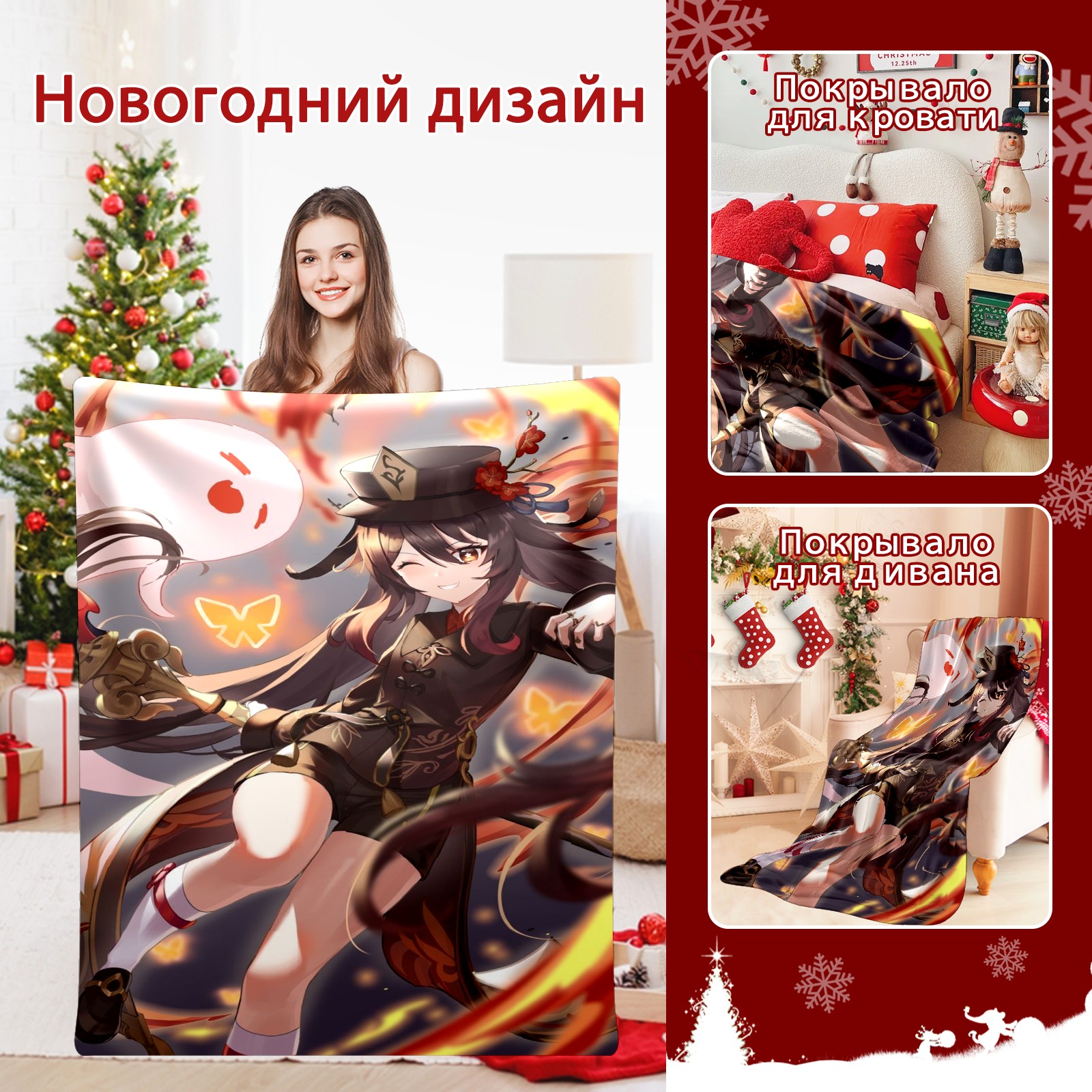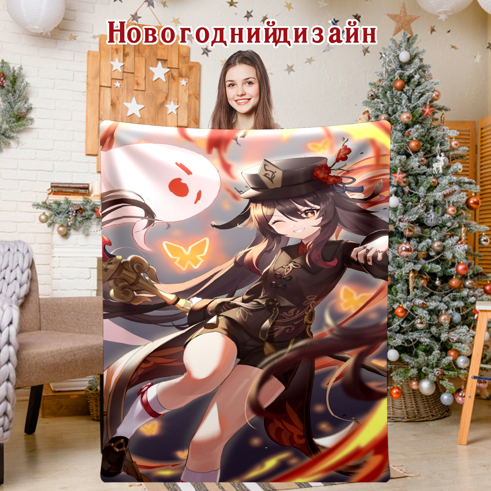 Flannel Blanket, Ultra-Soft Comfortable Home Decor Rug, The Perfect Comfort Gift for Both Men Women, Suitable for Beds, Sofas, Loungewear, and Travel 30x39in(原神 胡桃 055)