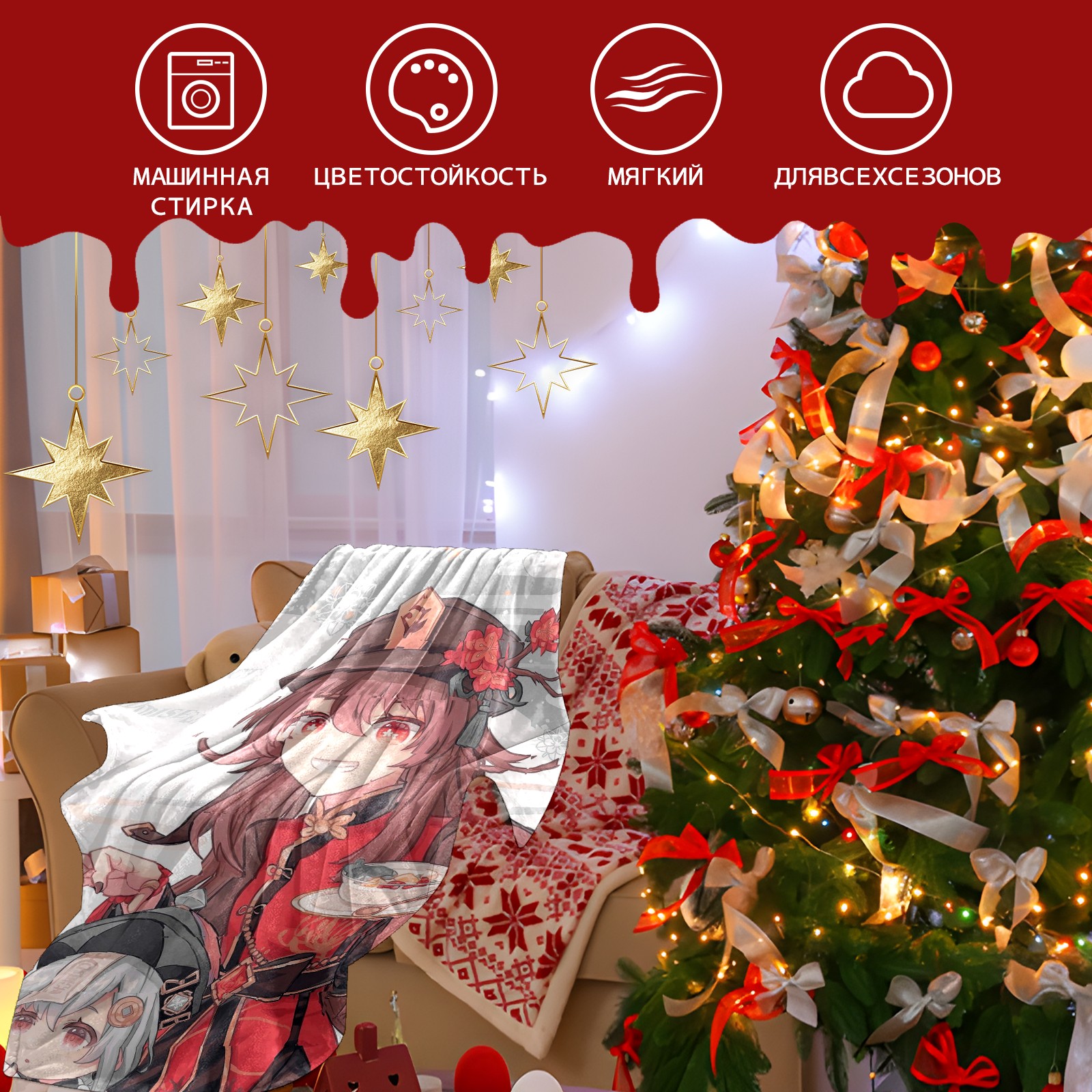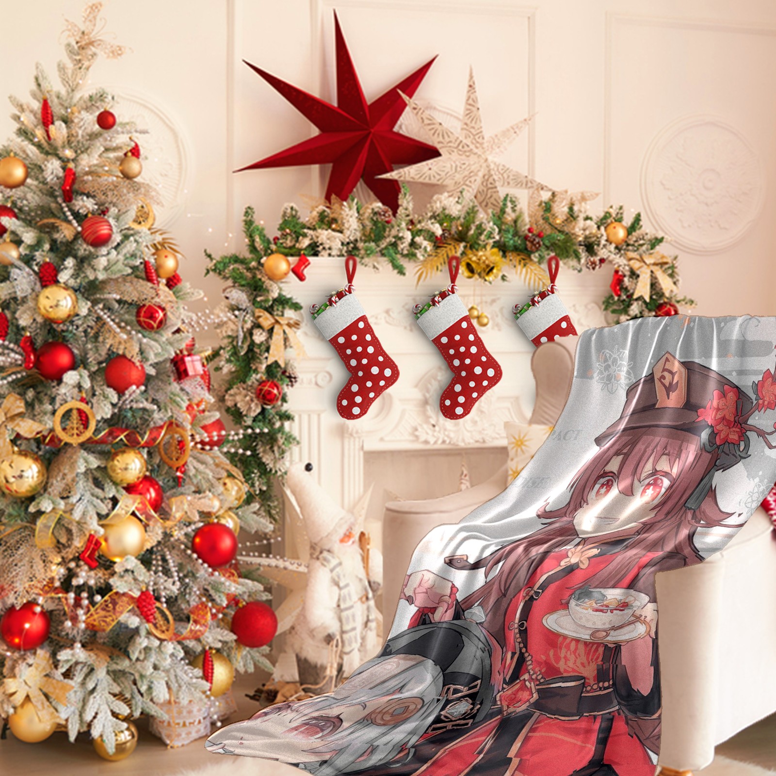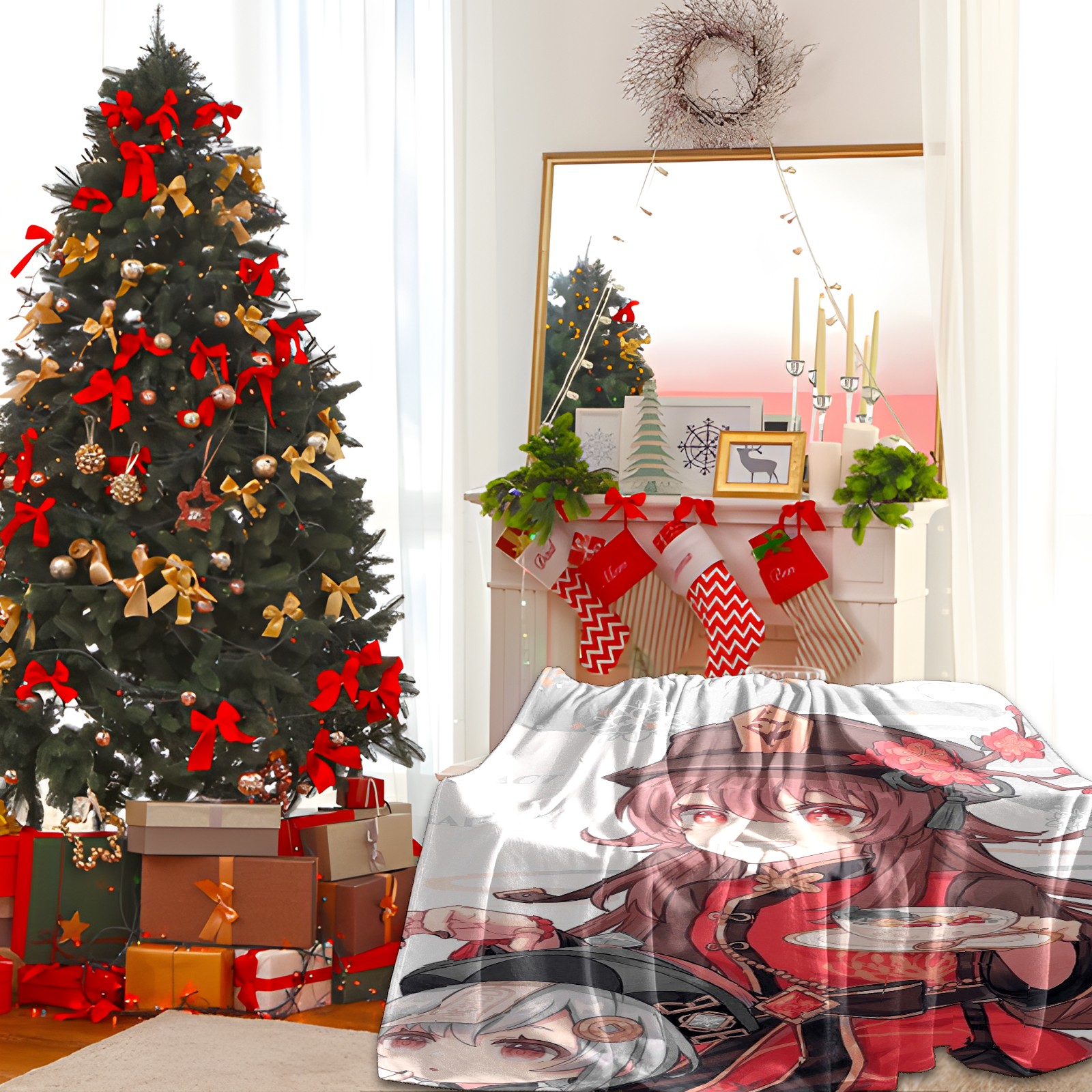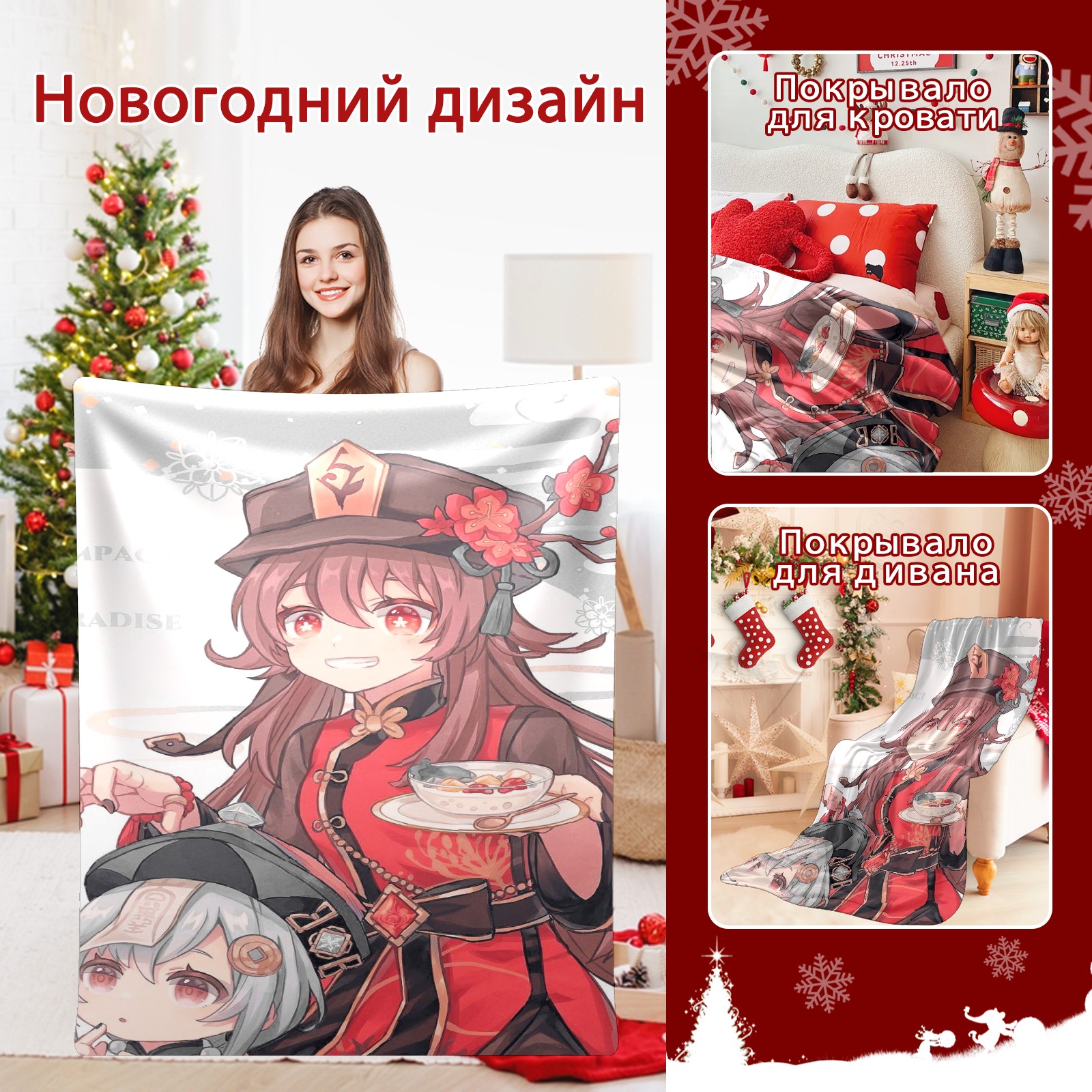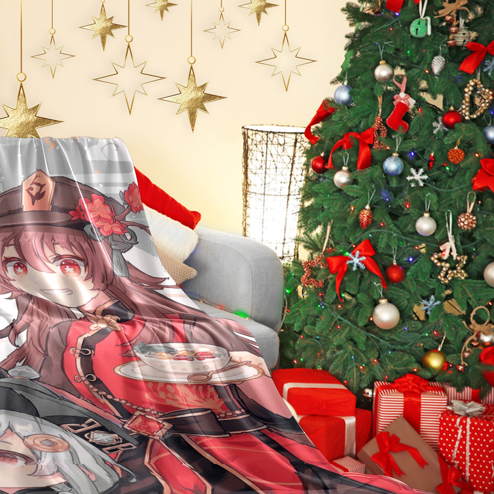 Flannel Blanket, Ultra-Soft Comfortable Home Decor Rug, The Perfect Comfort Gift for Both Men Women, Suitable for Beds, Sofas, Loungewear, and Travel 30x39in(原神 胡桃 058)