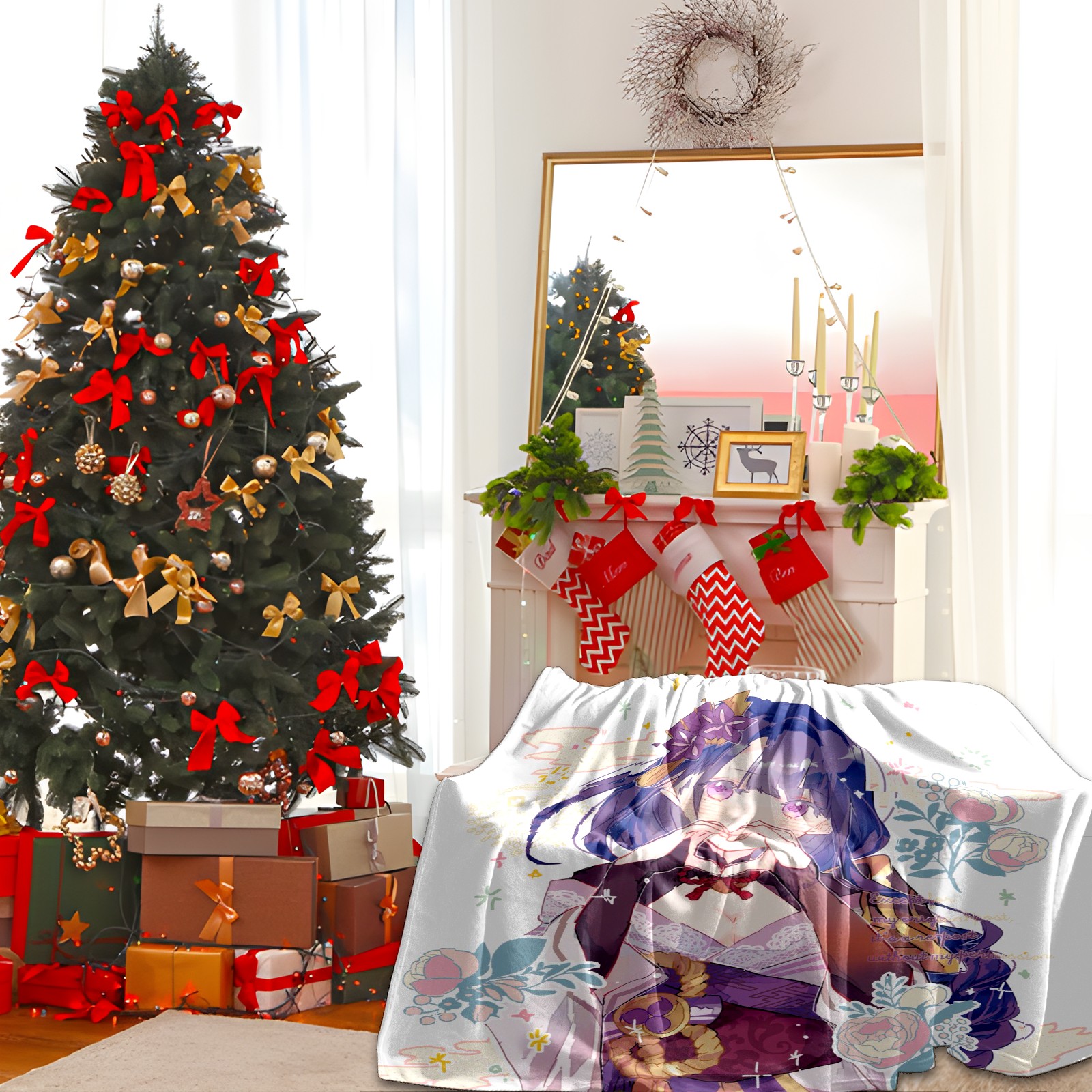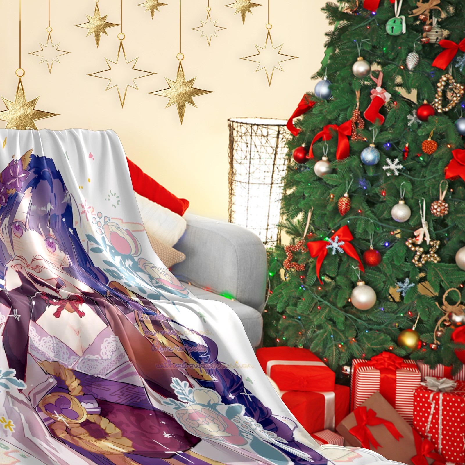Flannel Blanket, Ultra-Soft Comfortable Home Decor Rug, The Perfect Comfort Gift for Both Men Women, Suitable for Beds, Sofas, Loungewear, and Travel 30x39in(原神 雷電将軍 010)