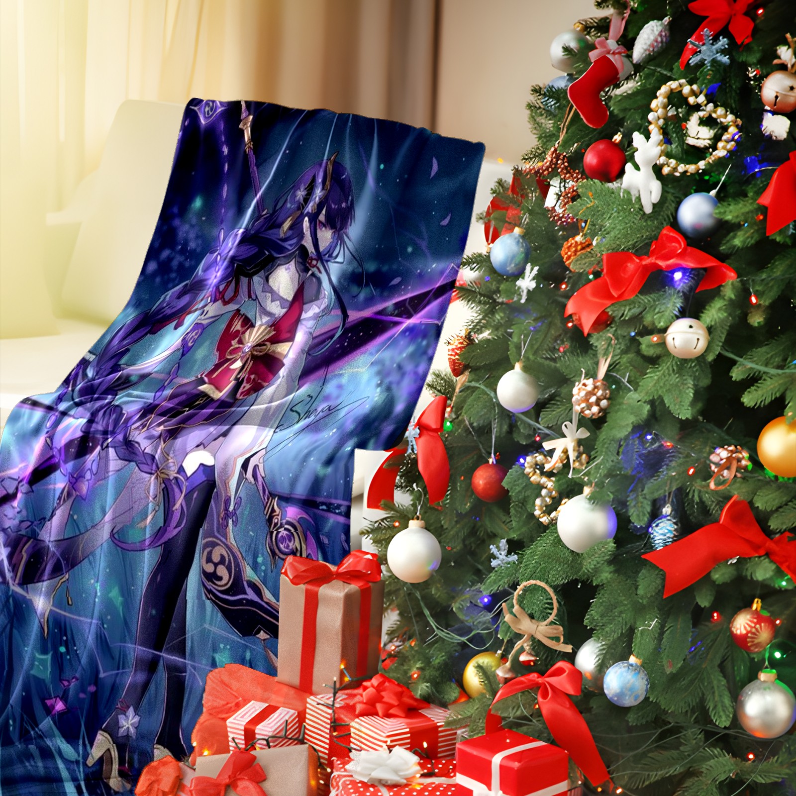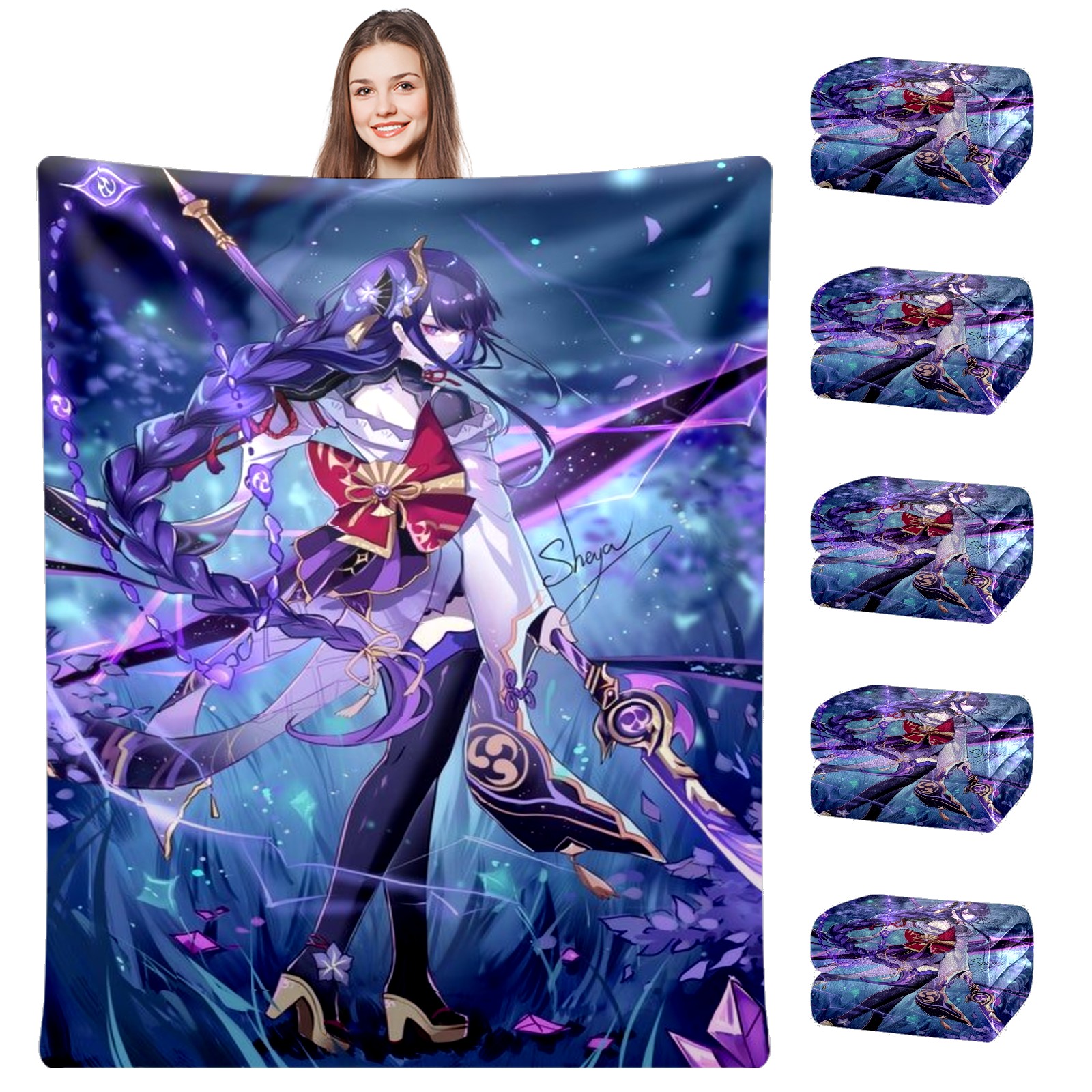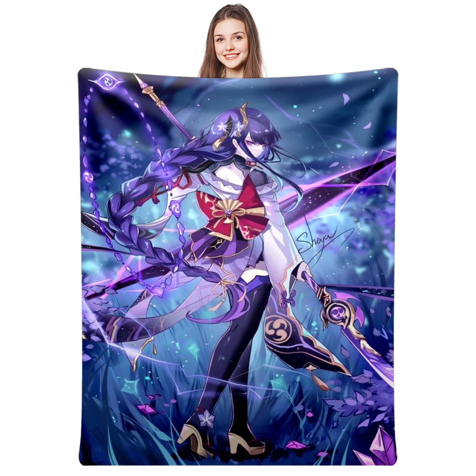 Flannel Blanket, Ultra-Soft Comfortable Home Decor Rug, The Perfect Comfort Gift for Both Men Women, Suitable for Beds, Sofas, Loungewear, and Travel 30x39in(原神 雷電将軍 018)