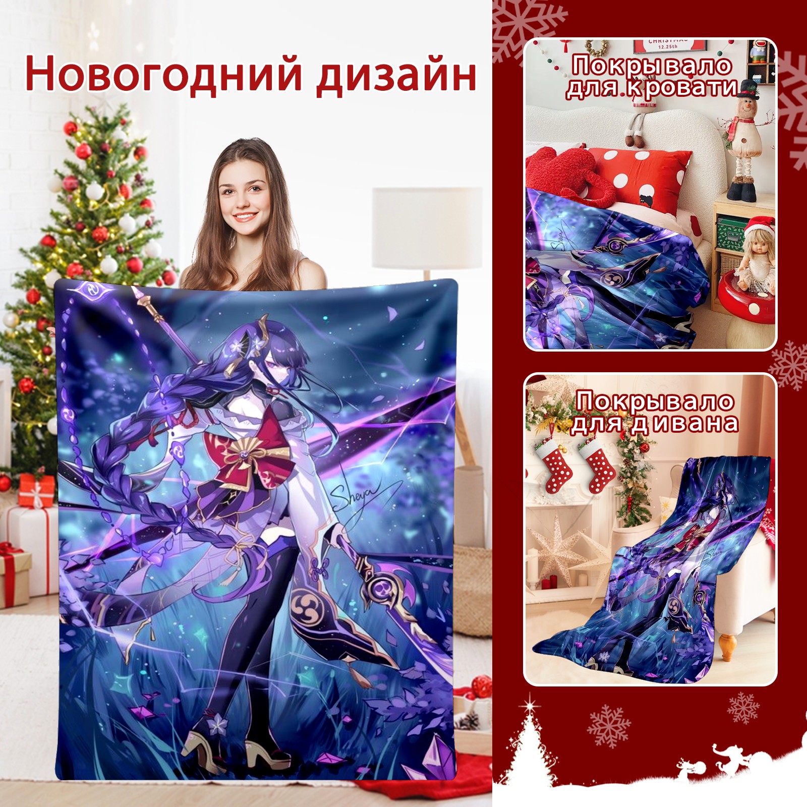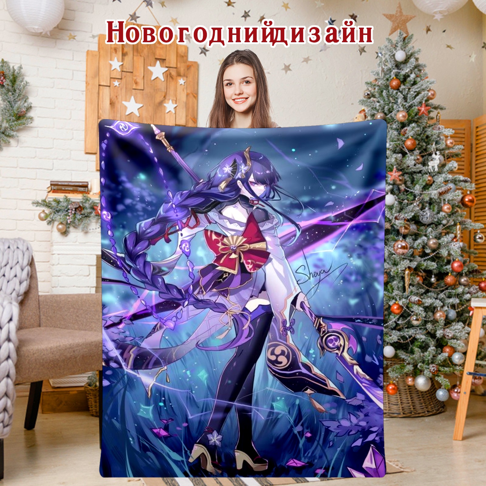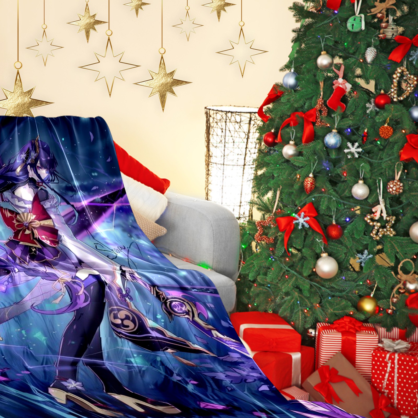 Flannel Blanket, Ultra-Soft Comfortable Home Decor Rug, The Perfect Comfort Gift for Both Men Women, Suitable for Beds, Sofas, Loungewear, and Travel 30x39in(原神 雷電将軍 018)