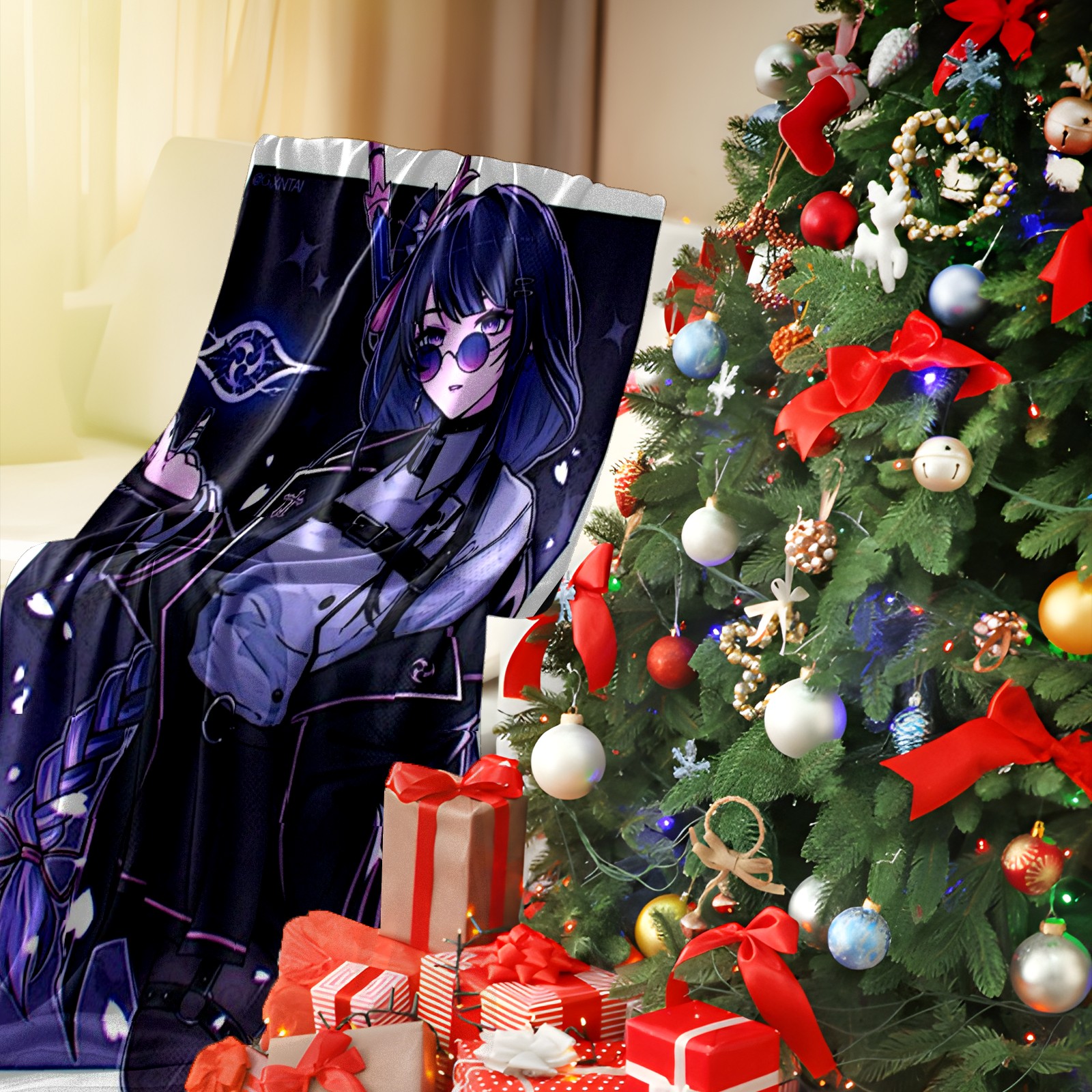 Flannel Blanket, Ultra-Soft Comfortable Home Decor Rug, The Perfect Comfort Gift for Both Men Women, Suitable for Beds, Sofas, Loungewear, and Travel 30x39in(原神 雷電将軍 020)