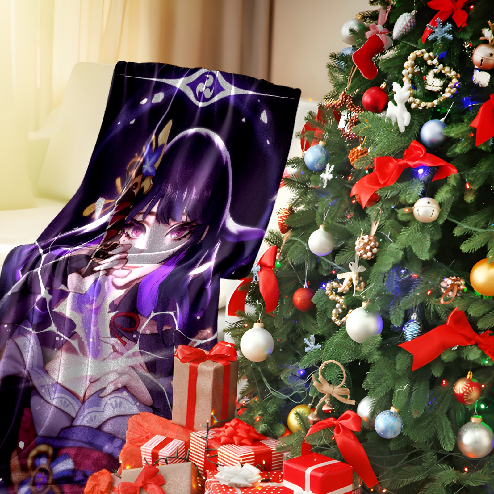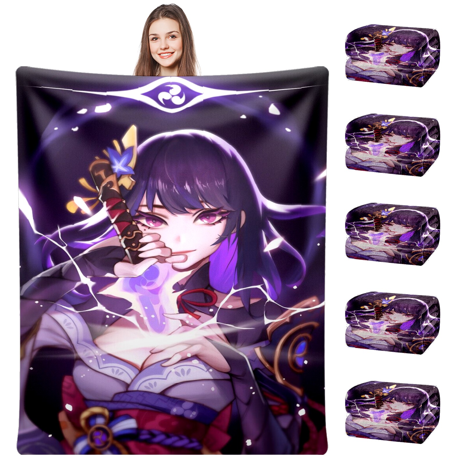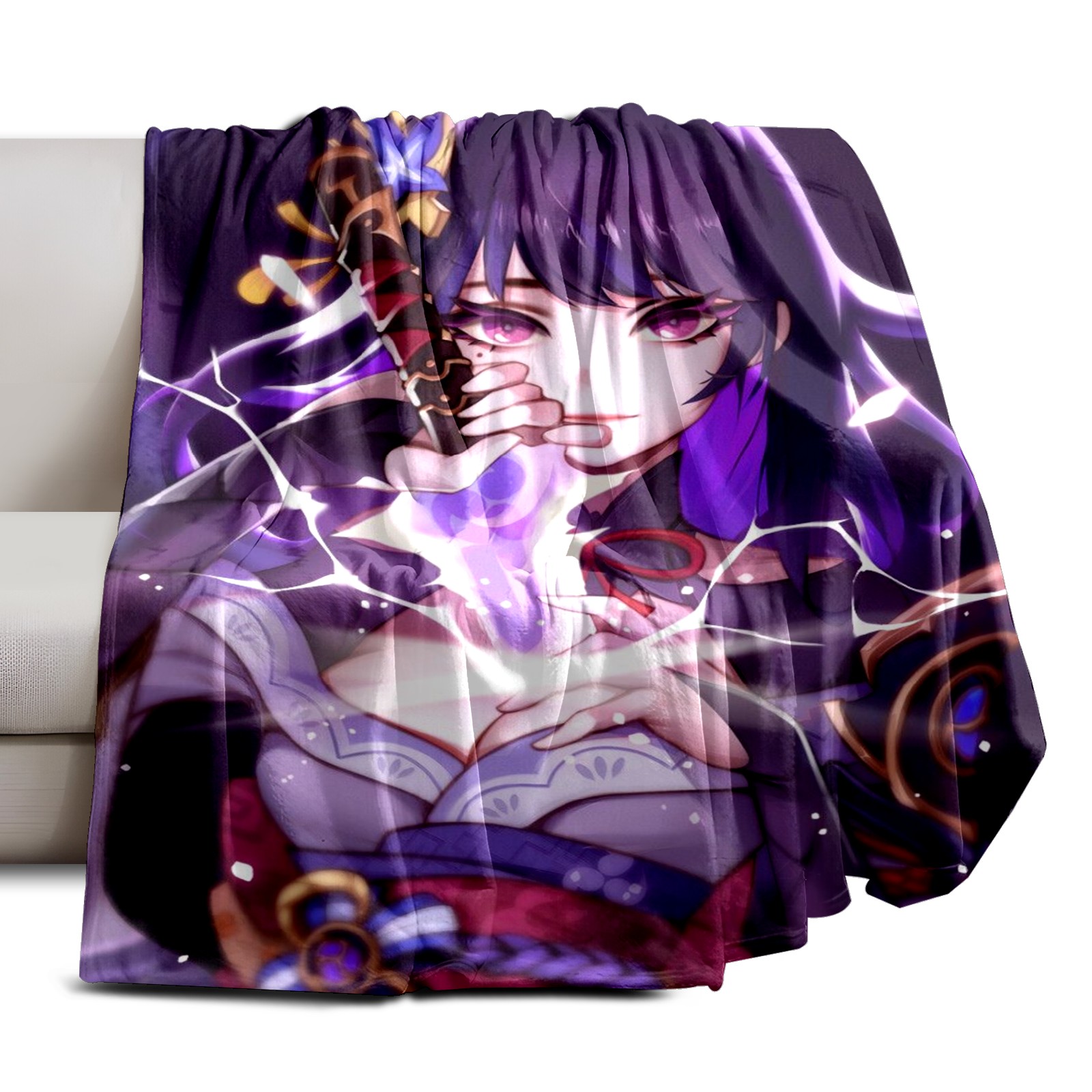Flannel Blanket, Ultra-Soft Comfortable Home Decor Rug, The Perfect Comfort Gift for Both Men Women, Suitable for Beds, Sofas, Loungewear, and Travel 30x39in(原神 雷電将軍 024)
