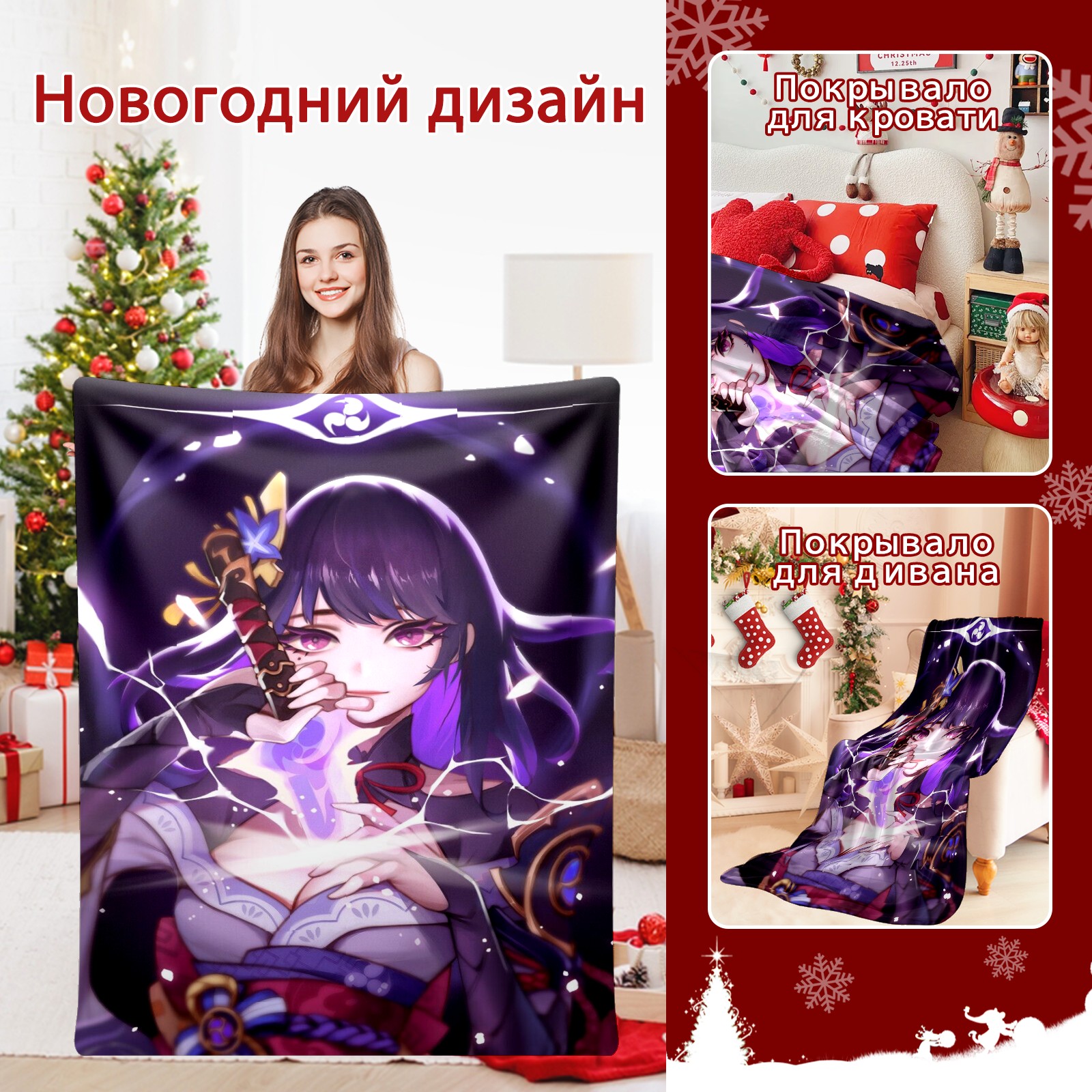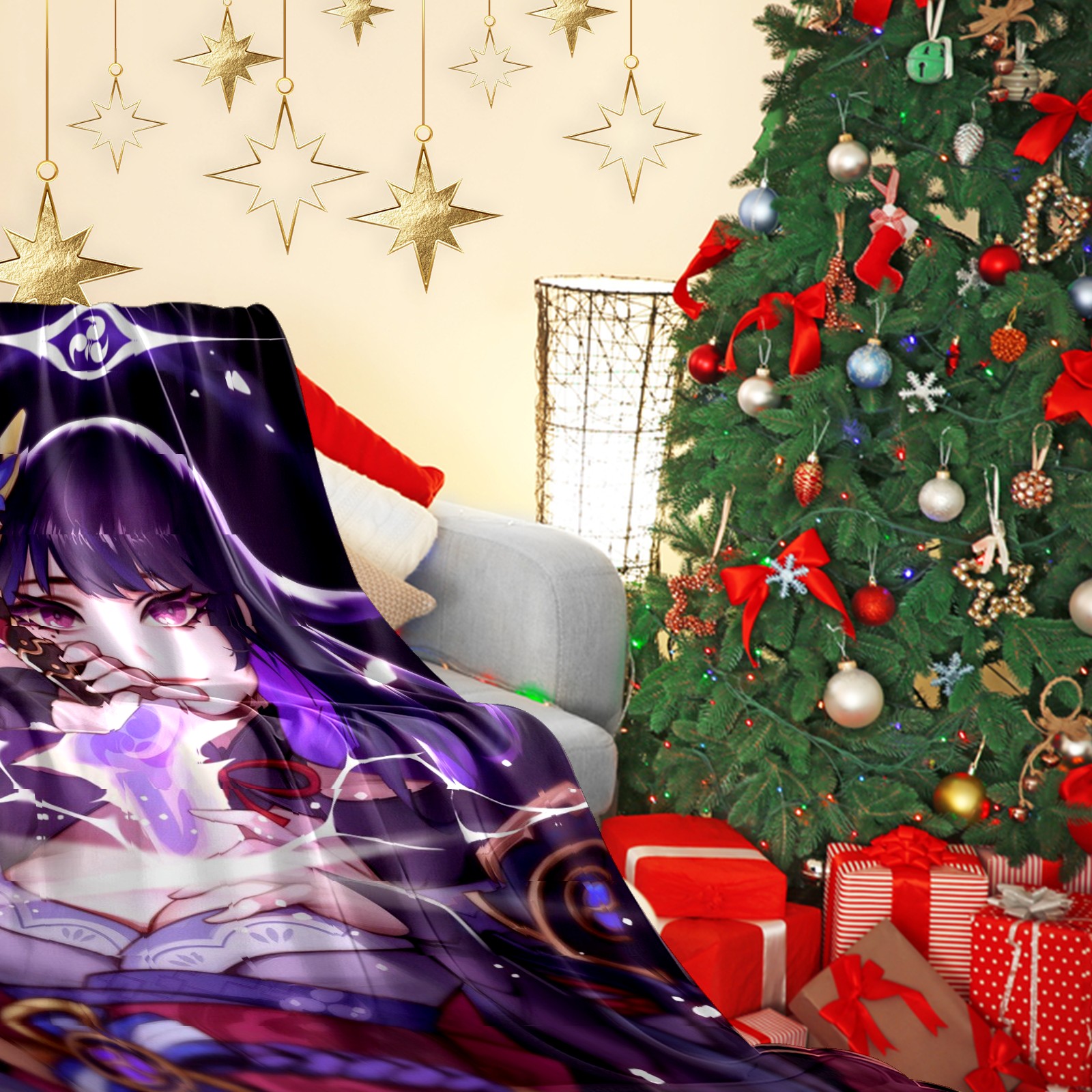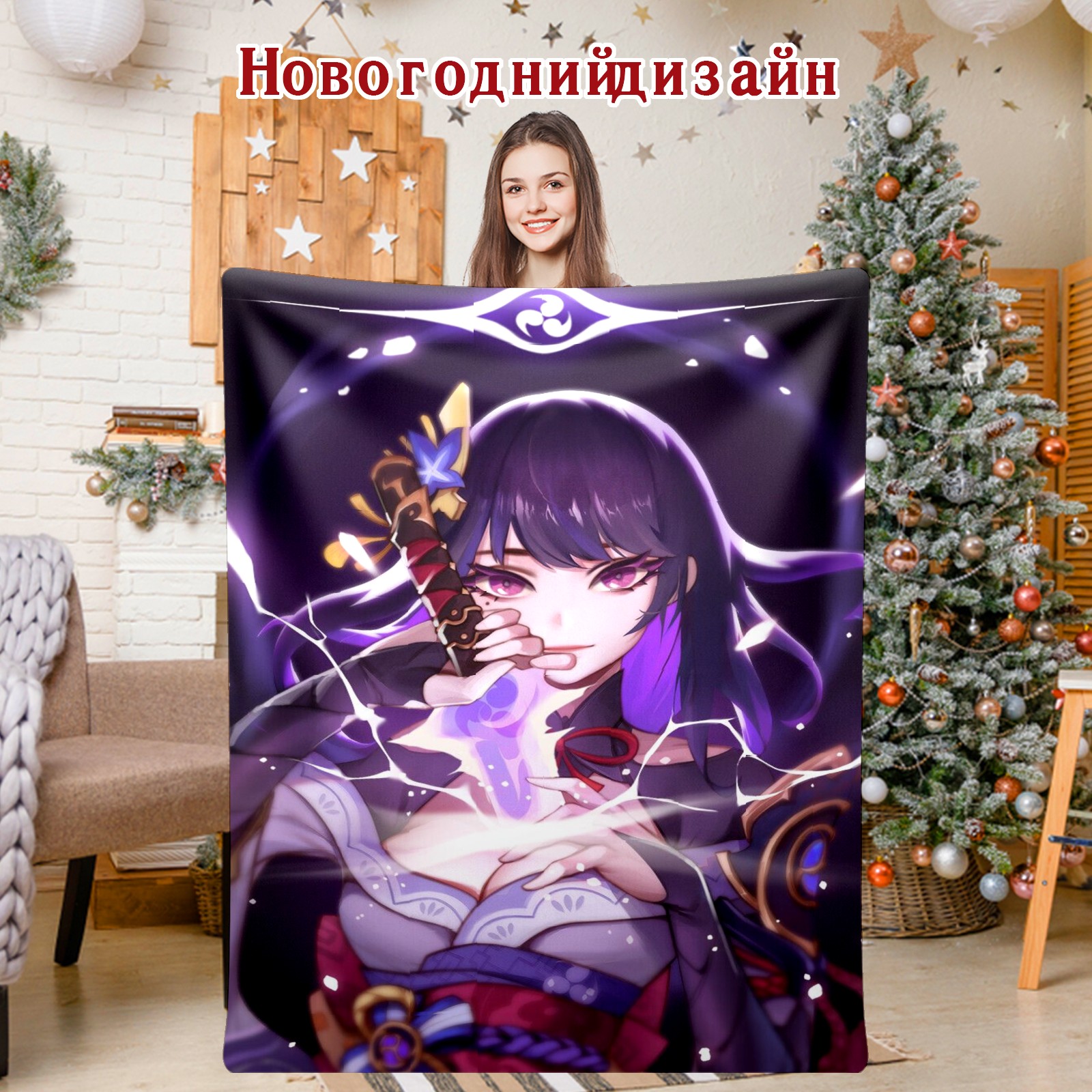 Flannel Blanket, Ultra-Soft Comfortable Home Decor Rug, The Perfect Comfort Gift for Both Men Women, Suitable for Beds, Sofas, Loungewear, and Travel 30x39in(原神 雷電将軍 024)