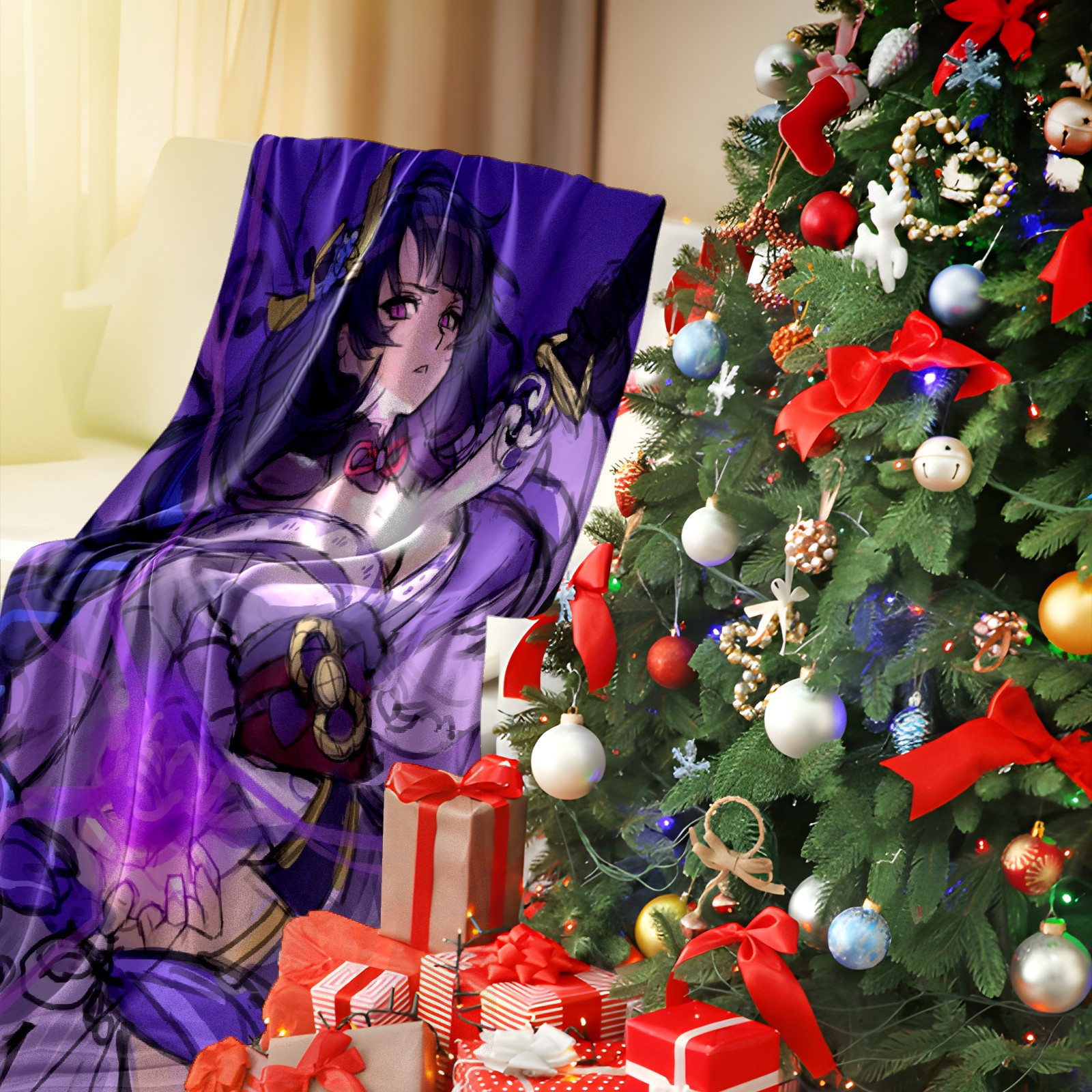 Flannel Blanket, Ultra-Soft Comfortable Home Decor Rug, The Perfect Comfort Gift for Both Men Women, Suitable for Beds, Sofas, Loungewear, and Travel 30x39in(原神 雷電将軍 028)