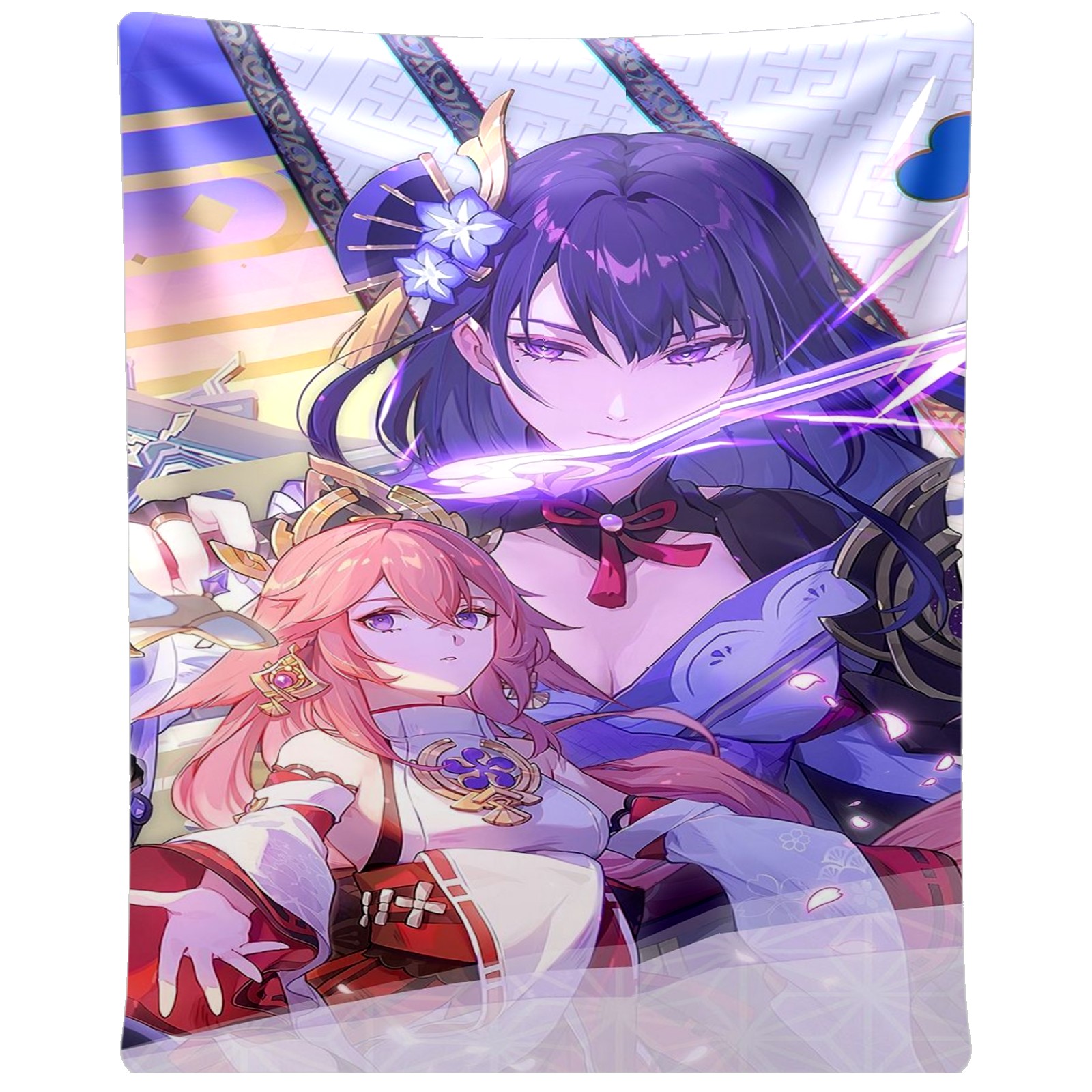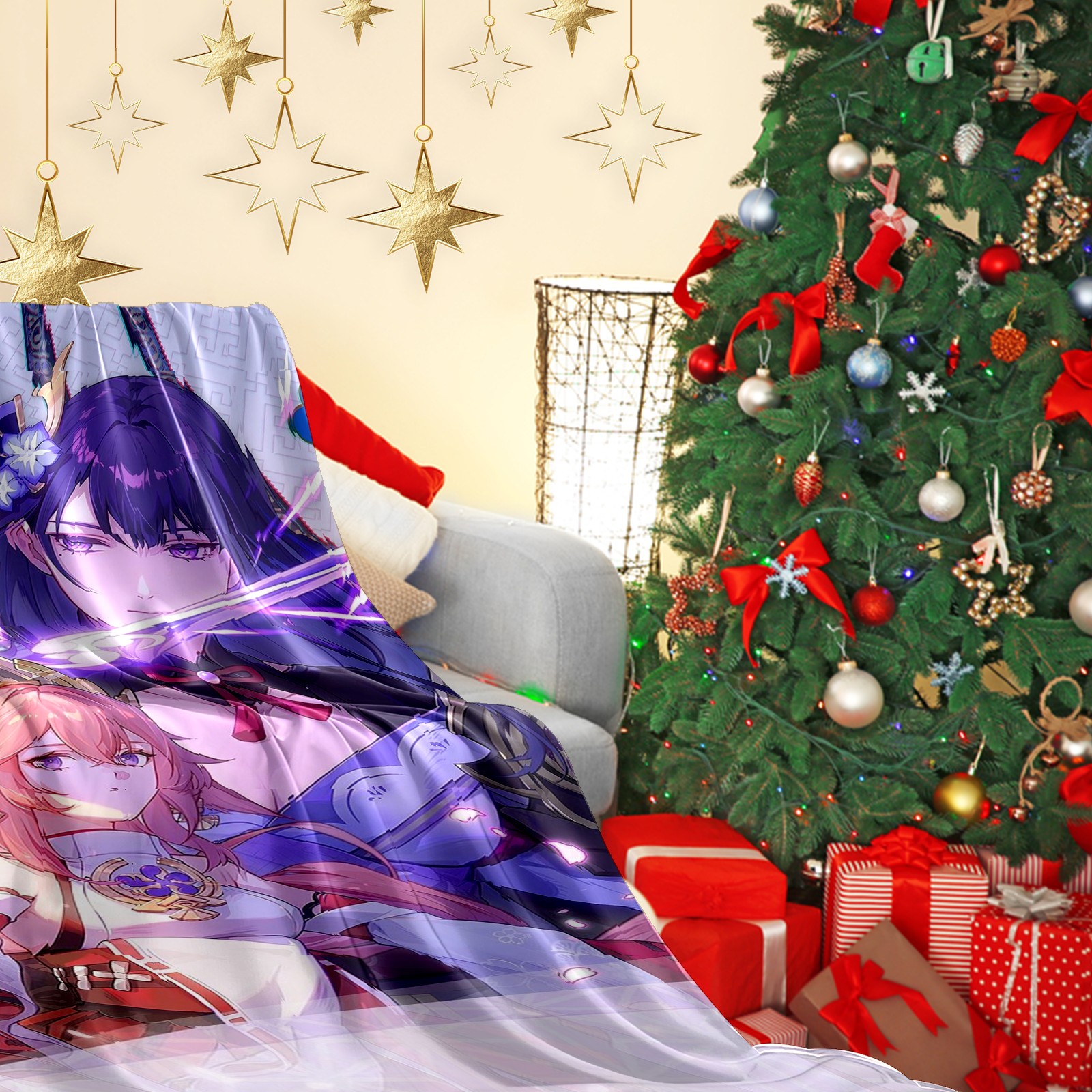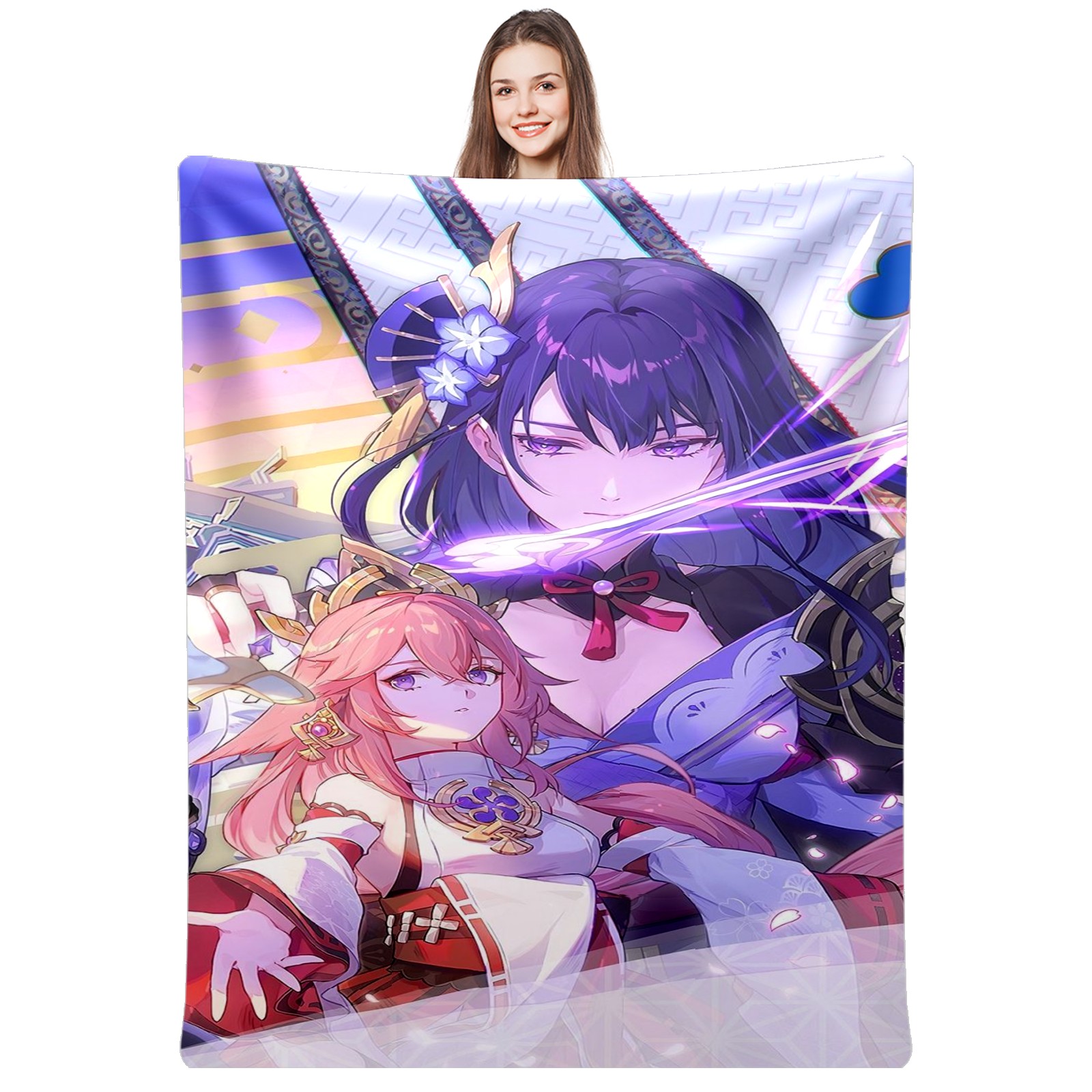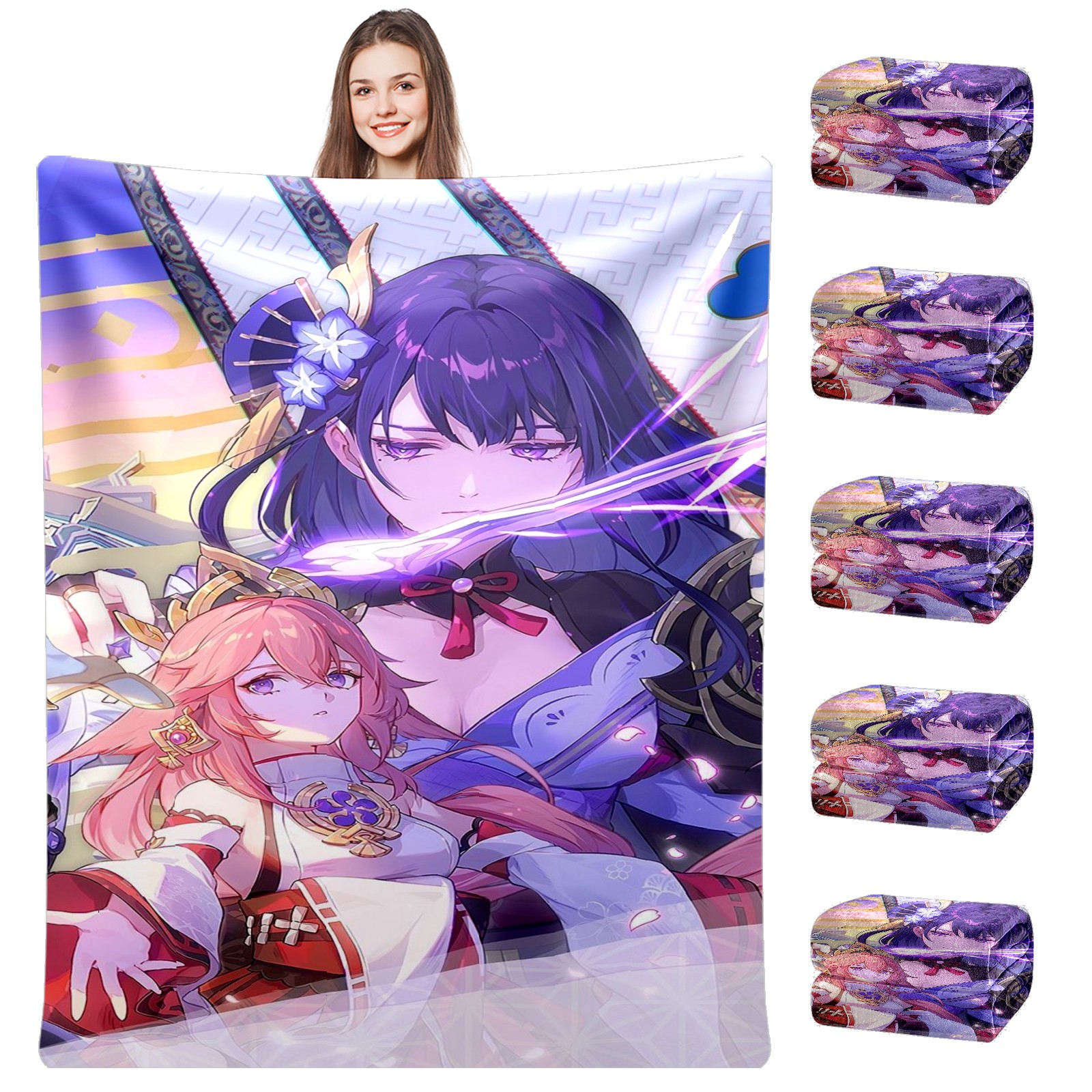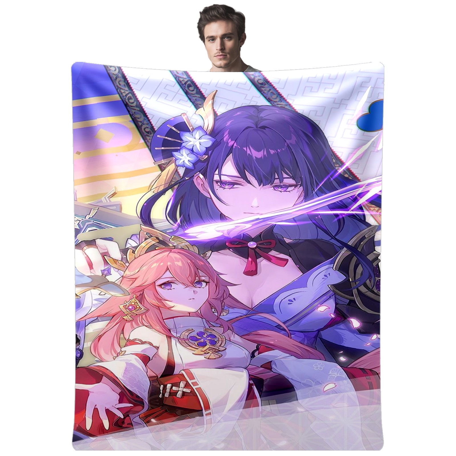Flannel Blanket, Ultra-Soft Comfortable Home Decor Rug, The Perfect Comfort Gift for Both Men Women, Suitable for Beds, Sofas, Loungewear, and Travel 30x39in(原神 雷電将軍 034)