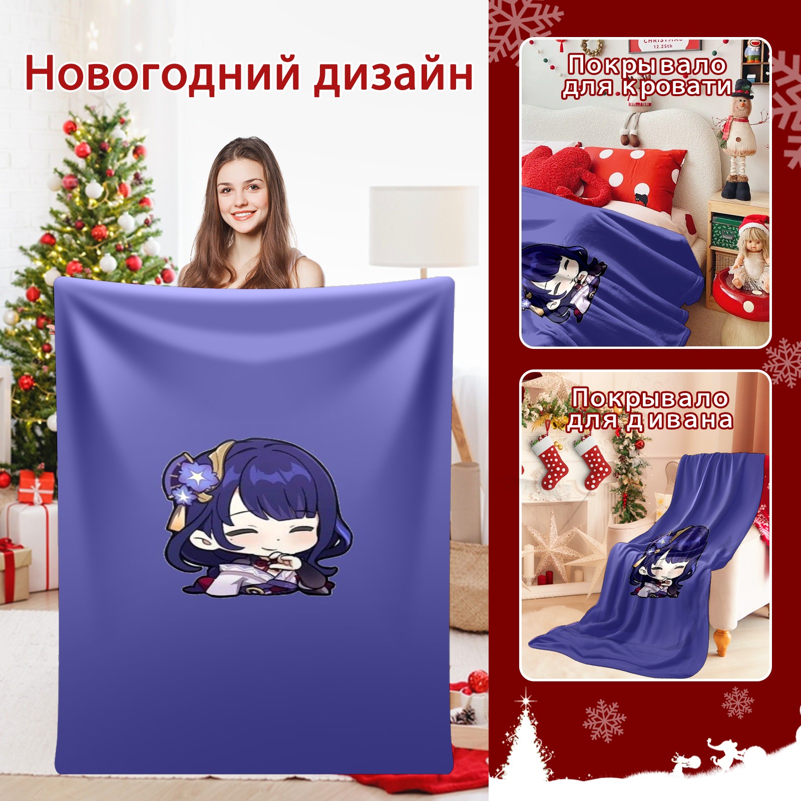 Flannel Blanket, Ultra-Soft Comfortable Home Decor Rug, The Perfect Comfort Gift for Both Men Women, Suitable for Beds, Sofas, Loungewear, and Travel 30x39in(原神 雷電将軍 046)