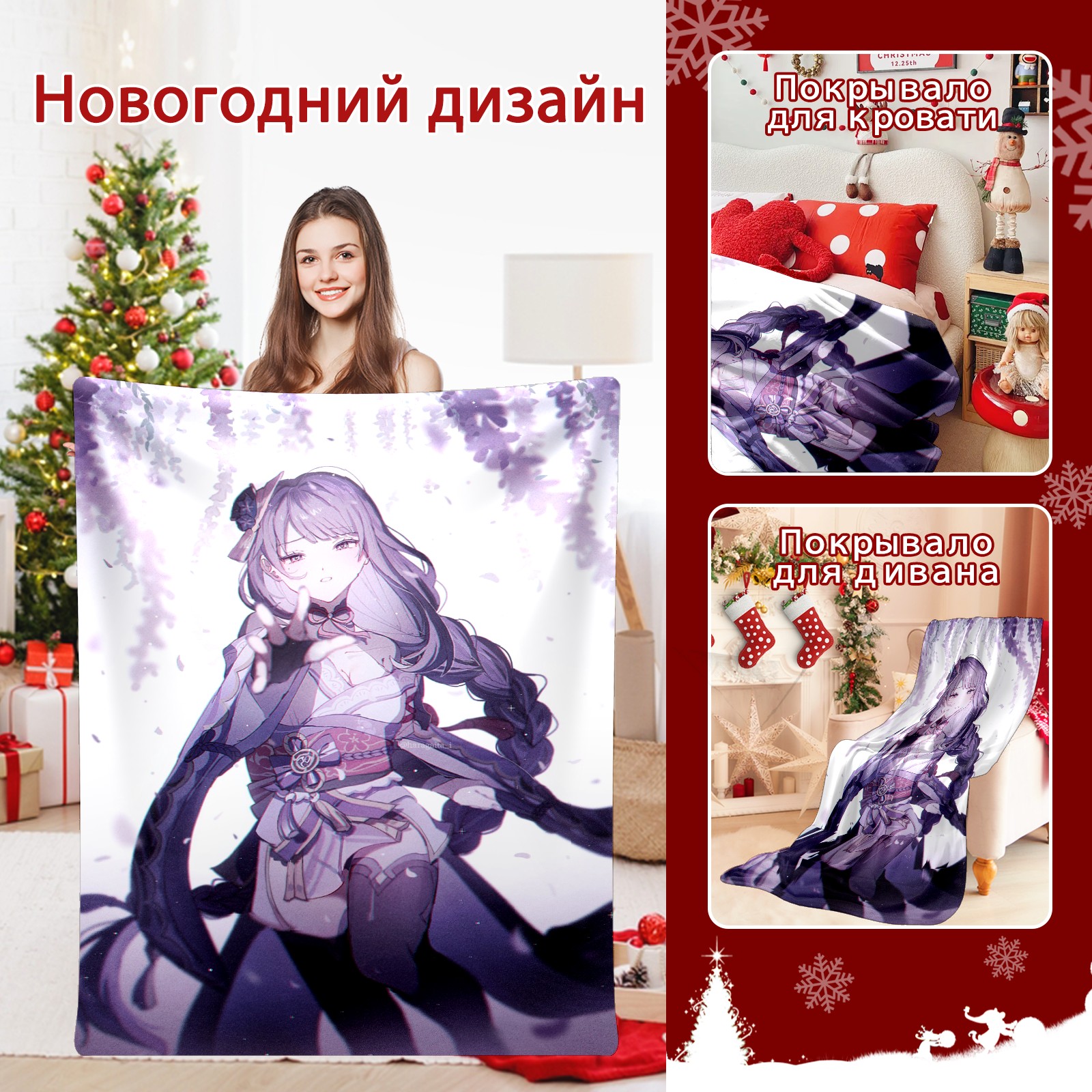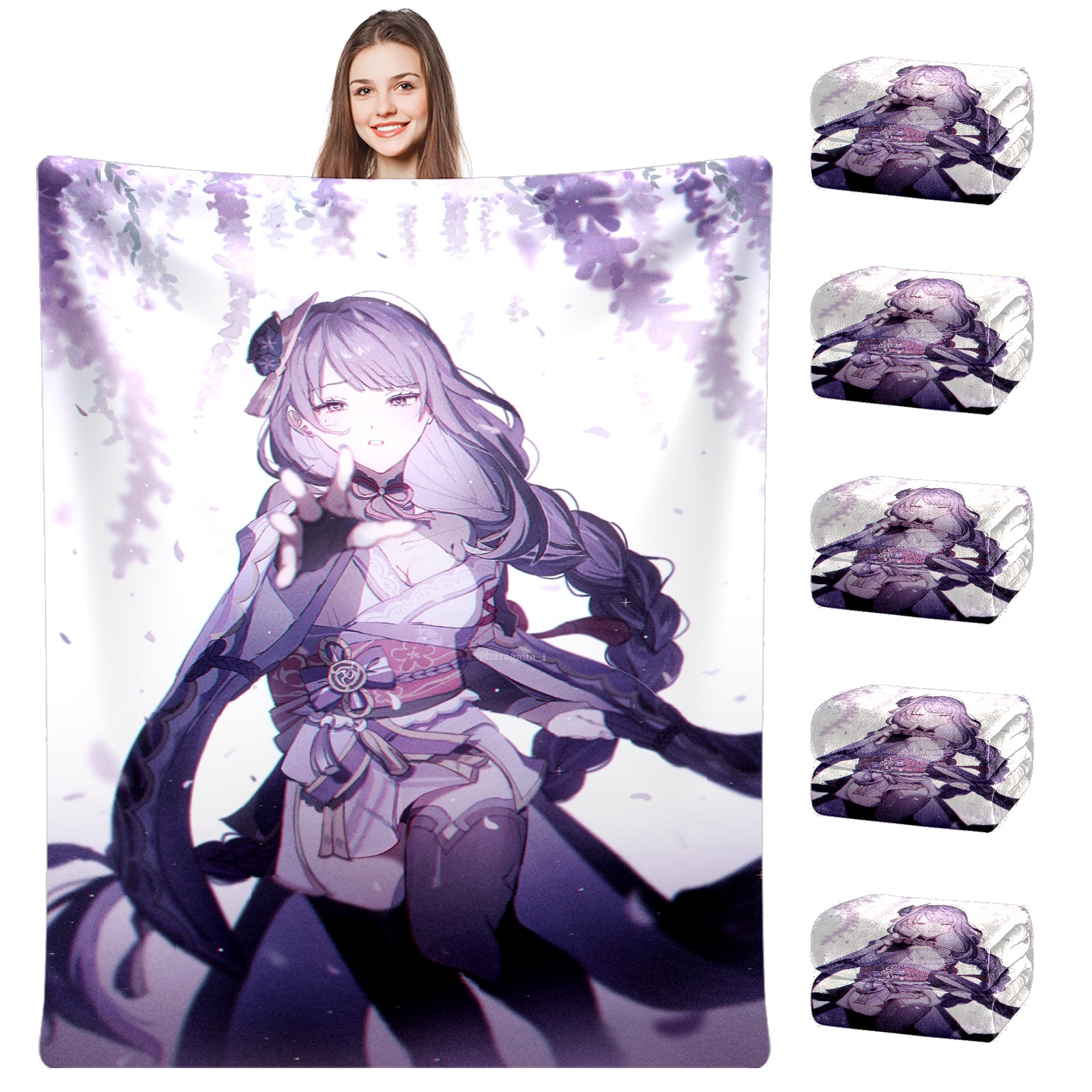 Flannel Blanket, Ultra-Soft Comfortable Home Decor Rug, The Perfect Comfort Gift for Both Men Women, Suitable for Beds, Sofas, Loungewear, and Travel 30x39in(原神 雷電将軍 051)